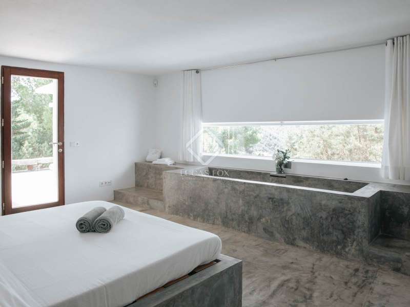 Situated on Ibiza's northwest coast, the villa emerges organically from its rugged environment, showcasing a design that celebrates both structure and nature. The villa’s minimalist architecture combines clean lines, geometric forms, and expansive floor-to-ceiling windows, dissolving the boundaries between indoors and out. The highlight is the villa's unparalleled outdoor space. A sprawling terrace, seamlessly extending from the interiors, offers panoramic sea views. Private corners invite relaxation, while the infinity pool blurs the line between ocean and sky. Inside, every detail reflects meticulous craftsmanship. The interiors are a sophisticated homage to the natural surroundings, featuring concrete-finish floors, rich wooden accents, and crisp whitewashed walls. The sky-lit reception room is a space to gather and inspire, while the dining area, with its floor-to-ceiling windows framing ocean vistas, creates the perfect backdrop for unforgettable evenings. Step onto the adjacent sun-drenched terrace for alfresco dining under the Mediterranean sun. The villa’s seven bedroom suites are serene sanctuaries, designed with neutral shades and natural materials. Prioritizing the beauty of the outdoors, the spaces are intentionally minimalist, drawing focus to the captivating views of the surrounding landscape. Please contact us for further details.