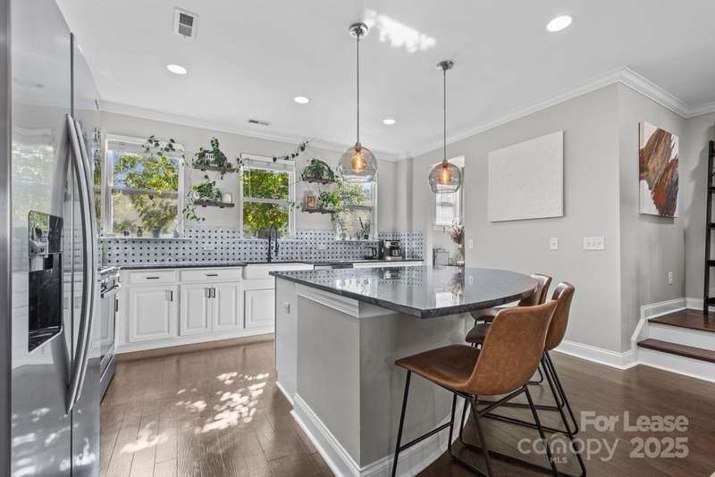 Welcome to Brightwalk! This beautifully crafted 3-story townhome offers 4 bedrooms, 3.5 bathrooms, and 2-car garage (large enough to accommodate a 4-door truck!) with neutral paint and ample storage. Thoughtful details include 9-ft tall ceilings, upgraded moldings & abundant natural light. The kitchen features white cabinetry, granite countertops, 5-burner gas range & spacious island with seating ? don't miss the beautiful built-in bar! The 3rd floor primary includes a customized walk-in closet & ensuite bath with double vanity, large glass-enclosed shower, & sleek finishes. With a 1st floor suite & 2 additional bedrooms and hall bath on the 3rd floor ? there is flexibility for a home office, gym, guest space & more. And enjoy a main floor porch, perfect for entertaining, taking in those gorgeous sunsets, and even some views of Uptown!Conveniently located close to Camp North End for food, drink or pickleball or just a couple block from the local park within the neighborhood or 2 miles to Optimist Hall, Uptown, NoDa or the light rail! Amazing local spots are right outside your door. -- Available starting December 1, 2025.
