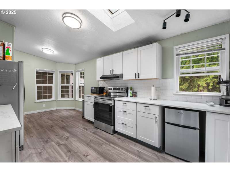 Nestled at the end of a quiet cul-de-sac in the desirable Country Village Estates community, this beautifully maintained 3-bedroom, 2-bathroom double-wide manufactured home offers the perfect blend of privacy, comfort, and convenience. Backing up to serene green space, you'll enjoy peaceful surroundings and no rear neighbors ideal for those seeking a quiet retreat. Step inside to an open-concept layout that seamlessly connects the spacious living room to a freshly updated kitchen, complete with modern finishes and all-new flooring throughout. The heart of the home is warm, inviting, and perfect for entertaining. The large primary suite is thoughtfully situated for privacy and includes a big walk in closet. On the opposite side of the home, you’ll find 2 roomy guest bedrooms and a full bathroom ideal for family, visitors, or a home office setup. Outside, enjoy the oversized backyard with plenty of room to garden, relax, or play. A massive storage shed offers ample room for tools, hobbies, or seasonal décor, while the covered carport provides convenient parking. And with a heat pump, you’ll stay comfortable year-round. Don’t miss this rare opportunity to own this home in a peaceful, park-like setting just minutes from all that Oregon City has to offer! Space rent is $845/month.