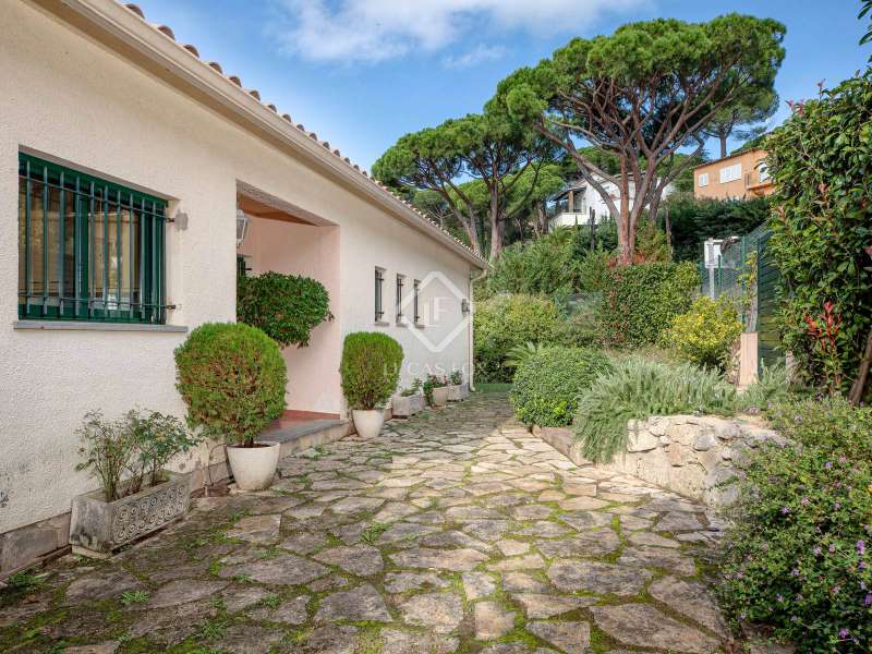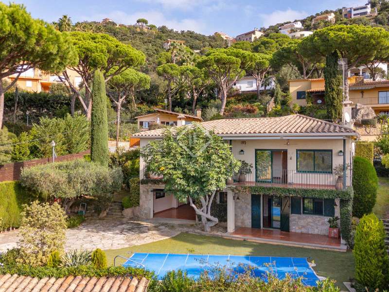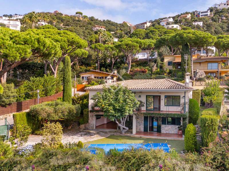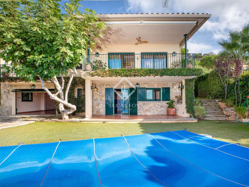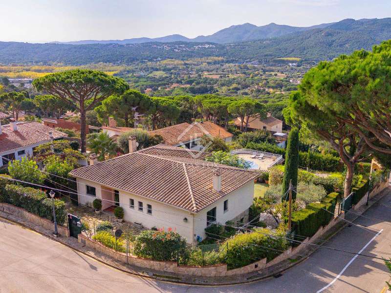 Lucas Fox presents this elegant villa with beautiful mountain views, a lovely garden , and a private pool, for sale in the quiet residential area of Les Teules, Santa Cristina d'Aro, very close to several beautiful beaches and the lively town of Platja d'Aro. This beautiful villa has a built area of 283 m² on a sunny 651 m² corner plot with beautiful unobstructed mountain views. The villa is spread over two comfortable floors with a total of four double bedrooms and three bathrooms. On the main floor , we find a entrance hall that leads to a spacious and bright living-dining room with a fireplace and access to a beautiful terrace with views. The separate kitchen is to the left of the entrance. This same floor offers three spacious bedrooms with built-in wardrobes and two complete bathrooms. The main bedroom has its own full bathroom with a bathtub and access to the private terrace. The other two bedrooms share a full bathroom with a shower. Going down a beautiful staircase, on the lower floor , we find a large bedroom with access to the porch and the garden with a pool, as well as a full bathroom , laundry area, wine cellar and a large garage. Thanks to its perfect orientation, the villa enjoys sun throughout the day, and the exterior area offers a beautiful mature garden and a large swimming pool. Contact us for more information and visits.