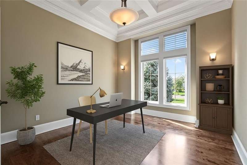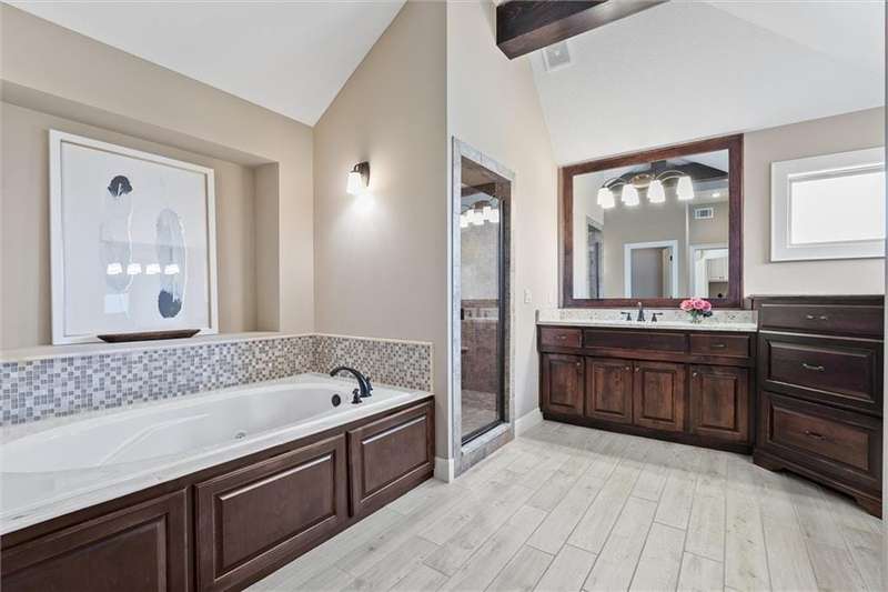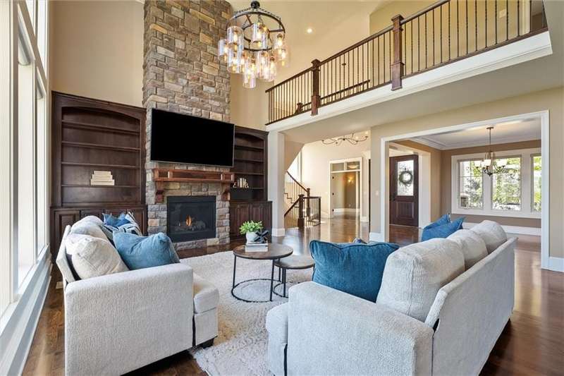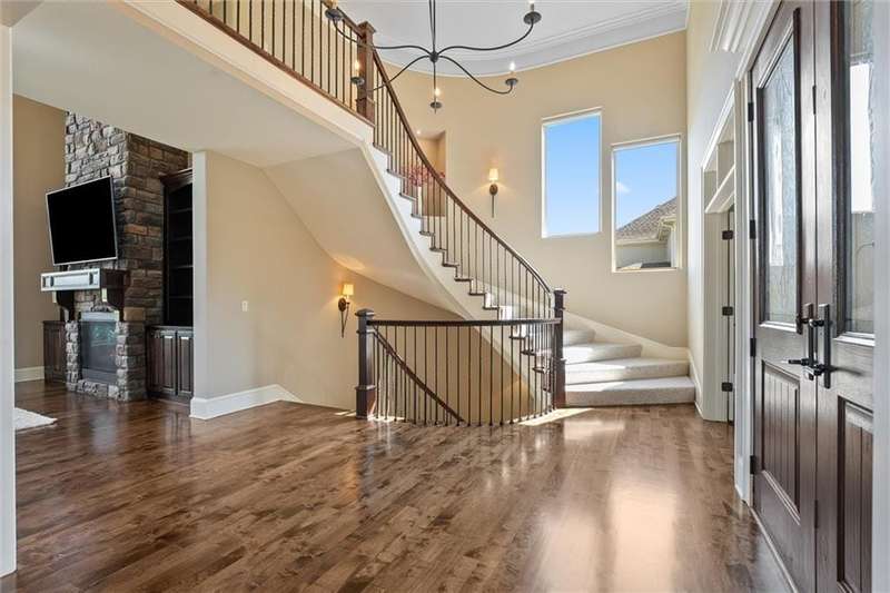 This stunning Chesapeake II in Summerwood Estates is perfectly situated on a quiet cul-de-sac lot with a private, fenced backyard. The grand entry welcomes you with a curved staircase featuring updated carpet and newly refinished, gleaming hardwood floors that flow throughout the main level, upstairs, and the primary suite. The open floor plan is ideal for both everyday living and entertaining, with a spacious great room, a chefs kitchen boasting an enormous island and a gigantic walk-through pantry, a cozy hearth room, sunlit eat-in space, elegant formal dining room, and a private office with French doors. Step outside to the covered deck with a fireplace, perfect for year-round enjoyment. The upstairs primary suite offers a spa-like bathroom, an expansive walk-in closet, and convenient access to the laundry room. Three additional bedrooms each feature en suite baths and walk-in closets. The walk-out basement is stubbed and ready to be finished to suit your needs, and the home includes a rare 4-stall tandem garage providing ample space for vehicles, storage, or hobbies. Summerwood Estates provides incredible neighborhood amenities including a pool, clubhouse, sport court, playground, and abundant greenspace, creating the perfect balance of luxury and community living.