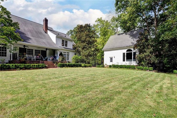 WOW! Set on 2.12 acres in sought-after Skimino Landing, this custom Wayne Harbin home feels like a timeless, private English cottage. Based on the expanded Southern Living “Crabapple Cottage†plan, it offers 5 bedrooms – 2 on the 1st floor -- 4 full baths & 2 half baths. A welcoming slate porch opens to a foyer flanked by an office w/ built-ins. Great rm features cathedral ceiling, wood-burning FP & 16-ft Anderson doors opening to a covered terrace w/ views of gardens & private treed lawn. Kitchen w/ upgraded appliances, center island, dining area & large pantry flows to keeping room w/ FP, wet bar, screened porch & deck. Upstairs are 3 BRs, loft area, walk-in attic & bonus room. Fine details include Brazilian cherry floors, oak hardwoods upstairs, conditioned crawlspace & spacious mudroom/utility area. In addition to the 2-car attached garage, the detached 2-car has been converted to a pool/spa room & workshop. Exceptional outdoor living w/ terraced patios, gardens & serene privacy!