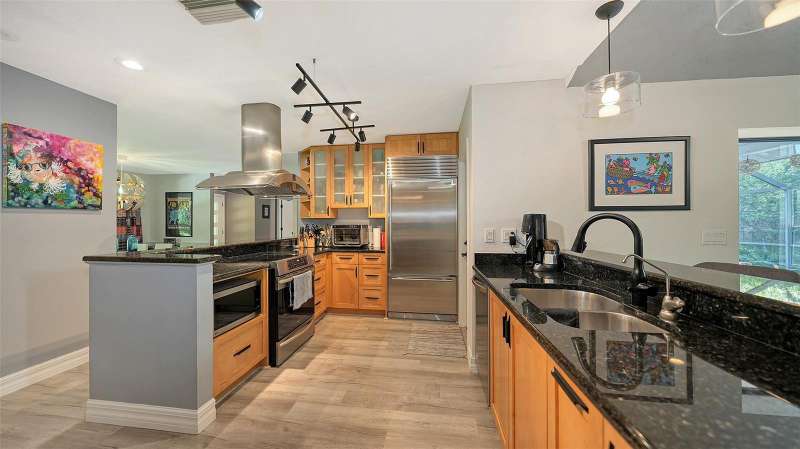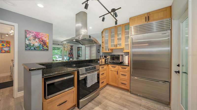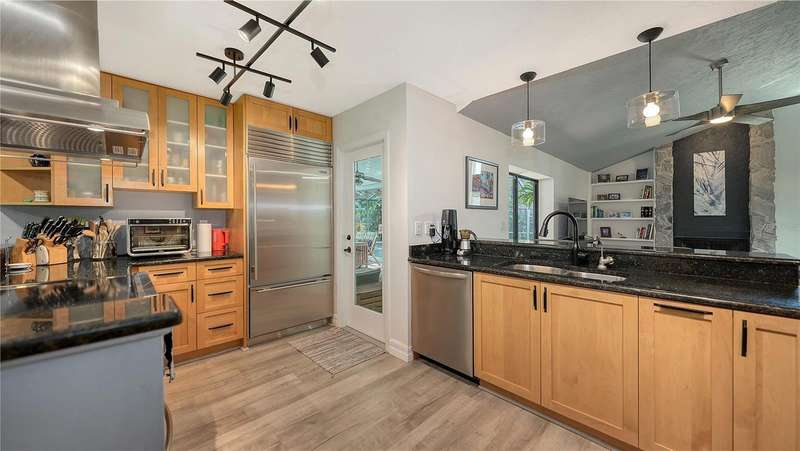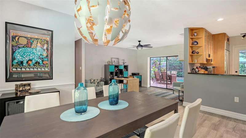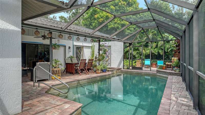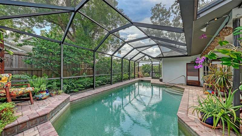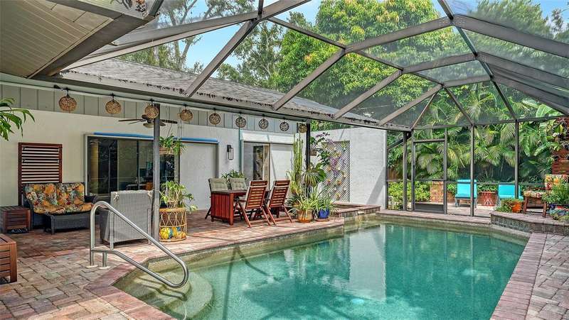 Welcome to this beautifully updated 3-bedroom, 2-bath home tucked away on a quiet canopy cul-de-sac, offering privacy while still being centrally located near all that Sarasota has to offer, including world-renowned Siesta Key Beach. Thoughtfully renovated inside and out, this home blends comfort, style, and peace of mind with an impressive list of upgrades. A lushly landscaped entry leads into a bright, open living space filled with natural light from new PGT impact hurricane windows installed in 2019. At the heart of the home is the renovated kitchen, featuring a Sub-Zero refrigerator/freezer, an induction cooktop with convection and air-fry oven, dishwasher, generous cabinetry, upgraded finishes, and a cozy built-in banquette perfect for casual in-kitchen dining. The split plan offers a spacious primary suite retreat, while two additional bedrooms provide flexibility for guests, family, or a home office. Both bathrooms were completely remodeled in 2019 with new tile, fixtures, lighting, cabinets, glass doors, and modern finishes. In 2022, the main living areas received Coretec ProPlus luxury vinyl plank flooring with new wood baseboards, creating a sleek and cohesive look throughout the home. Step outside to your own tropical oasis with a screened lanai, a sparkling pool, and spa with a Pebblecrete surface, and a Hayward pool heater with remote automation installed in 2020. The backyard is framed by a new wood privacy fence with dual gates, enhanced by a professionally designed and installed automated landscape lighting system that highlights the lush gardens both day and night. The exterior has been further strengthened with hurricane-rated exterior doors added in 2021 and a new hurricane-rated garage door with belt-driven opener and digital keypad in 2023. This home has been consistently maintained and upgraded for both beauty and function. A new roof was installed in 2016, while the HVAC system was replaced in 2014 and has been under a biannual service contract since 2019. A Rheem hybrid electric water heater with WiFi capability was added in 2023, and the property also includes a Culligan water softener and osmosis drinking water system installed in 2020. Additional features include washer and dryer purchased in 2018, a four-zone WiFi-enabled irrigation system, and termite stations with continuous treatment under contract since 2018. With a spacious two-car garage for vehicles, storage, or hobbies, and a backyard oasis designed for relaxation and entertaining, this home offers comfort inside and out. Violet Avenue itself is a quiet, well-established street with only a handful of single-family homes with canopy trees adding to the curb appeal. The location is unmatched—close to top-rated schools, shopping, dining, and parks, while Downtown Sarasota, University Town Center, St. Armands Circle, and the Gulf beaches of Siesta and Lido Key are only minutes away. This home delivers the perfect blend of lifestyle, thoughtful upgrades, and convenience in one of Sarasota’s most desirable settings. Schedule your private showing today.