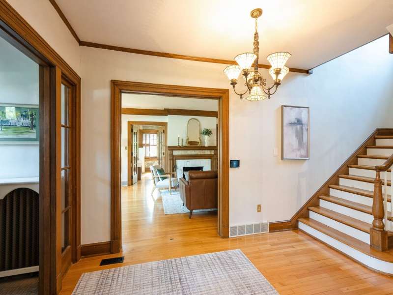 Welcome to this beautifully updated and well maintained colonial home in the highly desired South of Grand neighborhood. Entering the home you will be welcomed by the charm and character we all love to see, with modern updates throughout! The updated kitchen features new quartz and marble countertops, a built-in wet bar, and custom built in seating perfect for dinner parties! The kitchen opens to a huge family room with 12-foot ceilings that walks out to a cedar-covered patio. A formal living room showcases a wood burning fireplace, built-in bookcase, and attached library. Upstairs features 5 bedrooms, an ensuite primary bedroom with heated tile bathroom floor, double-sink vanity, and walk-in closet. Large, sunny rec room over the garage and a bright third floor that would make an awesome guest space or home office. There are no shortage of updates in this home. From bathrooms, windows, flooring, and paint, to fencing, landscaping and so much more! Storage? We all need more of that and this homes storage options are endless! Schedule your showing today! MOTIVATED SELLLER!