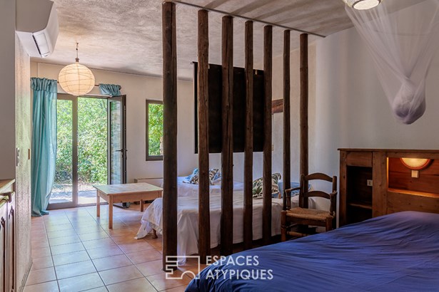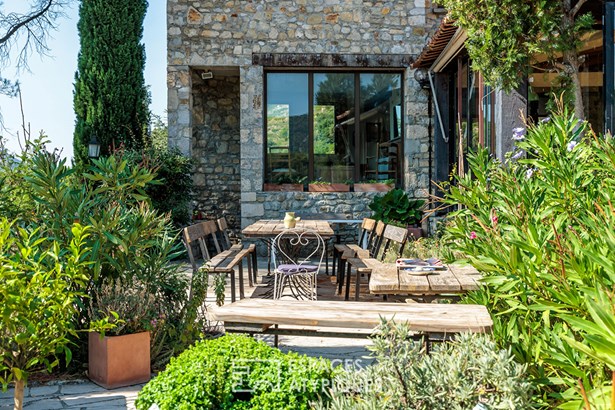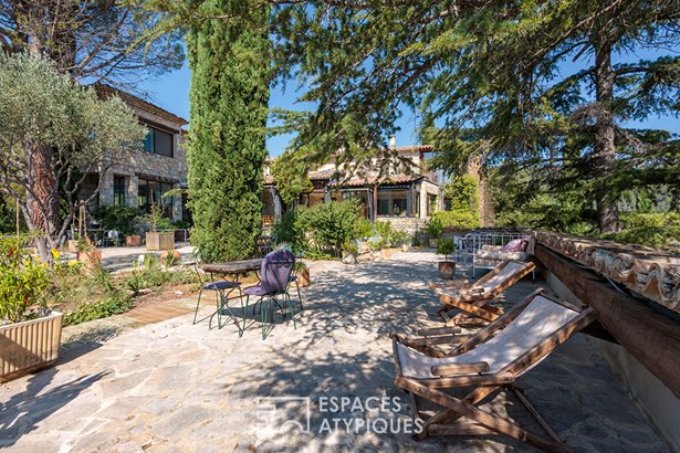 When it comes to relaxation, everything has been designed to combine modern comfort and quality of life: an indoor swimming pool, a gym, a sauna, as well as wooded and landscaped outdoor areas and a vegetable garden, all of which invite serenity. The garden, designed to respect the natural terrain, blends harmoniously with the stone buildings and the surrounding landscape.