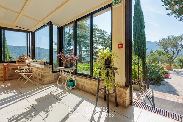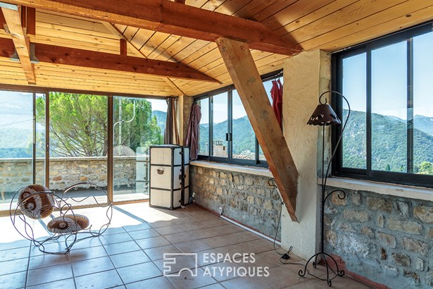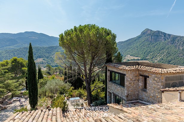 Proudly overlooking the valley, this exceptional building with a living area of over 924 m2 (nearly 1,200 m2 in total) is part of local history: it was built on the ruins of the former Chateau d'Aubres, dating from 1295. A unique setting where old stones blend with the serenity of a breathtaking panorama.