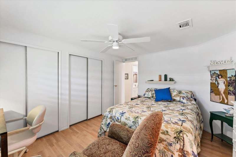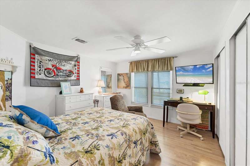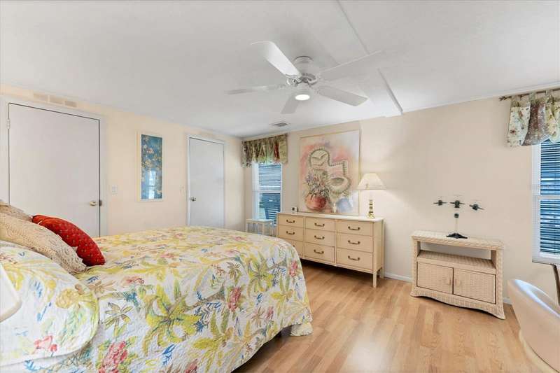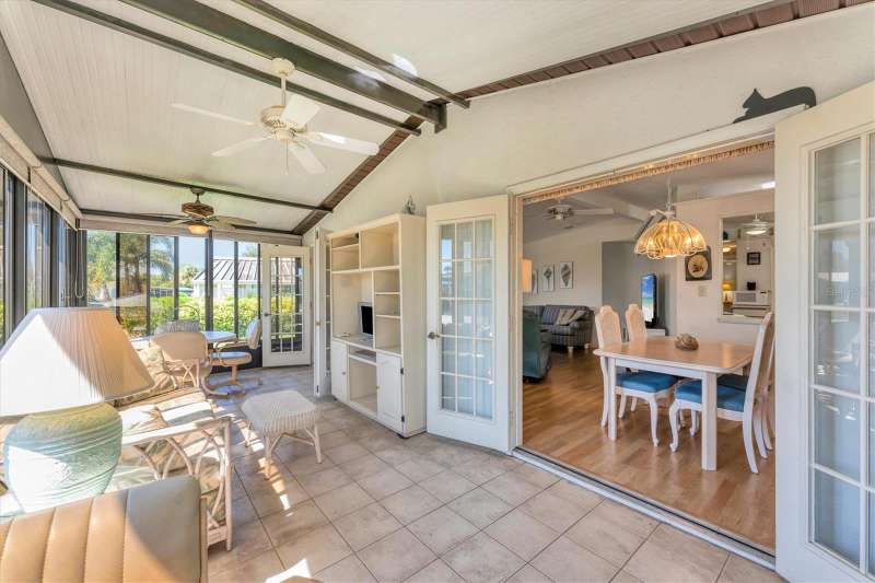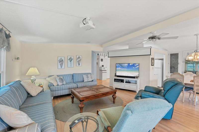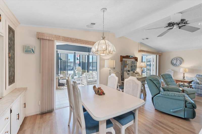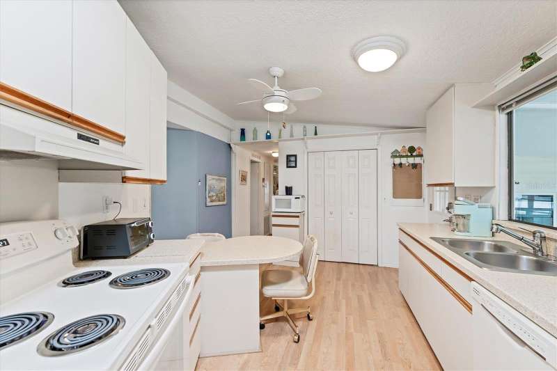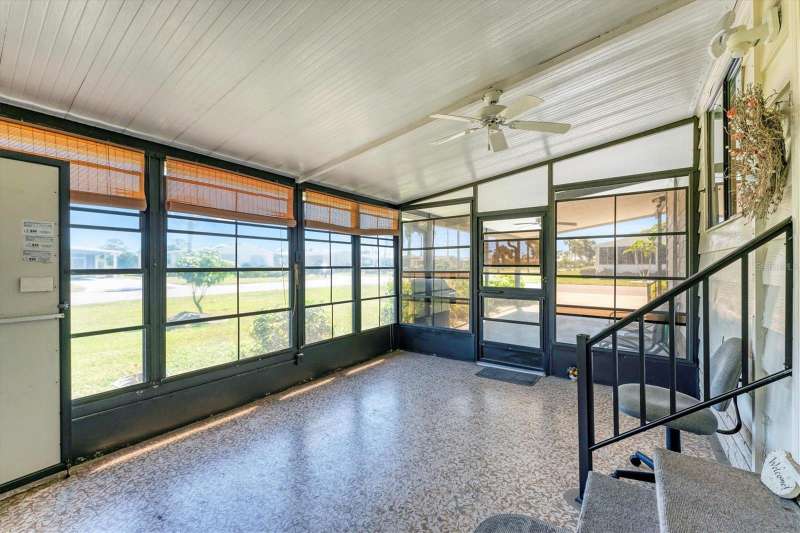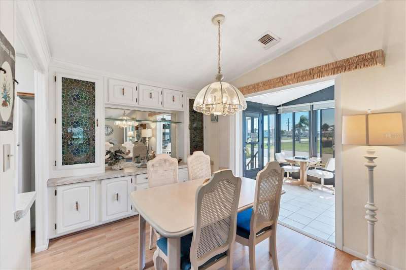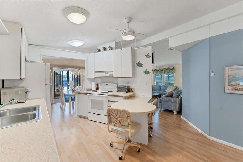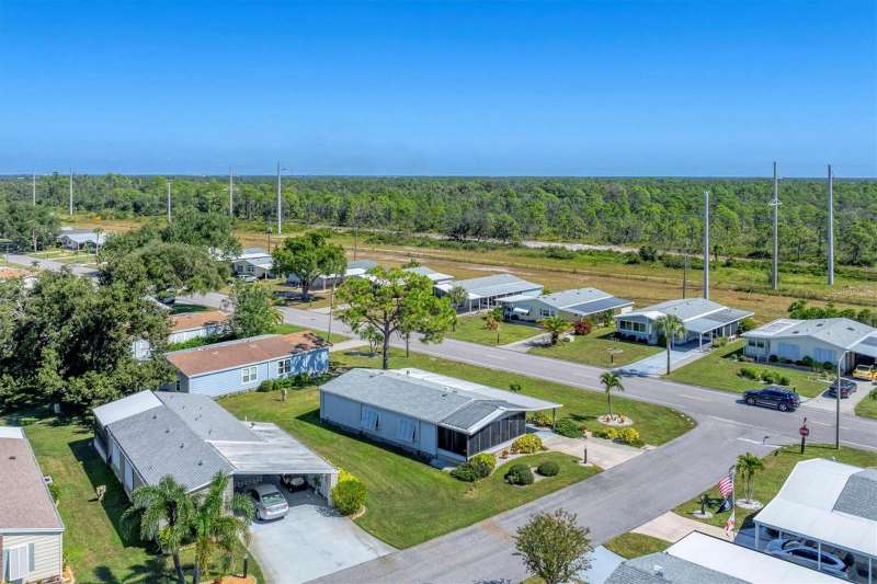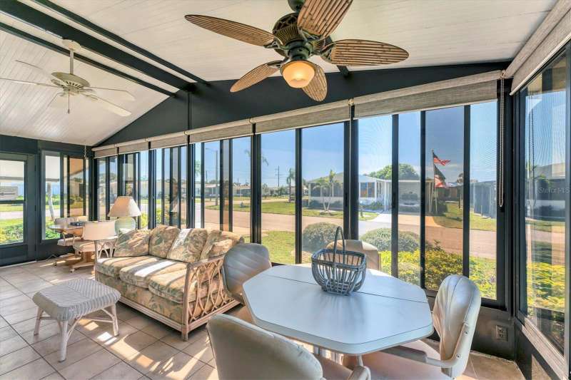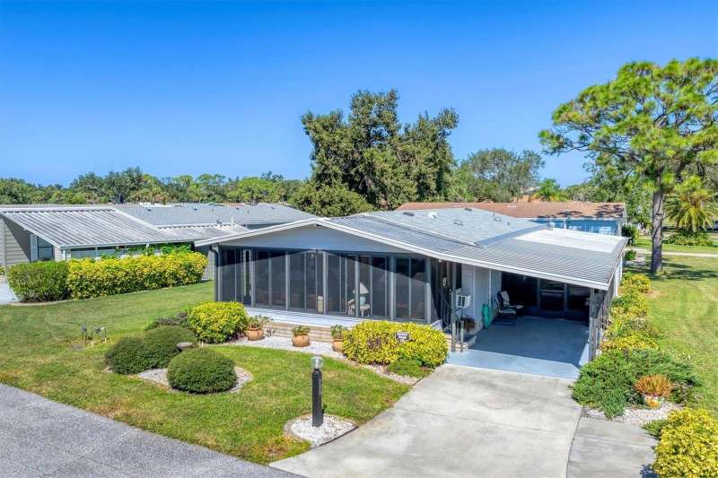 CHARMING TURN-KEY HOME with TROPICAL BREEZES & PALM TREES! Escape the cold & embrace the Florida sunshine you so deserve! This beautifully maintained home has been in the family since 1991 and is fully furnished, and ready for you to move right in. As you arrive, you'll notice the large 12x24 carport, expanded driveway (19x23) which provides ample parking on this oversized corner lot. There's a large (12x26) shed for extra storage. Inside, an open floor plan offers plenty of room for entertaining friends & family, tastefully updated over the years for modern comfort. FEATURES & UPGRADES: FULLY UPDATED KITCHEN - New stove, dishwasher, cabinets & Corian countertops. Upgraded windows, all replaced with single-family home windows (not standard manufactured home windows). STYLISH BATHROOMS: undated counters and an oversized shower in the primary suite. ROOF: New in 2023, oversized hidden gutters, and back flow system in 2024. SPRINKLERS: underground with its own well. FLOORING: Beautifully upgraded laminate wood flooring throughout home. WASHER & DRYER, NEW ENTERTAINMENT READY: Movie projector with wiring included. SPACIOUS LANAI AREAS: Front lanai has special windows with custom shades; side lanai - vinyl replaced windows in 2024, ceiling fans in every room for extra comfort. ELEGANT DINING ROOM MIRROR - high end designed for balanced lighting. This home sits on an oversized lot that you own. Tangerine Woods is an active and friendly neighborhood. You won't feel cramped by your neighbors in this complex. Enjoy incredible amenities such as Olympic sized, heated pool and spa, tennis courts, pickle ball, shuffleboard, walking trails & fitness room. Located just minutes from the shops & restaurants of historic Dearborn Street, world class fishing and many golf courses, this home offers an ideal Florida lifestyle. Schedule your showing today!