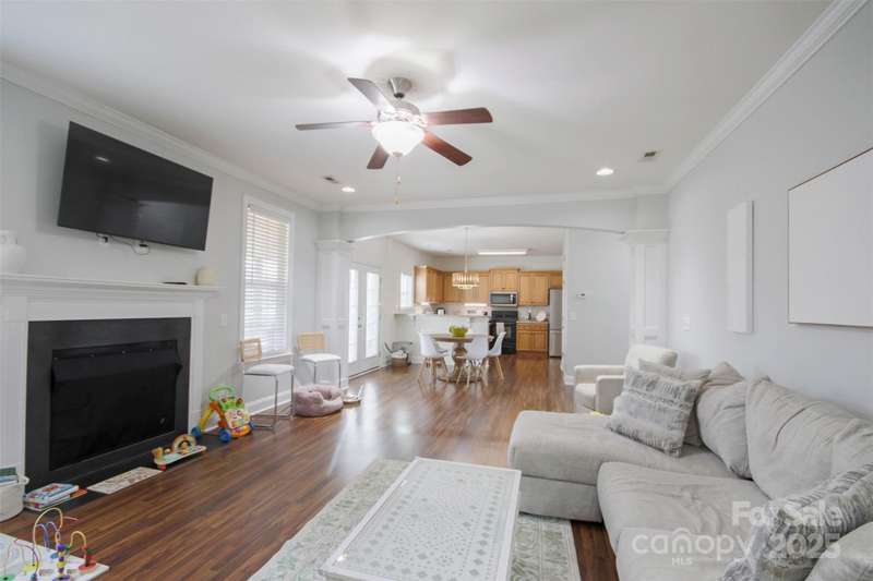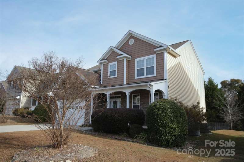 Extremely nice 3 bed, 2.5 bath home in a very good neighborhood. Upon arrival, you notice the welcoming covered front porch. Step inside to a foyer with large dining room to the right and an open floor plan with a big family room with fireplace, breakfast area, and a very nice kitchen with breakfast bar, upgraded cabinets with plenty of storage, pantry, and nice appliances. Brand new refrigerator and new stove to convey. Half bath has a new vanity. Upstairs are the bedrooms, nice loft with built-in bookshelves, and huge laundry room. Primary bedroom suite feature tray ceiling, dual vanities, custom shower, and large walk-in closet. Outside is a covered screened porch and a fenced back yard with neighborhood common space behind. Also has an irrigation system on a separate water meter. Home has been recently painted and whole house was re-plumbed in 2018. Home is in close proximity to neighborhood amenities with outdoor pool and playground. Very convenient location with easy access to I-77, dining, shopping, etc. A MUST SEE!