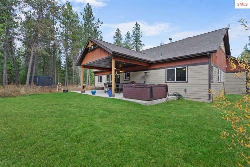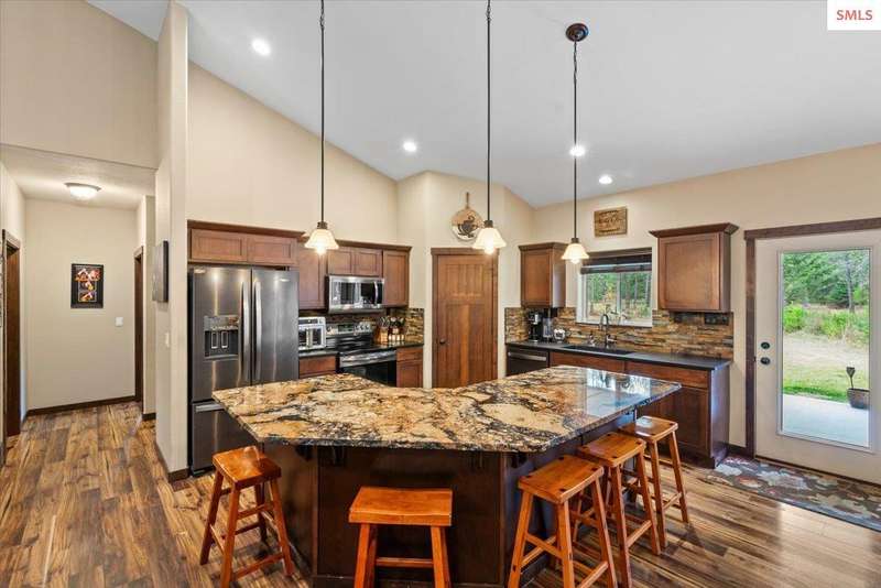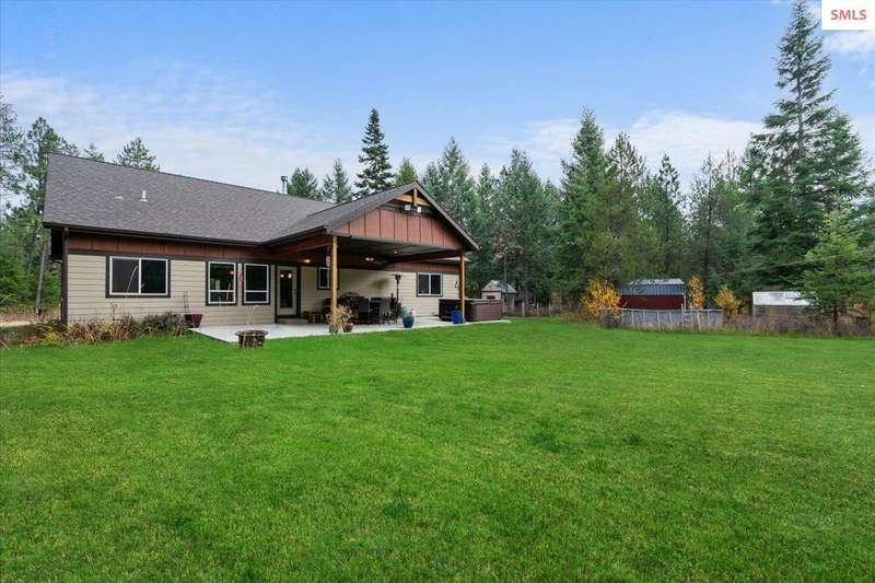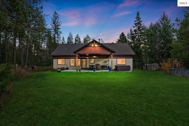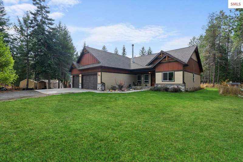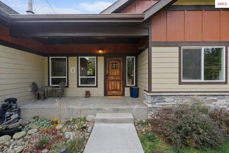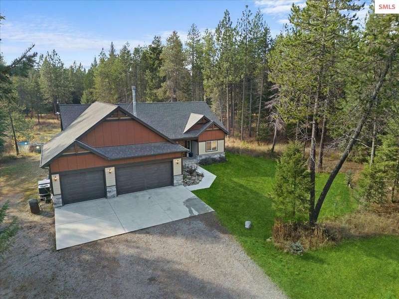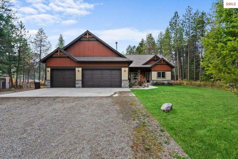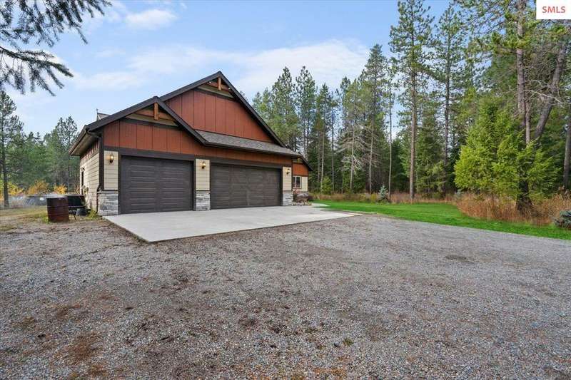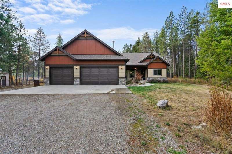 Nestled on 9.95 picturesque wooded acres in Rathdrum, this 2,702 sq. ft. custom built home offers 5 bedrooms, 3 bathrooms, a 3-car garage, and room for your dream shop. Designed for comfort and style, the home features vaulted ceilings, a wood fireplace with rock accents, open gourmet kitchen with solid granite countertops and a walk-in pantry, and a luxurious master suite with a walk-in closet, tiled shower, and jetted tub. Outside, enjoy a gun range, covered patio, firepit, garden, and chicken coup, all while surrounded by incredible wildlife. Located just minutes north of Hayden in the Lakeland School District, this property with its serene country living offers plenty of space to store your toys, entertain or relax all while enjoying the peace and privacy.