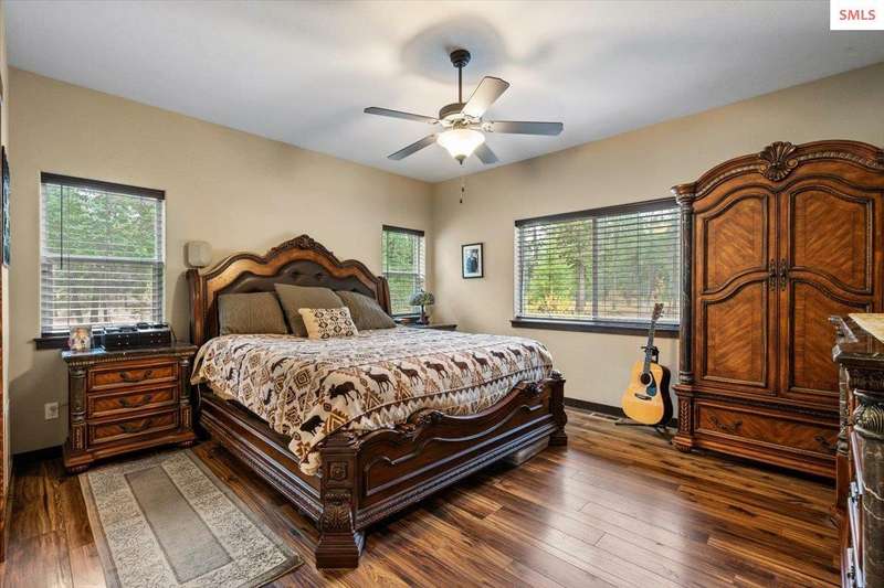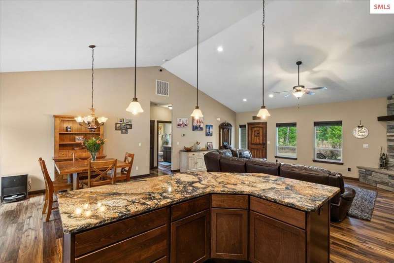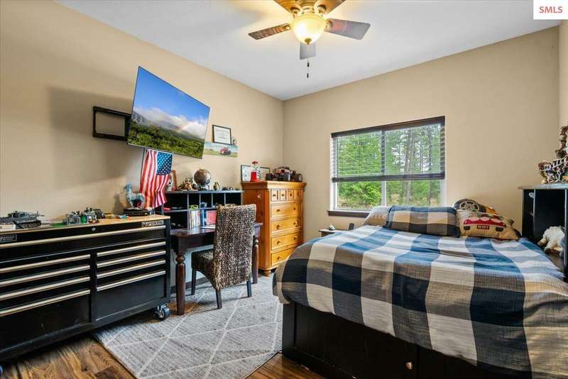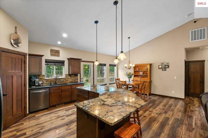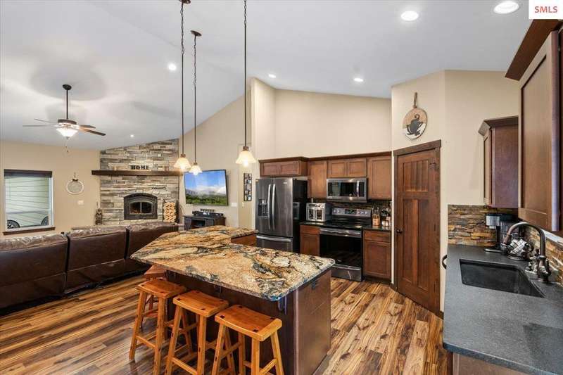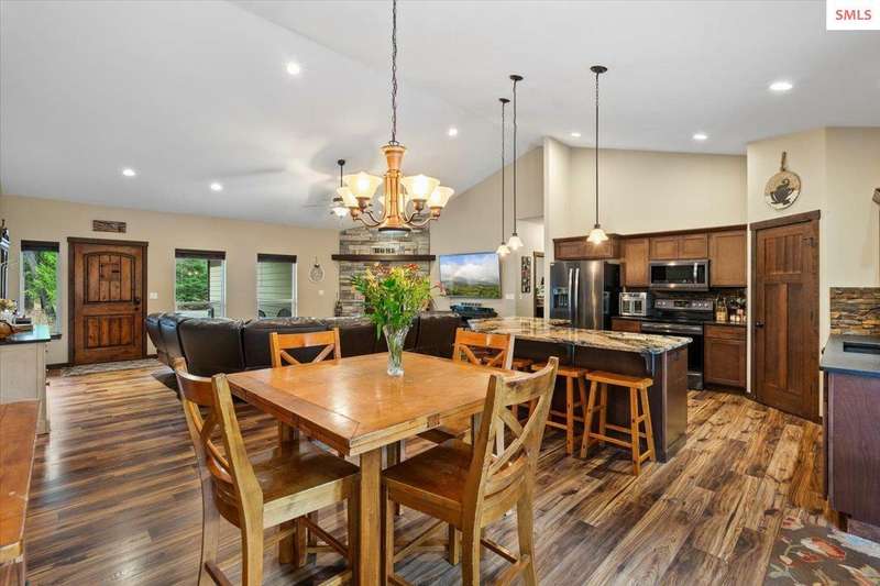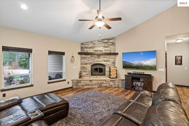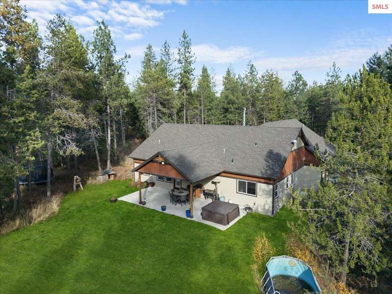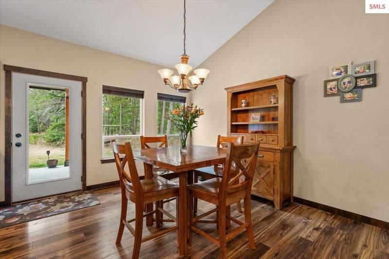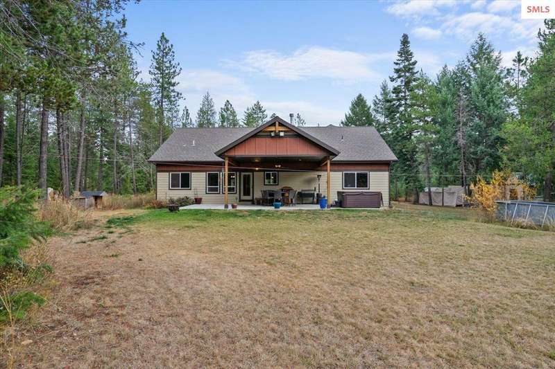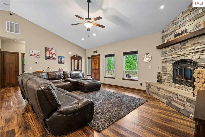 Nestled on 9.95 picturesque wooded acres in Rathdrum, this 2,702 sq. ft. custom built home offers 5 bedrooms, 3 bathrooms, a 3-car garage, and room for your dream shop. Designed for comfort and style, the home features vaulted ceilings, a wood fireplace with rock accents, open gourmet kitchen with solid granite countertops and a walk-in pantry, and a luxurious master suite with a walk-in closet, tiled shower, and jetted tub. Outside, enjoy a gun range, covered patio, firepit, garden, and chicken coup, all while surrounded by incredible wildlife. Located just minutes north of Hayden in the Lakeland School District, this property with its serene country living offers plenty of space to store your toys, entertain or relax all while enjoying the peace and privacy.