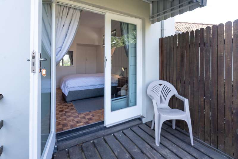 This expansive one-bedroom suite, featuring generous cupboard space and an additional area suitable for a seating setup or kitchenette, is ideally located on the ground floor with a deck that offers a view of the garden. It is available for rent within the two-story main building.