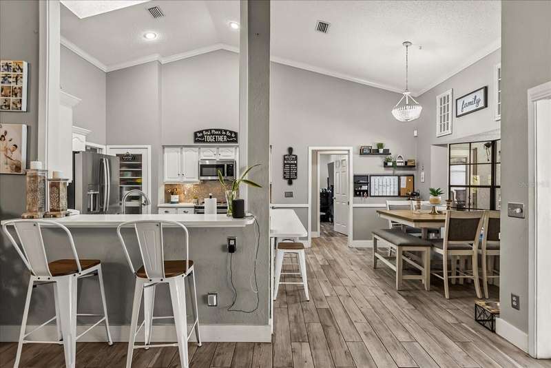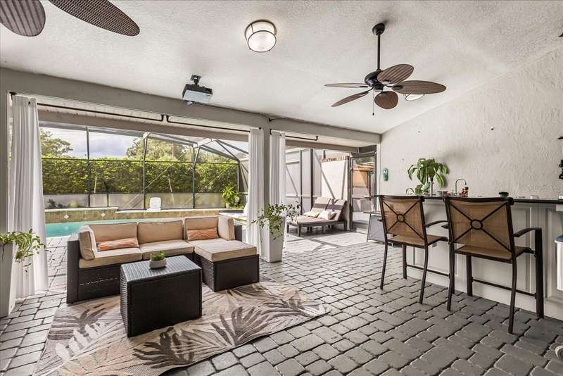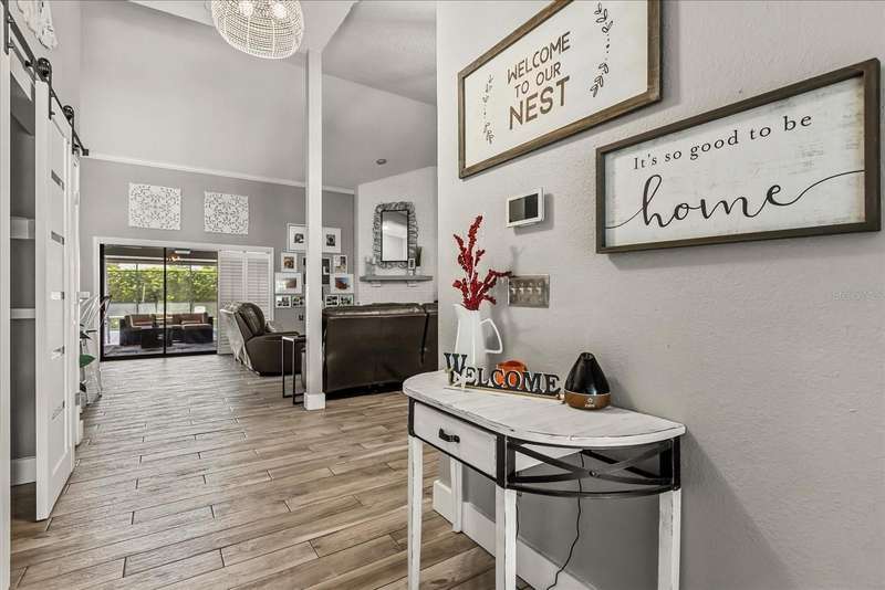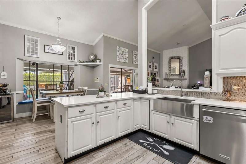 Discover this beautifully maintained 4-bedroom, 3-bath home in the sought-after Sabal Point community, offering a flexible floor plan designed to fit your lifestyle. The heart of the home flows seamlessly between the spacious great room, formal dining, and a versatile flex room—perfect for a private office, home gym, study, or nursery. The impressive primary suite is a true retreat, featuring a large custom walk-in closet and a fully updated spa-inspired bathroom with a sleek, oversized shower. Secondary bedrooms are generously sized, providing comfort and privacy for family or guests. Outdoors, enjoy a screened-in private pool, covered patio, and lush landscaping—ideal for both quiet relaxation and entertaining. All set on a peaceful cul-de-sac lot with convenient access to top-rated schools, shopping, and major roadways. This home combines elegance, function, and flexibility in one perfect package.