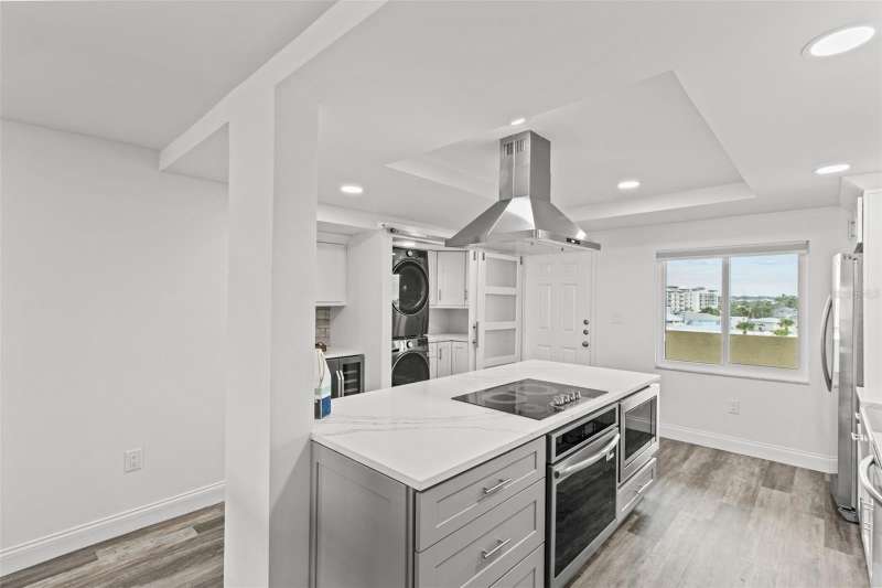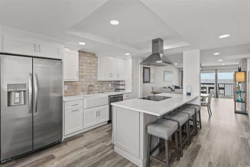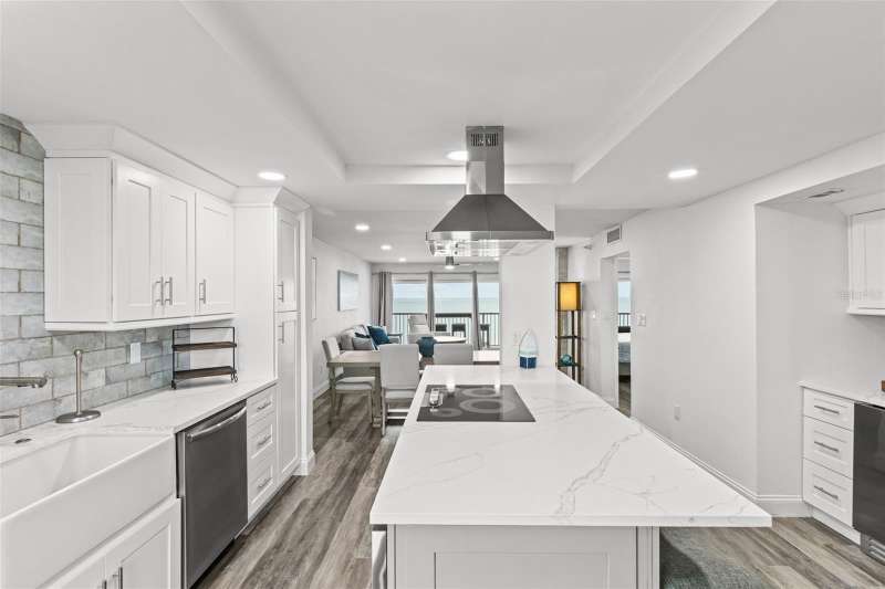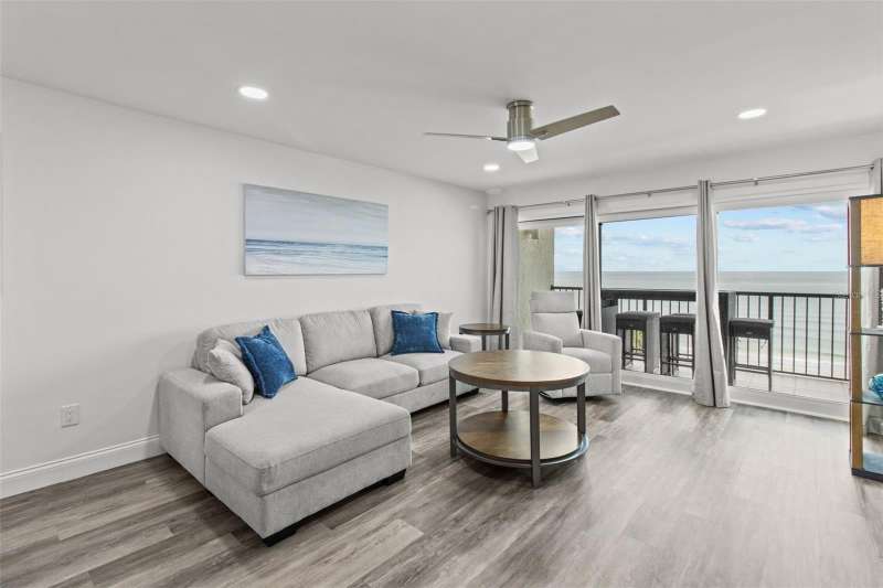 Architectural Digest on the Gulf Welcome to a residence where design and coastal beauty meet in perfect harmony. This exquisite 2-bedroom, 2-bath condo has been elevated to a standard worthy of Architectural Digest, with every detail thoughtfully curated and every finish chosen for both sophistication and comfort. At the heart of the home, the gourmet kitchen impresses with a striking island, custom cabinetry, wine bar, and professional-grade stainless steel appliances. Wide-open living and dining spaces are framed by brand-new hurricane-rated windows and sliding doors, showcasing breathtaking, unobstructed views of the Gulf of Mexico. The primary suite is a sanctuary of style, with serene water views and a spa-inspired en suite bath. Guests will feel equally indulged in the second bedroom, paired with its own elegantly updated bath. A discreet laundry closet with full-size washer and dryer enhances convenience without compromising the sleek design. Step onto your private balcony and let the romance of coastal living surround you—sunsets that set the horizon ablaze, dolphins and manatees playing in the surf, and the soothing rhythm of waves that feels like your own personal soundtrack. Beyond beauty, this condo also offers remarkable value. With a two-week rental policy, it presents excellent investment potential as both a luxurious personal retreat and an income-generating opportunity. Ocean Sands pampers residents with resort-style amenities: a beachfront heated pool and spa, shuffleboard courts, tiki hut, BBQ area, and direct access to one of Florida’s most beloved stretches of sand. Reserved under-building parking ensures peace of mind and convenience. More than a home, this is an experience—where luxury design, smart investment, and the magic of the Gulf Coast all come together.