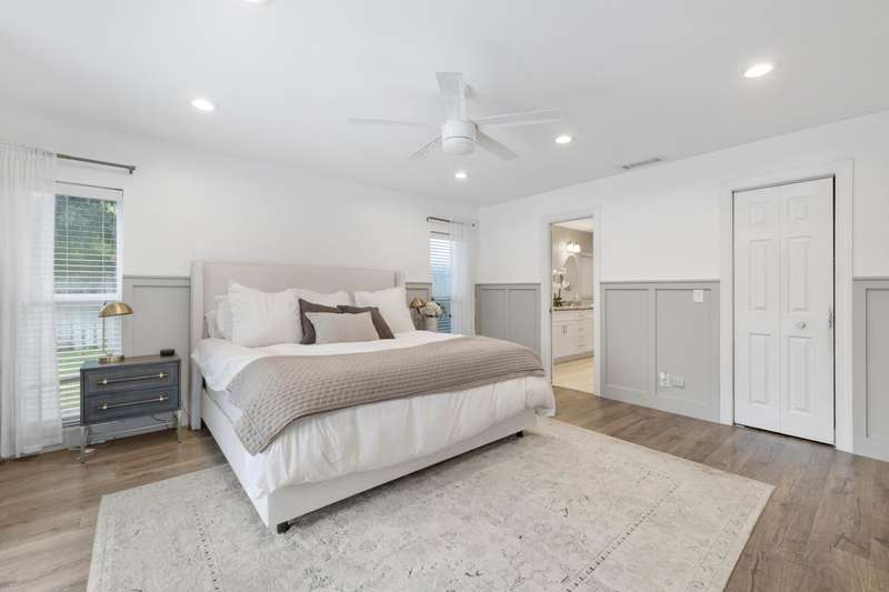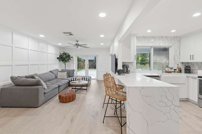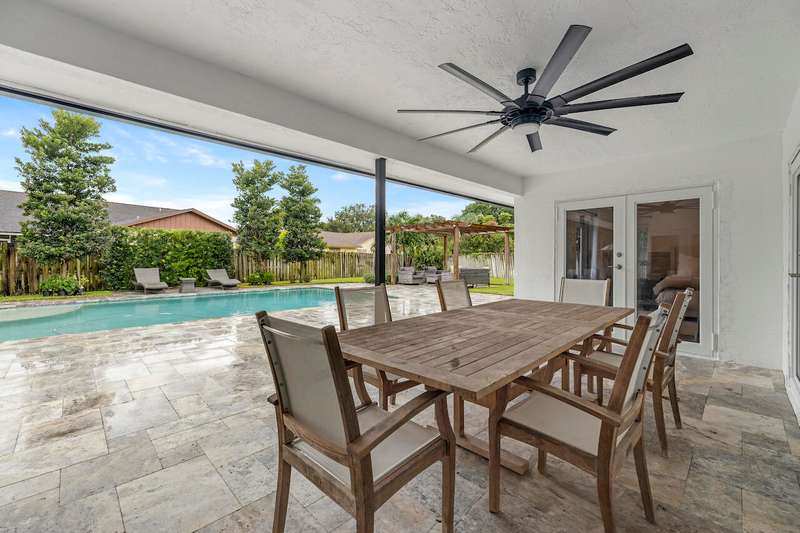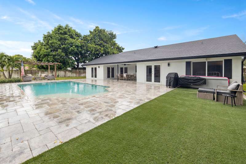 Beautifully updated 4 bedroom home with spacious, fenced yard and heated pool. Tastefully decorated, this split bedroom home is perfect for guests. Kitchen boost all stainless appliances, gorgeous marble countertops, upgraded cabinets and fine fixtures. It has a breakfast counter and is open to the family room. Designer furniture and furnishings at every turn. Cozy fireplace insert in the living room with vaulted ceilings which opens to the formal dining room. Wood look vinyl flooring throughout the home..perfect for pets. Spacious Master bedroom has impact french doors to the pool/patio/backyard, gorgeous remodeled bathroom and large walk in closet with organizer. Great outdoor patio/heated pool/gazebo space.-great for entertaining..
