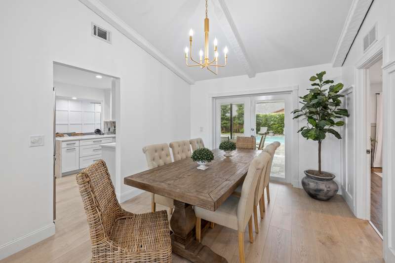 Seasonal Rental: Beautifully updated 4 bedroom home with spacious, fenced yard and heated pool. Tastefully decorated, this split bedroom home is perfect for guests. Kitchen boost all stainless appliances, gorgeous marble countertops, upgraded cabinets and fine fixtures. It has a breakfast counter and is open to the family room. Designer furniture and furnishings at every turn. Cozy fireplace insert in the living room with vaulted ceilings which opens to the formal dining room. Wood look vinyl flooring throughout the home..perfect for pets. Spacious Master bedroom has impact french doors to the pool/patio/backyard, gorgeous remodeled bathroom and large walk in closet with organizer. Great outdoor patio/heated pool/gazebo space.-great for entertaining..