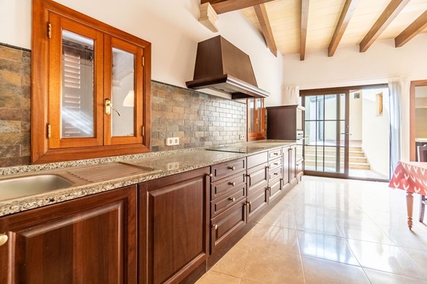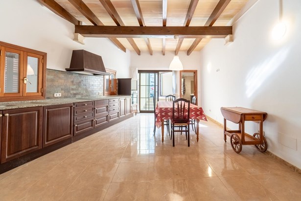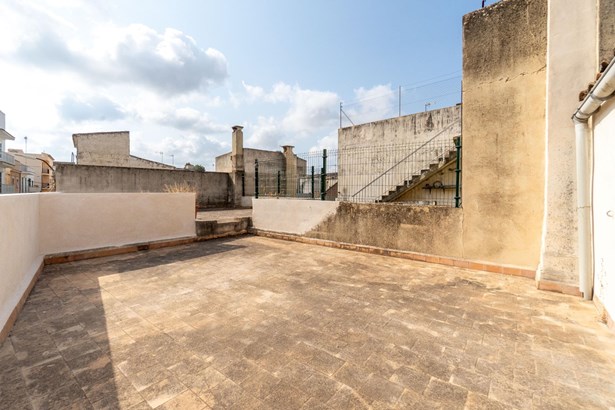 Located in the heart of Felanitx, this town house offers a privileged location, within walking distance of all essential services: shops, schools, restaurants, and transport. Ideal as a permanent residence or an investment, the property is in a highly sought-after area due to its authenticity and excellent connection to other towns in southeastern Mallorca.~~Built on a 171 m² plot, it has approximately 300 m² of constructed area distributed over two floors. The exterior features a traditional Mallorcan stone façade, with access from two streets. Highlights include a large 45 m² terrace with open views of the historic center and a solarium with good sun exposure. The private garage with automatic door and laundry area adds a convenience rarely found in properties of this type.~~The ground floor has been completely renovated, combining modern finishes with original elements such as exposed beams, stone arches, and wooden interior carpentry. It includes a spacious entrance hall, double living room with fireplace, equipped kitchen, interior patio, two versatile bedrooms, a full bathroom with whirlpool bathtub, and a guest toilet.~~The upper floor, still to be rehabilitated, offers open spaces with excellent natural light. It has several rooms with potential for new bedrooms and a living area, as well as direct access to the terrace. Ideal for adapting to the buyer’s needs, even as an independent residence within the same property.