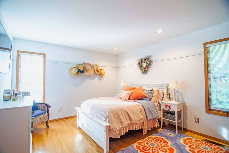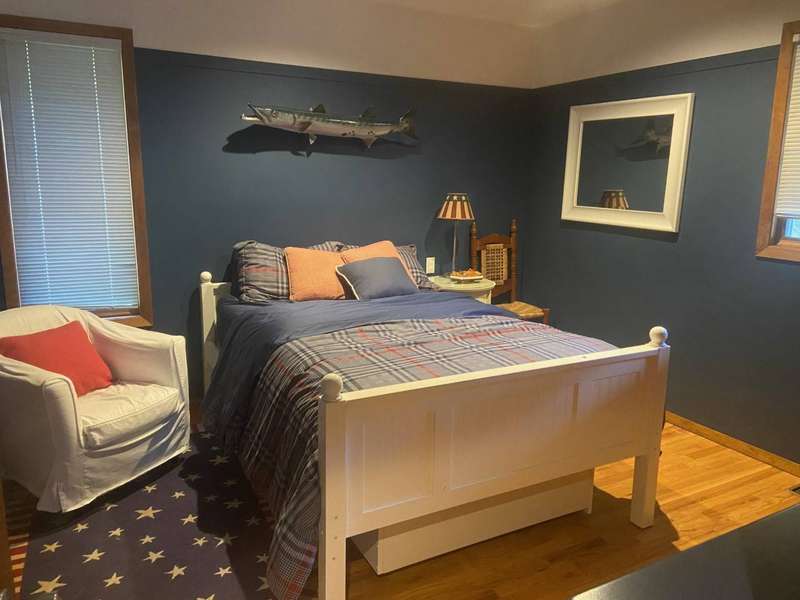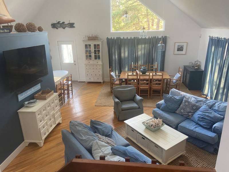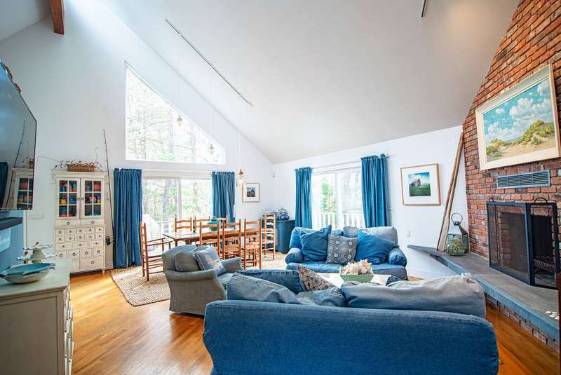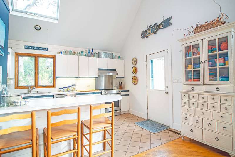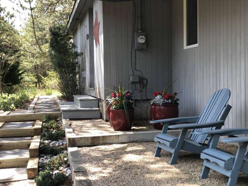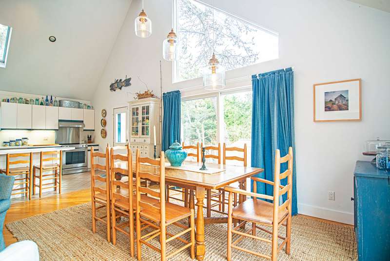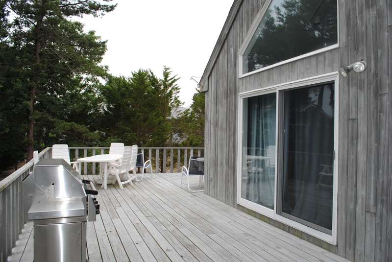 Rental Reg. # 24-127. Located one-half mile +\- to either Amagansett or Napeague Ocean beach and with private beach access for community residents, this modern classic home provides 4 bedrooms and 2 full bathrooms on 0.23+\- acre bordering reserve. The bright, open floorplan features a fully vaulted ceiling with a kitchen, living, and dining room. The living room is enhanced by glass sliders to surrounding decks and a masonry wood-burning fireplace. A primary en suite, with a recently renovated bath, includes vaulted ceilings with a skylight and a sitting porch; 3 additional spacious guest rooms, all with flat-screen televisions to complete the 1,950 +\- SF residence. Additional amenities include central air-conditioning, gas barbeque, a large outdoor walk-in shower, and ample guest parking. Listing ID: 736293