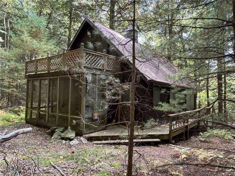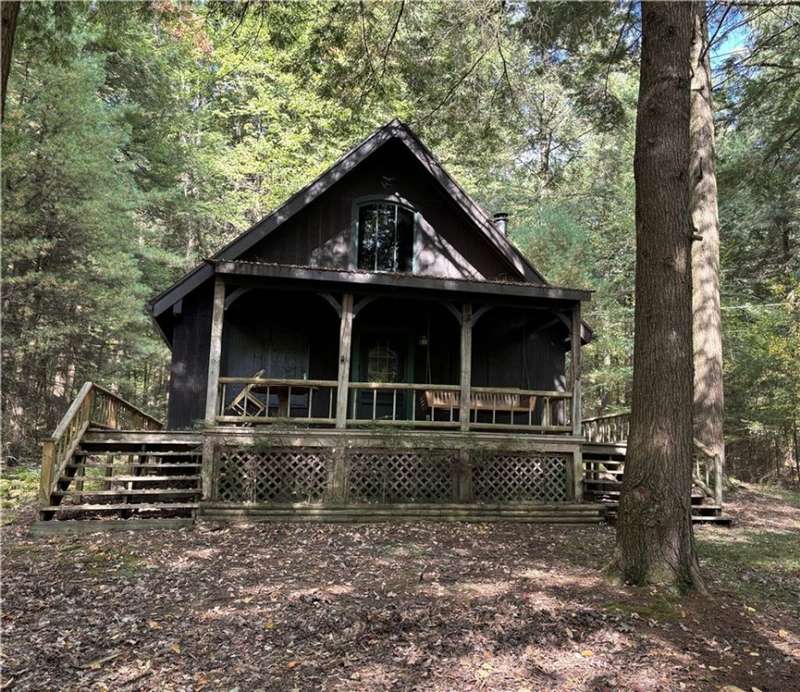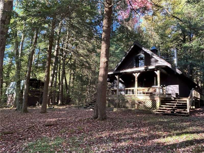 "CABIN IN THE WOODS" - Discover this perfect getaway in the Hearts Content area! Tucked away among the trees, this cozy two-bedroom cabin is the ultimate getaway. The wood siding and wraparound deck enhance the charm and appeal of the cabin's exterior. Extra features include approximately one acre, a shed with staircase access to an upstairs storage area and a pavilion for outdoor entertaining. The rustic interior boasts a loft area and three heat sources including a propane forced air furnace, a wood-burning fireplace, and an electric heater. The main floor has a bedroom, while the loft sleeps six and opens to a balcony with views of the serene backyard. Take a walk through the woods or unwind on one of the porches, soaking in the peaceful sounds of nature. Surrounded by the Allegheny National Forest, this area is perfectly located, offering great opportunities for hunting and hiking.