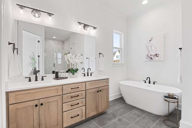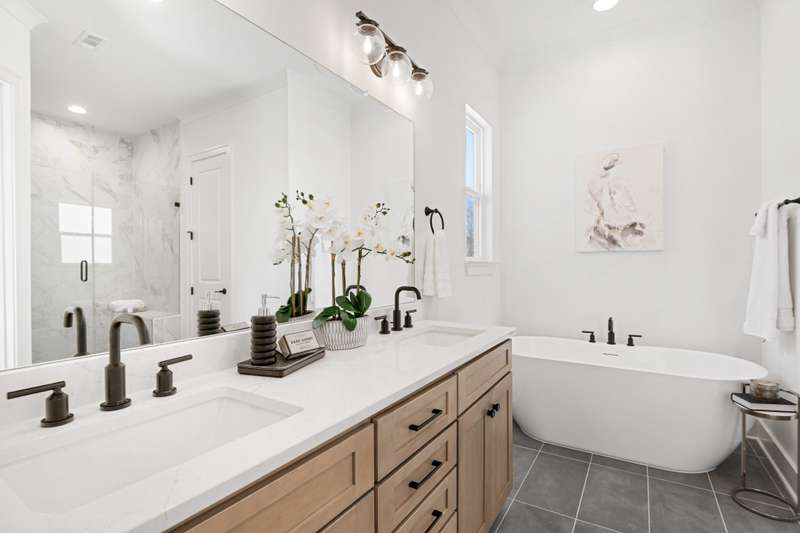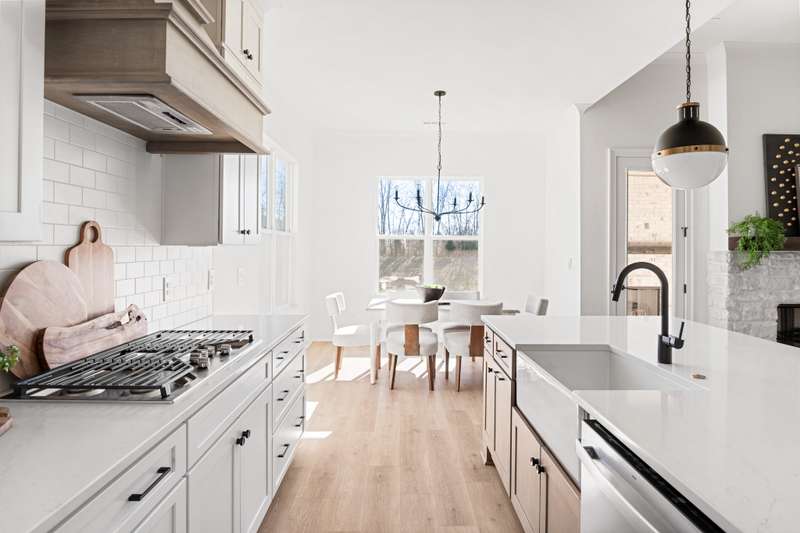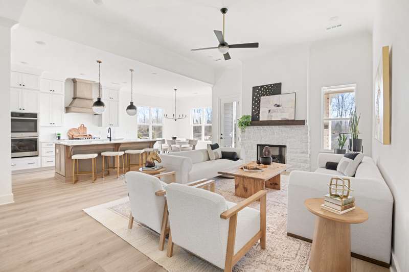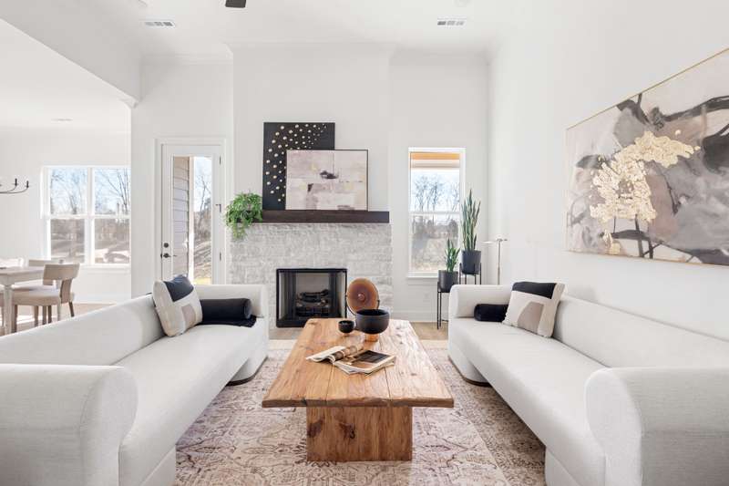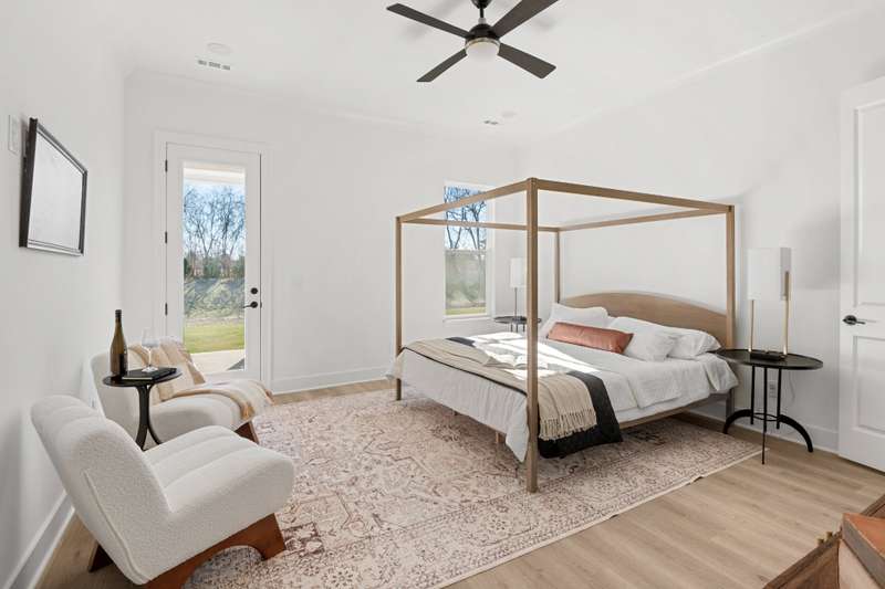 Beautiful new home just completed! You will love the flow and feel of this home. Designer finishes through out! 2 bedrooms on the main level with 3 bedrooms up! 10' ceilings, hardwood floors, Quartz counter tops, soft close cabinets, oversized kitchen island, walk-in pantry, butlers pantry. Main level primary suite has elegant soaking tub & huge spa like shower. Fantastic home site on cul-de-sac and backing to common area with mature trees. Covered back patio with wood burning fireplace. Convenient to interstates I-24 and 840. Located in the highly sought Shelton Square community with fantastic amenities including pool, parks, playgrounds, walking trails.