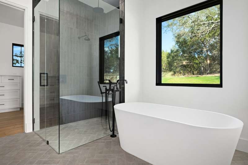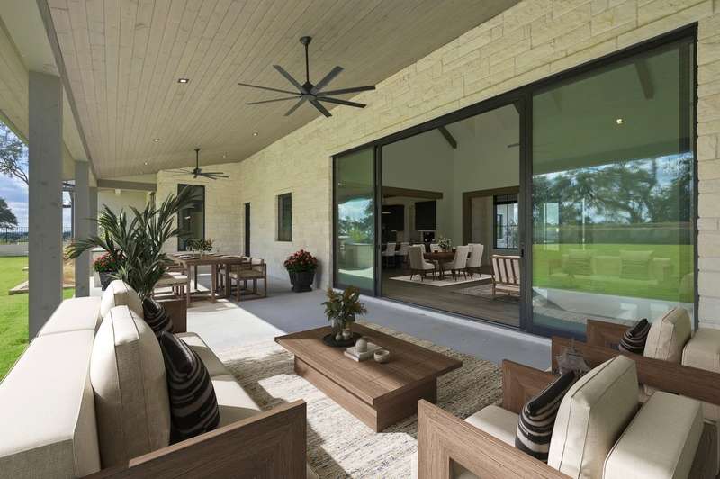 Enjoy seamless indoor-outdoor living through large sliding glass doors that open to a spacious covered patio with a built-in outdoor kitchen, ideal for al fresco dining. The beautifully landscaped yard offers lush greenery and scenic Hill Country views, with the yard already pre-plumbed for easy pool installation. With placement in the highly rated Lake Travis ISD, this Bee Cave residence blends modern elegance with functional design in one of the area’s most coveted new communities.