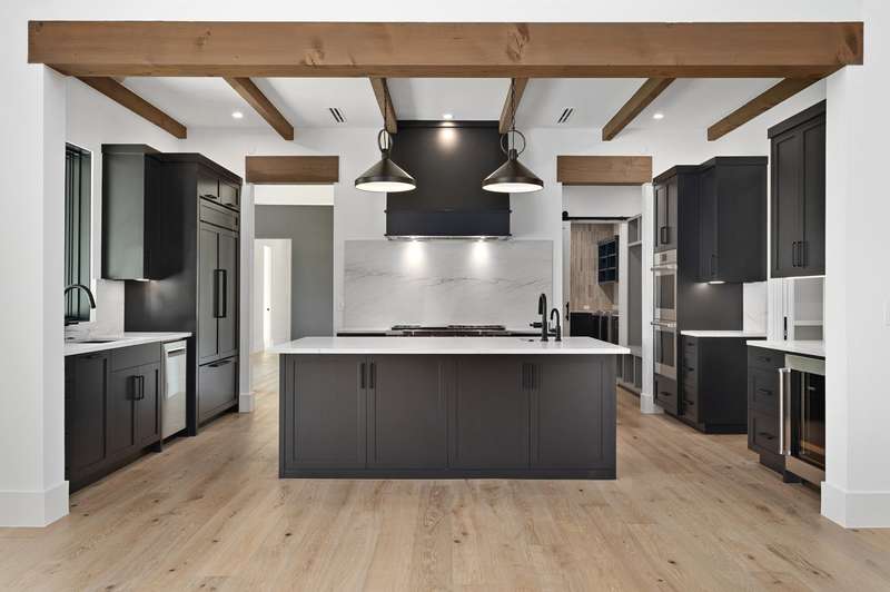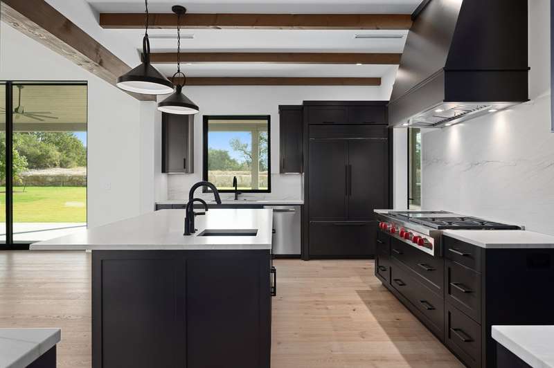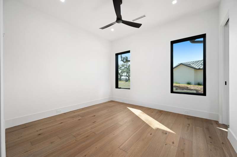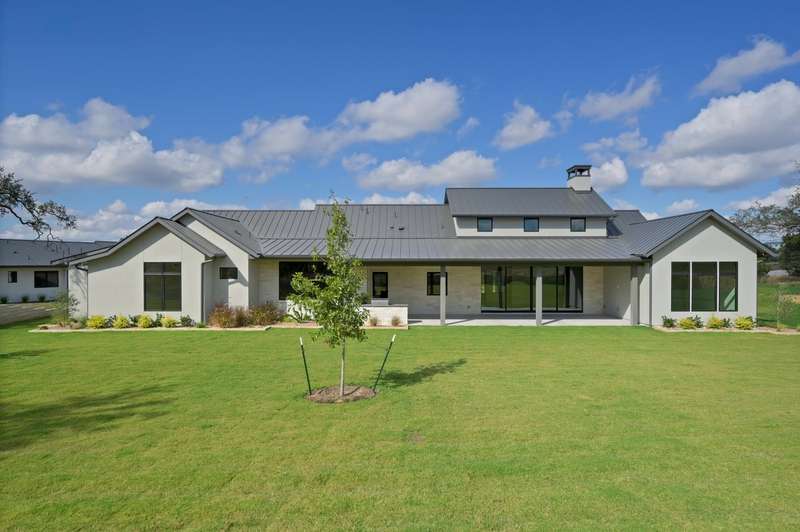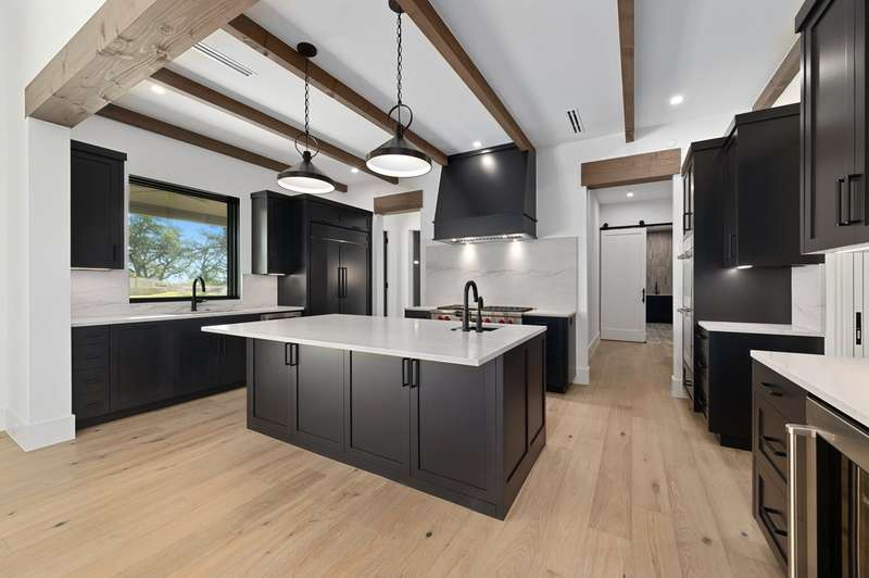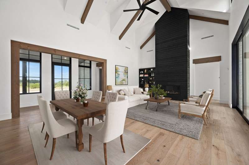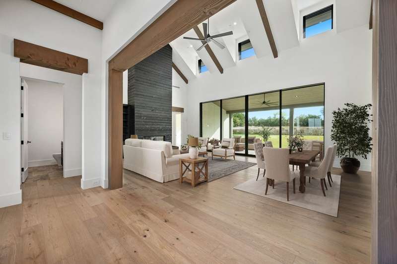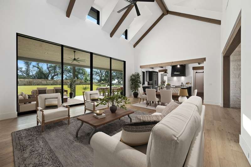 Situated in Bee Cave’s desirable gated community, Madrone Canyon, this new construction single-level home showcases refined Hill Country living with stunning craftsmanship. Soaring vaulted, wood-beamed ceilings and a statement fireplace anchor the open great room, complemented by beautifully engineered hardwood floors. The immaculate kitchen impresses with a spacious center island, stainless steel appliances including double ovens and a wine cooler, dual sinks, and a walk-in pantry, perfect for entertaining or everyday luxury.