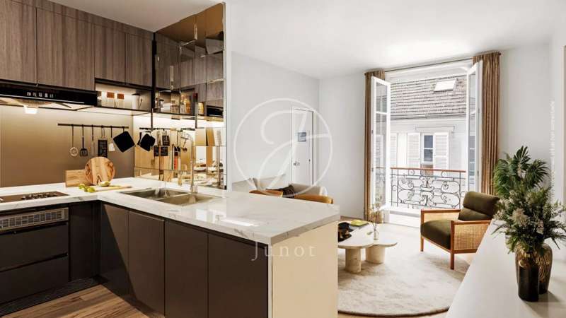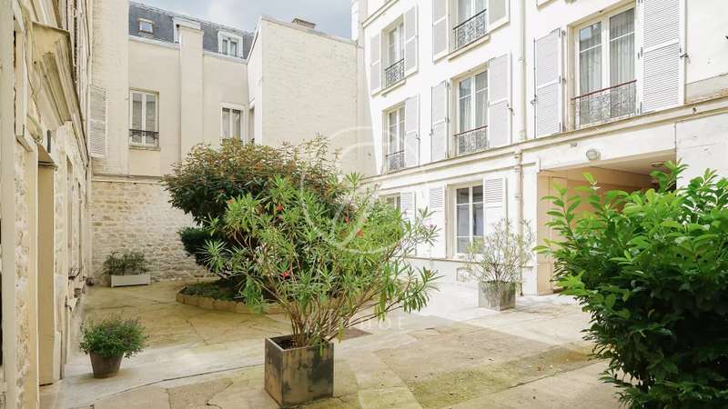 In a sought-after shopping district, rue Saint-Dominique. On the second floor of a charming condominium, this south-facing two-bedroom apartment opens onto a lovely, unobstructed courtyard. The small entrance opens directly onto a living room with open-plan kitchen. The views open onto an airy courtyard, comprising a garden and the upper part of a beautiful through building. The adjoining bedroom has the same view, and direct access to a small shower room with toilet. The whole property is in good condition (relatively recent renovation), totally quiet and bathed in light. Parquet flooring. A cellar completes this property.