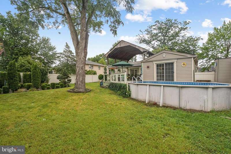 Welcome to 125 East Valleybrook Rd.- Your Backyard Oasis Awaits in Cherry Hill! Boasting a resort-like backyard complete with above ground pool, covered deck, fenced yard, landscaping and beautiful mediation garden. This charming 3-bedroom, 2-bathroom residence boasts a fresh, modern feel with hardwood flooring throughout and plenty of natural sunlight. Open concept with living room/dining room flowing into a bright kitchen. Entertain with ease in the spacious family room, featuring a cozy gas burning fireplace with built-in shelving perfect for chilly evenings. Sliding doors lead to a charming huge covered patio, ideal for outdoor dining, entertaining, or simply relaxing. Located in Cherry Hill, known for its top rated schools, neighborhoods and convenient access to amenities. Close to shopping malls, golf courses, dining and entertainment. Close to I-295, most major roadways and short ride to Center City. Recent upgrades include HVAC (2018), Roof (2019) and HWH (2017). This home is being sold as-is, with Township CCO and Fire Certifications provided by the seller.