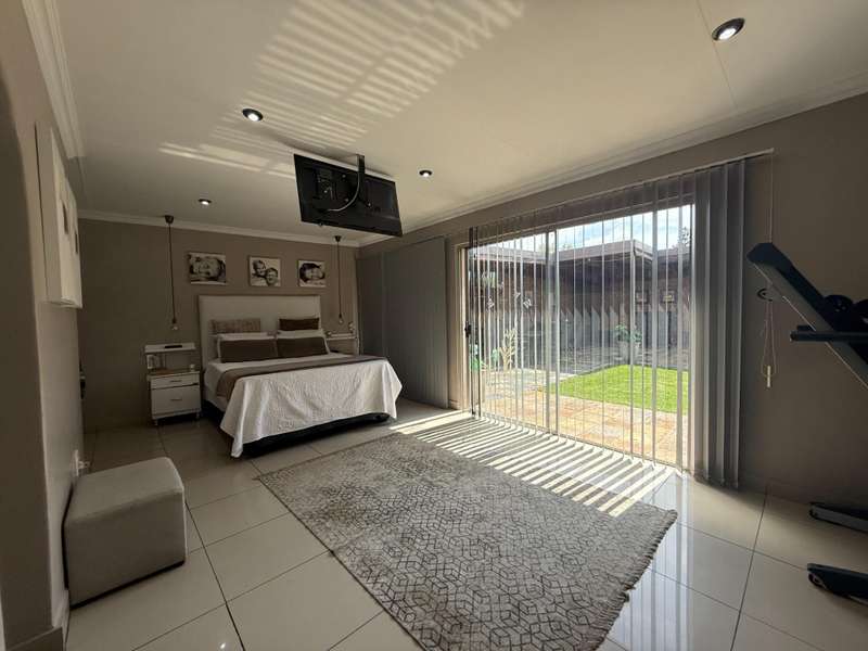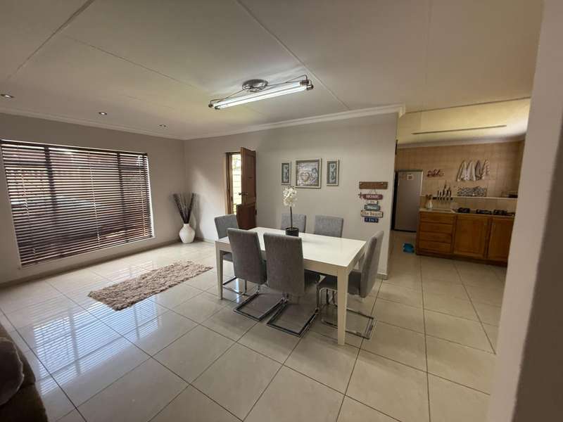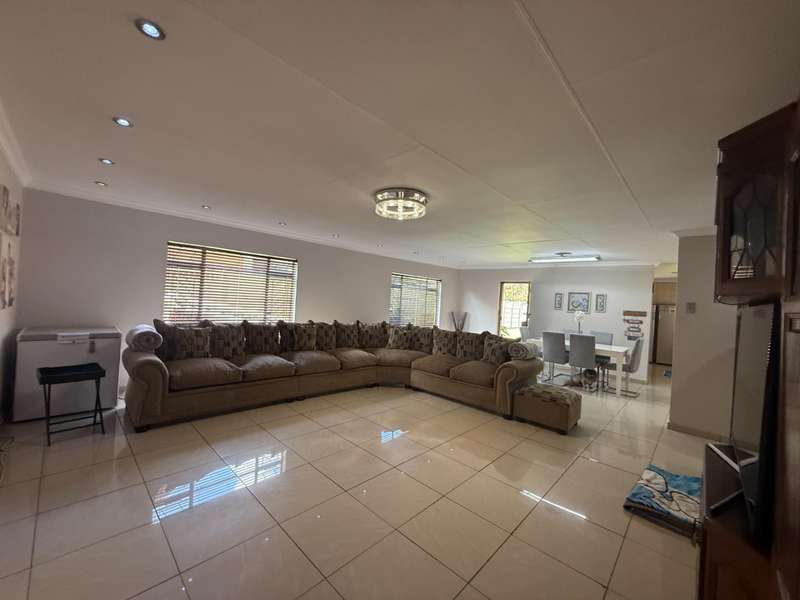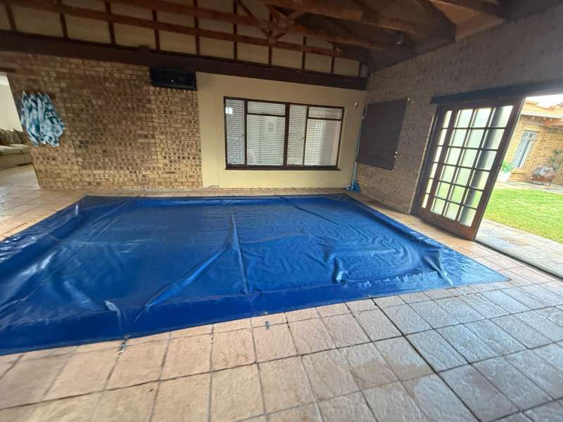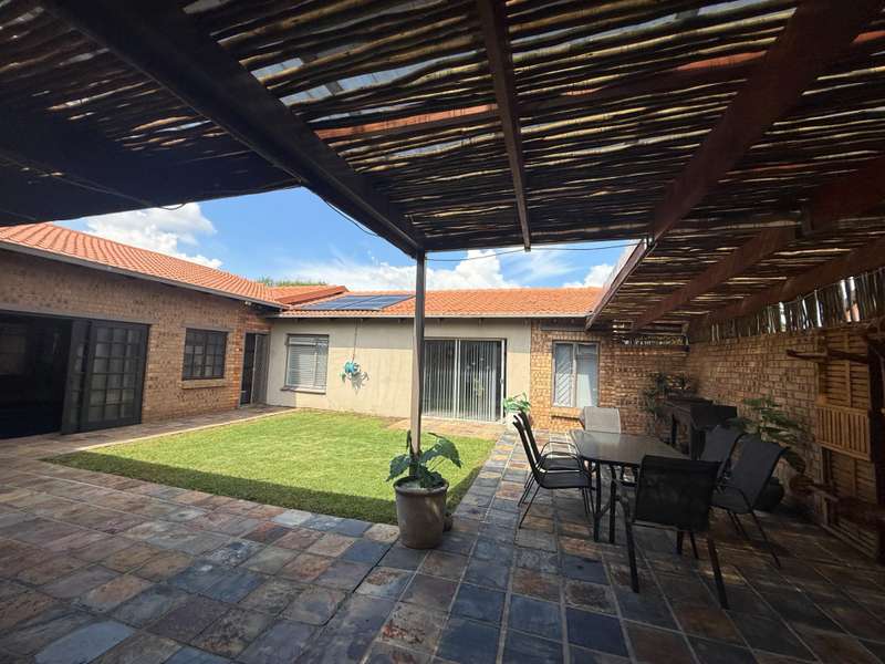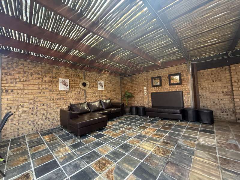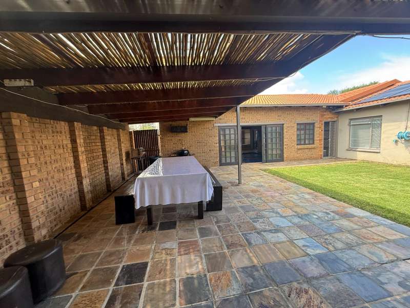 Luxurious Family Home with Entertainer's Delight Features Discover a stunning property that's perfect for families and entertainers alike. This incredible home boasts an array of luxurious features, including: Open-Plan Living Areas - Two spacious living areas with tiled floors and downlights - Seamless flow into the open-plan kitchen with solid wooden cupboards, ample storage, and generous counter space - Equipped with two eye-level ovens, a five-plate gas hob, and a convenient prepping basin - Additional scullery area for extra storage and functionality Spacious Bedrooms - Four bedrooms, each with built-in cupboards and fully tiled floors - Two bedrooms with doors opening onto a private patio and garden area - Main bedroom features a luxurious walk-in closet Luxurious Bathrooms - Two bathrooms, including a stunning en-suite bathroom attached to the main bedroom Outdoor Entertainment Area - Private patio area with stylish slate tiles - Undercover entertainment space with two built-in bar counters, a built-in braai, and a heated swimming pool and jacuzzi Additional Features - One-bedroom flat with potential for additional income - Garage with electric garage door - Double carport and double shade net carport for ample parking This property combines luxurious living with practicality and investment potential, making it an ideal family home and entertainer's delight. Don't miss out on this incredible?áopportunity! Contact Stoffel to arrange a viewing.