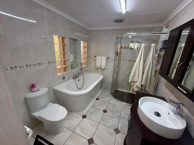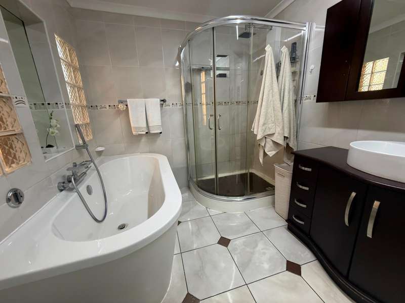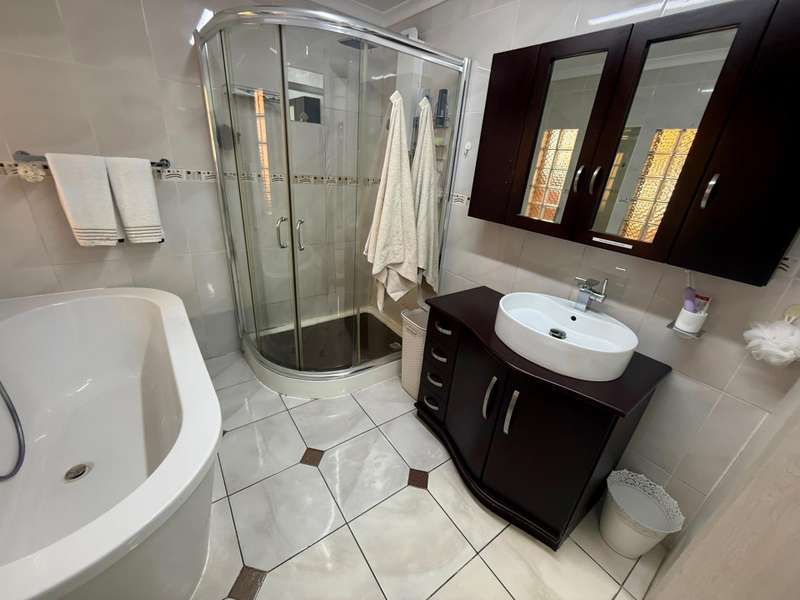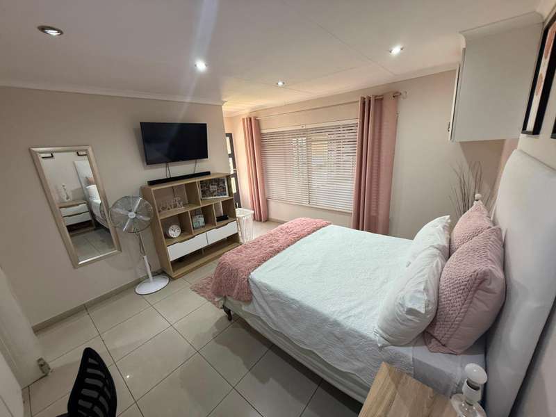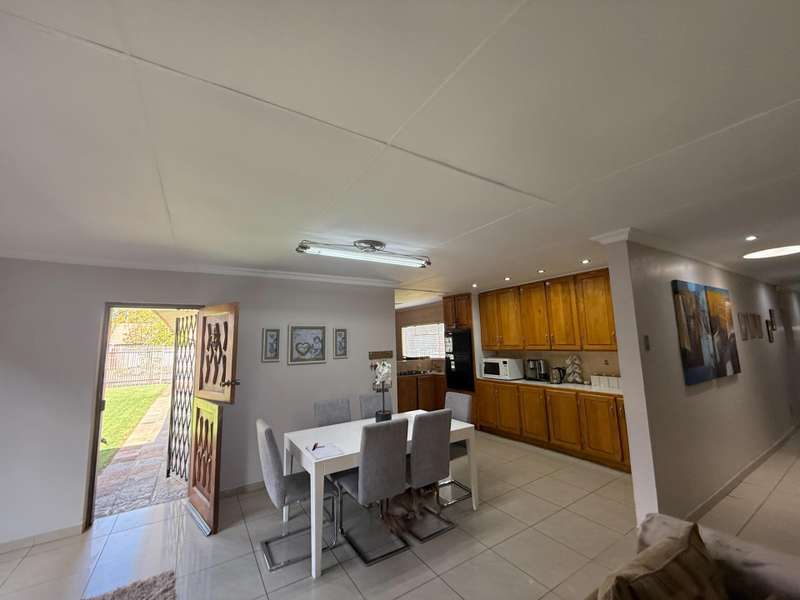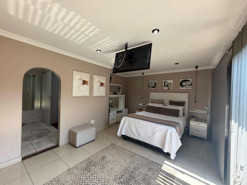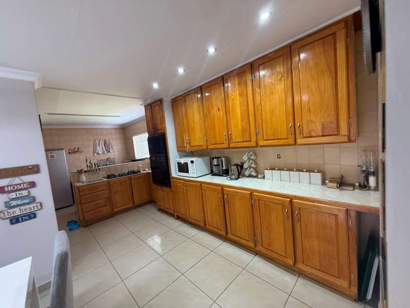 Luxurious Family Home with Entertainer's Delight Features Discover a stunning property that's perfect for families and entertainers alike. This incredible home boasts an array of luxurious features, including: Open-Plan Living Areas - Two spacious living areas with tiled floors and downlights - Seamless flow into the open-plan kitchen with solid wooden cupboards, ample storage, and generous counter space - Equipped with two eye-level ovens, a five-plate gas hob, and a convenient prepping basin - Additional scullery area for extra storage and functionality Spacious Bedrooms - Four bedrooms, each with built-in cupboards and fully tiled floors - Two bedrooms with doors opening onto a private patio and garden area - Main bedroom features a luxurious walk-in closet Luxurious Bathrooms - Two bathrooms, including a stunning en-suite bathroom attached to the main bedroom Outdoor Entertainment Area - Private patio area with stylish slate tiles - Undercover entertainment space with two built-in bar counters, a built-in braai, and a heated swimming pool and jacuzzi Additional Features - One-bedroom flat with potential for additional income - Garage with electric garage door - Double carport and double shade net carport for ample parking This property combines luxurious living with practicality and investment potential, making it an ideal family home and entertainer's delight. Don't miss out on this incredible?áopportunity! Contact Stoffel to arrange a viewing.
