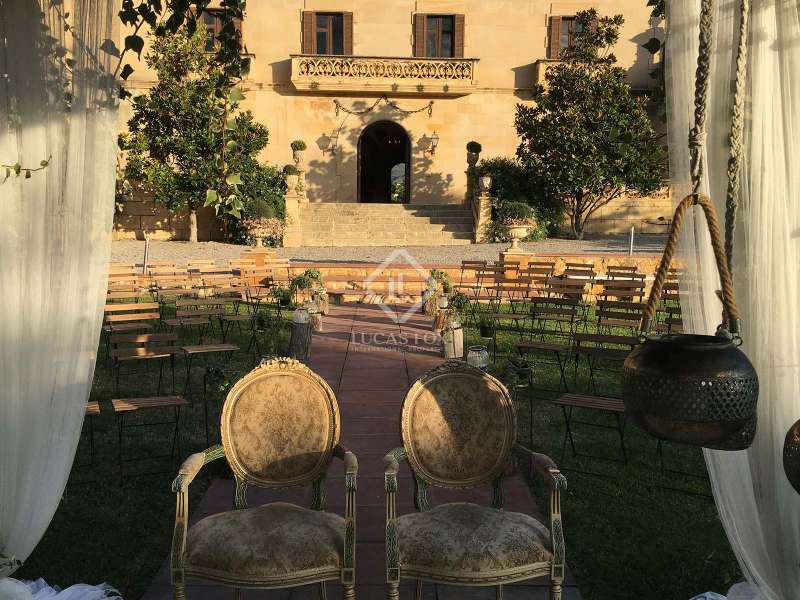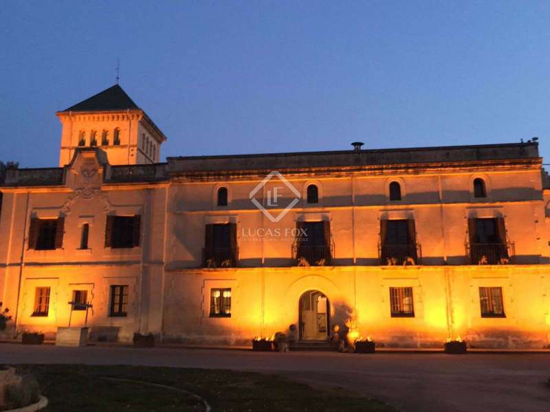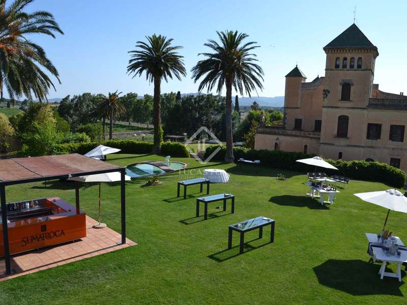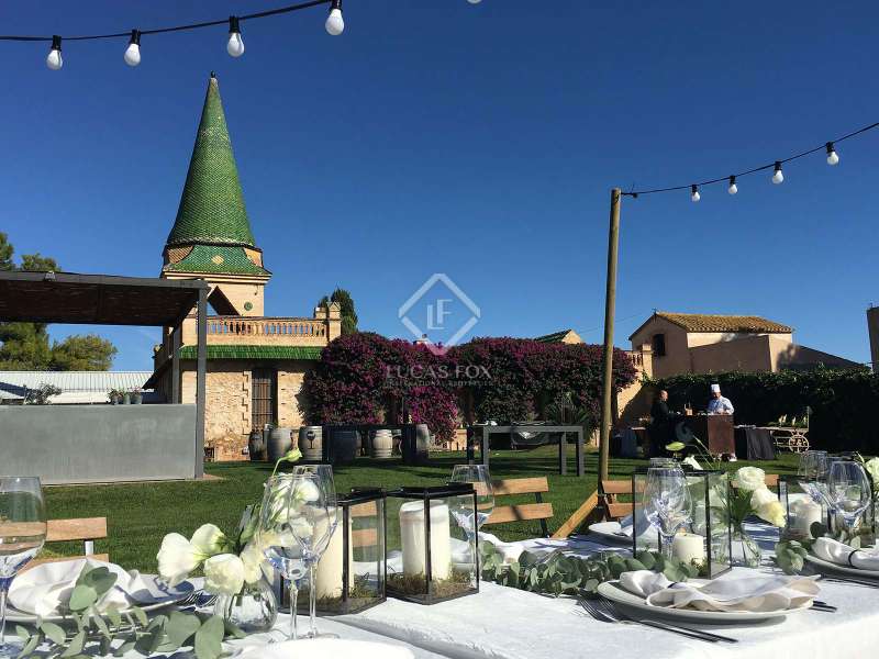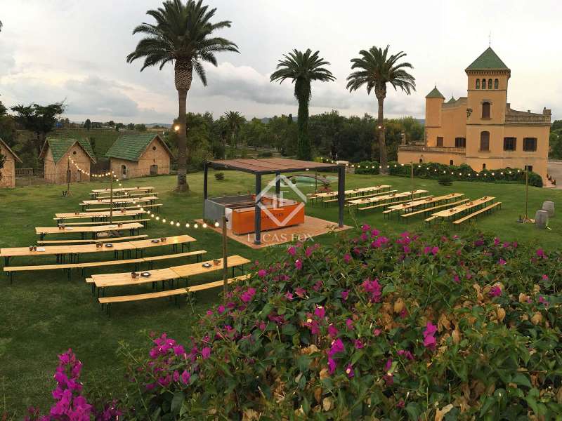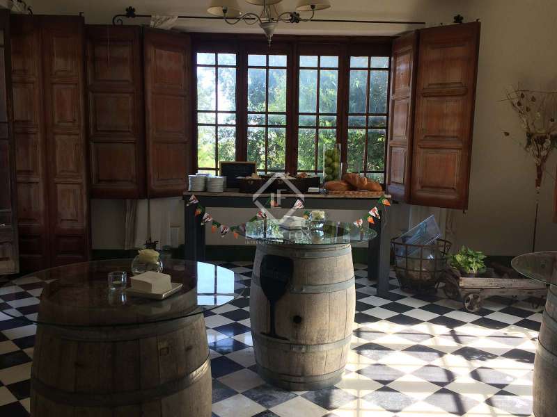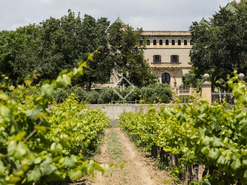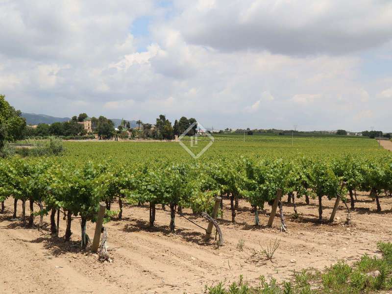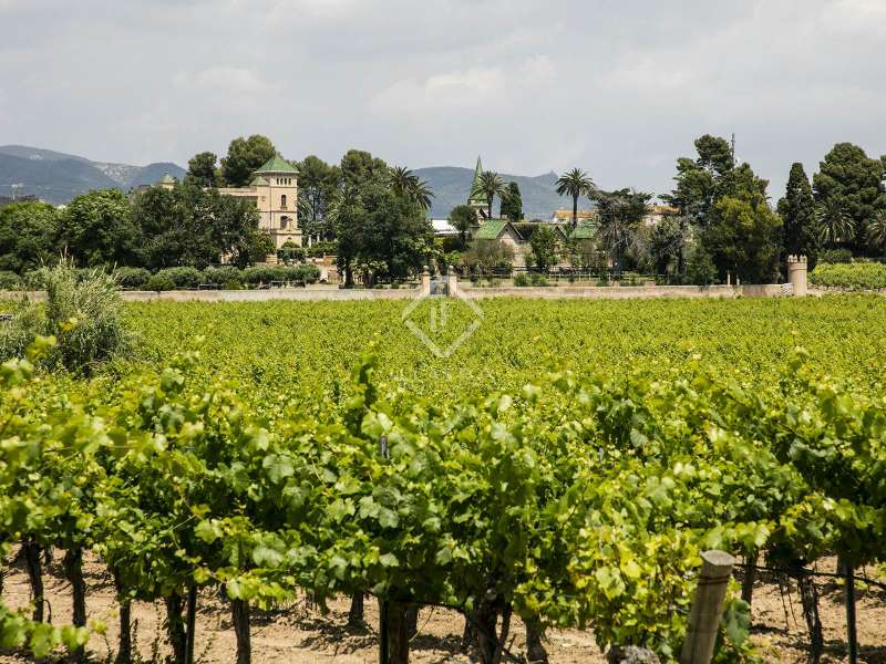 The Heretat Sabartés estate was built in the middle of the 18th century and is located in the centre of Baix Penedès, very close to the towns of Banyeres del Penedès and Llorenç del Penedès. It is very well connected by road, just 30 minutes by car from Tarragona, 35 minutes from Reus airport and 40 minutes from Barcelona and its airport. The estate consists of several buildings including the masoveros houses and warehouses, as well as the main building surrounded by walls with cylindrical towers, which hark back to the style of the era. There are 20 hectares of cultivated land, where vineyards predominate with the cultivation of Chardonnay, Muscat, Riesling and Sauvignon Blanc grape varieties, producing cava and wines under the Cava and Penedès designation of origin. The entire vineyard is ecological and also has a natural water mine with a 640 cubic metre accumulation tank which serves as an automatic irrigation system. In addition, with the current capacity, the yield of the crop in the last 3 years has been 9,500 kg / ha and the average of bottles produced annually is 150,000 ud / year. The main building corresponds to the eighteenth century mansion and has a built area of 1,462.88 m² distributed over 3 floors, consisting of 19 rooms, a loft, storage room and a porch in the middle of an neat garden with a swimming pool. The square tower with hipped roof and a small chapel as an annex to the building is particularly noteworthy. Among the other buildings we have the old bathing sheds: 3 unique architectural pieces surrounded by extensive gardens with palm groves and a small pond. We also have a building of 400 m² for celebrations, plus a warehouse and a service area, currently used for all kinds of celebrations. In addition, there is a warehouse of 571.26 m² also used for a variety of celebrations. Finally, there is a secondary house of 82.5 m² with an attached garage, a house for the masovero measuring 98.69 m² with an attached garage, 2 warehouses of 173.36 m² each, an irrigation shed and another garage. The estate is ideal for anyone seeking a property of historical interest with the intention of producing and marketing their own wine and cava. It is also a great opportunity for investors who want to create a hotel or events venue. Contact us for more information or to arrange a viewing.