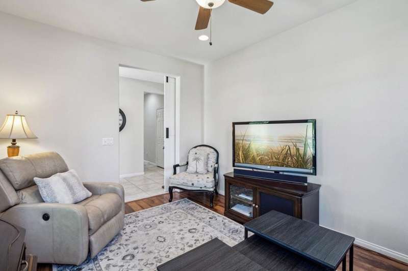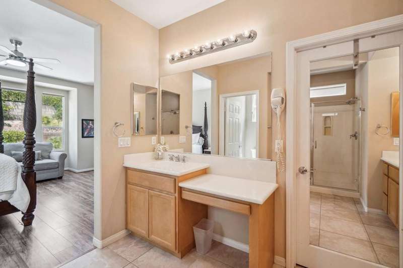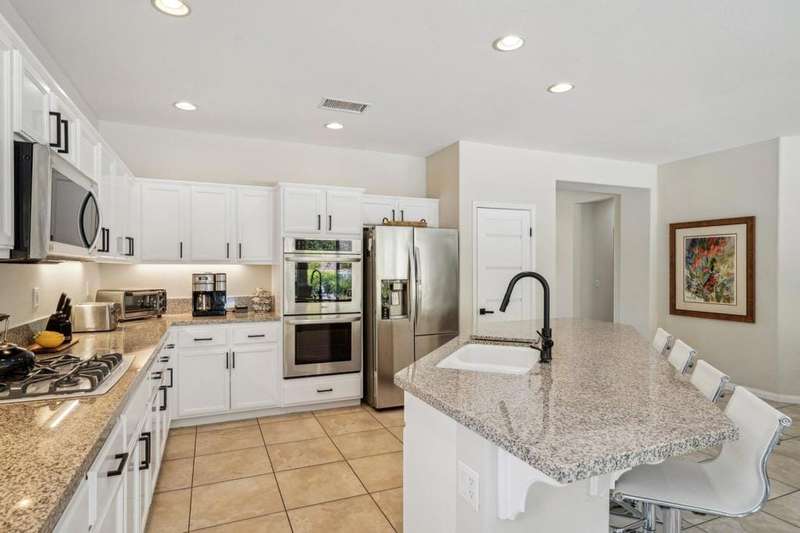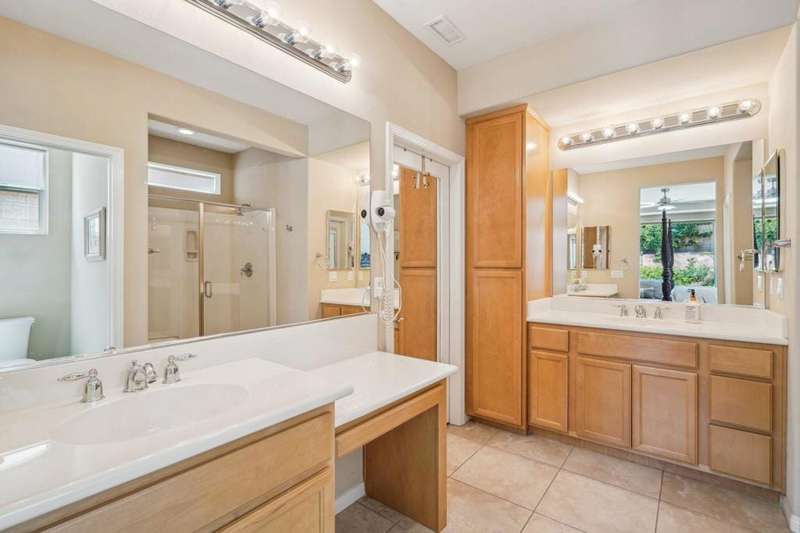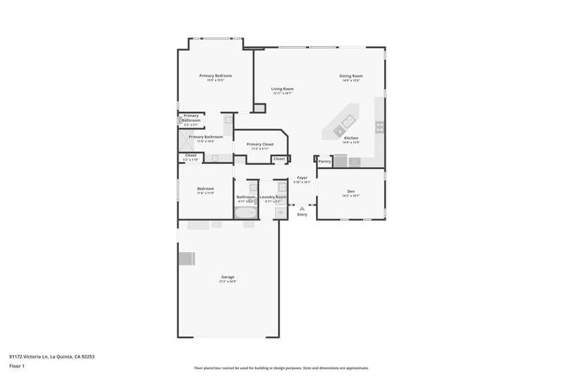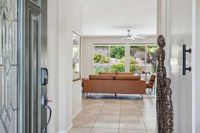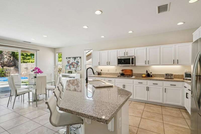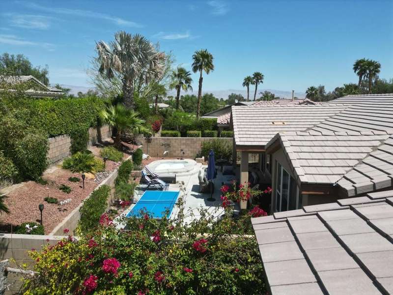 Welcome to the coveted Trilogy La Quinta--an exclusive 55+ resort-style enclave cradled by breathtaking mountain vistas! This highly sought-after Monterey plan with charming Tuscan facade offers 2 bedrooms, 2 baths, a versatile den/office (easily a 3rd bedroom with stylish barn doors), and 1,693 sq ft of open-concept elegance. Bask in the natural light of the great room, featuring custom window treatments, recessed lighting, tile flooring, and a sleek media niche. The entertainer's kitchen dazzles with stainless steel appliances, slab countertops, gas cooktop, double built-in ovens, microwave, a generous prep island with bar seating, and a walk-in pantry. Guests will appreciate the comfort, and privacy afforded them, and the primary suite is a serene escape with plank flooring, a bay window, and spa-like en suite complete with dual vanities, expansive shower, and walk-in closet. Enjoy a full laundry room with deep sink and ample cabinetry. Step outside to your private oasis with covered patio, professional landscaping, retaining wall, and an oversized concrete deck ready for gatherings under the stars. Just a quick 5-minute golf cart cruise to the Santa Rosa Clubhouse and all the resort amenities it offers--this home is desert living at its finest!