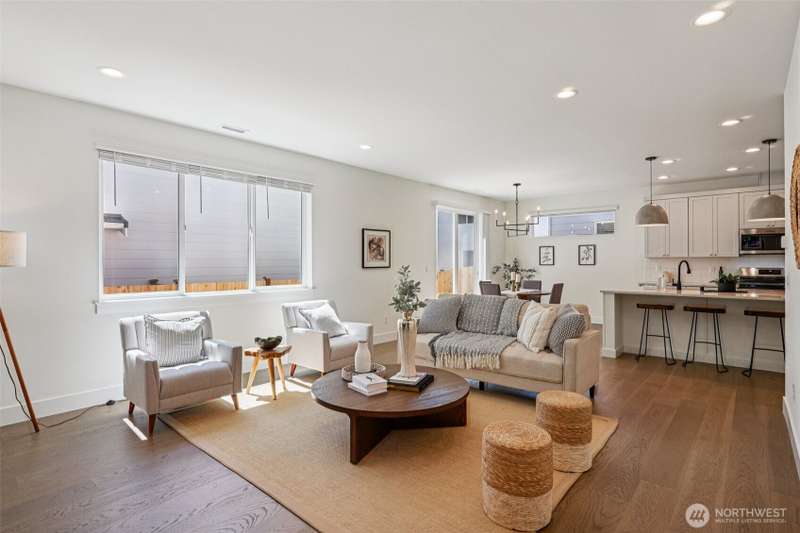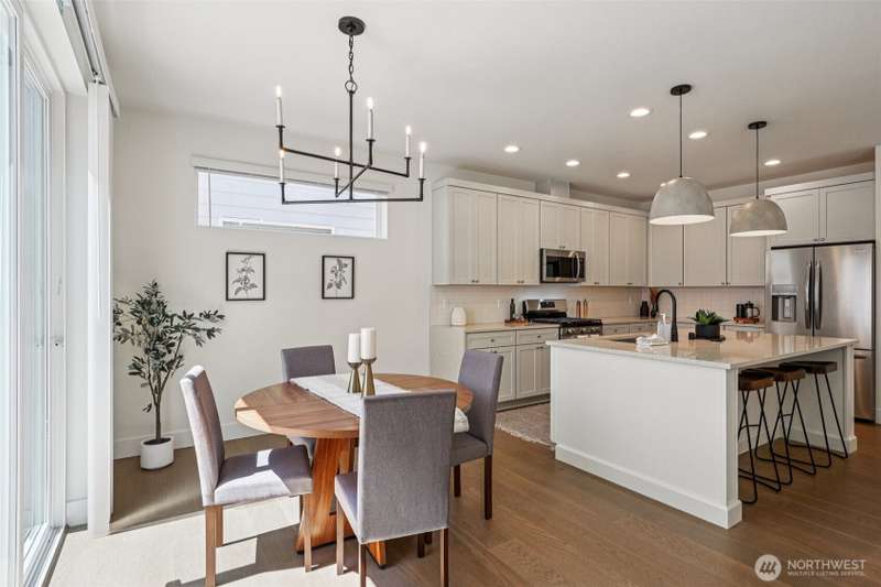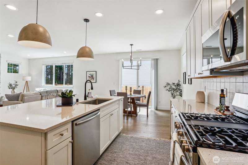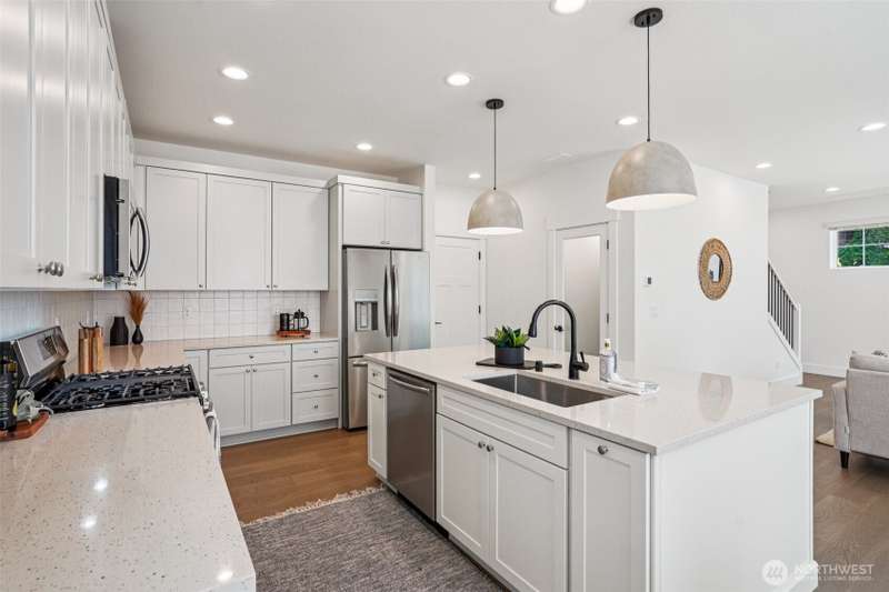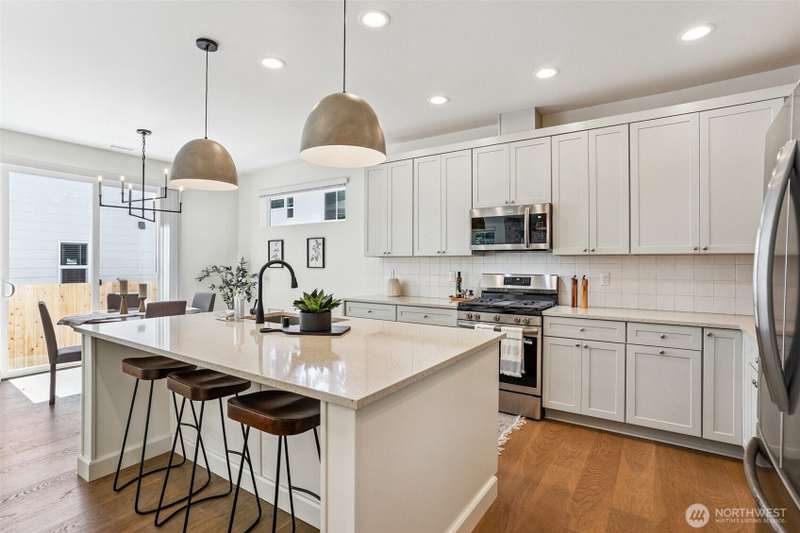 4.99% 30-yr CONV with builder $50,000 rate buydown w/ preferred lender. New construction in Edmonds’ Esperance neighborhood. This 4-bed home blends bright, airy design w/ thoughtful open-concept layout. Main living area anchored by gas fireplace w/ floor-to-ceiling stone surround. Kitchen features oversized quartz island, bar seating, matte black fixtures, white shaker cabs, SS appl, gas range & walk-in pantry. Dining area flows seamlessly to the private, fully fenced yard—ideal for entertaining. Spacious Primary Suite has walk-in closet & 5-pc bath. Add’l beds + loft off the landing provide flex space for WFH or play. 2-car garage w/ EV charging, wide-plank LVP, plus builder warranty. Mins from the Bowl, shops, parks, HWY 99 & I5.