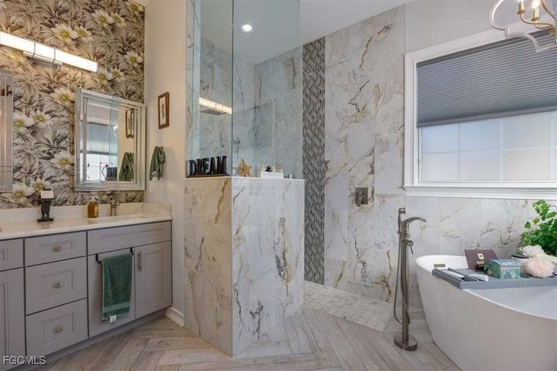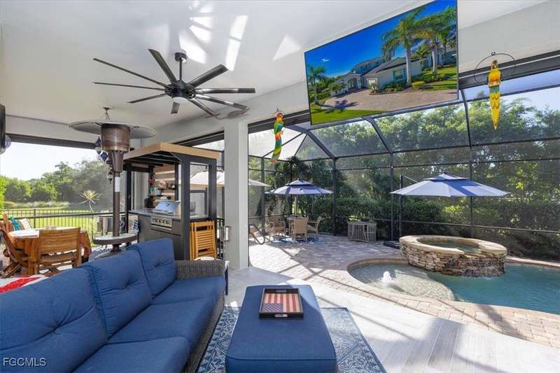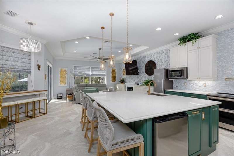 Experience elegance and comfort in this beautifully updated custom, move in ready 4 bedroom 3 full bathroom residence in Catalina Isles, designed for both everyday living and upscale entertaining. The Spacious open-concept layout features a gourmet kitchen with premium finishes, an oversized island, stainless steel appliances, and a separate walk-in pantry, with 2 pot fillers perfect for the modern chef. Retreat to the luxurious primary suite complete with a spa inspired bathroom and generous closet space and linen closets. The main floor guest bedroom and spacious office share the main guest bathroom. Upstairs there is 2 more spacious bedrooms and a loft area for entertaining guest with another full shared bathroom and separate loft area for privacy. Step out to your private oasis, A large screened in lanai is beautifully tiled overlooking the enticing pool and spa and peaceful, beautiful preserve and fenced in yard with room for out door dining, lounging and entertaining. Every detail of this stunning home offers quality craftsmanship, timeless design with the perfect blend of luxury, comfort and privacy. New Metal Charcoal roof installed in 2024, new A/Cs in 2022 and 2024, New Pool pump and heater in 2023, New electric hurricane screens on Lanai in 2025, $16000 single pole car lift making room for a 3rd car to park in garage with 12 foot ceilings. This is a must see home with too many upgrades to list. Catalina Isles is located in a very sought after location in Fort Myers, close to the areas best beaches, Sanibel & Captiva Islands, hospitals and entertainment. Make your appointment today.