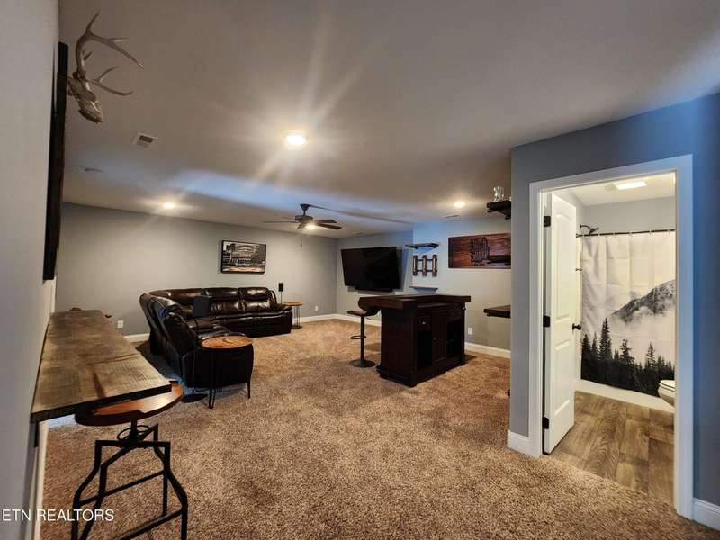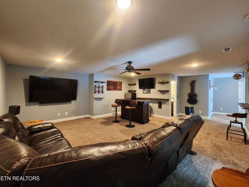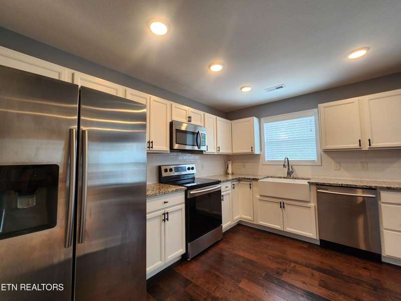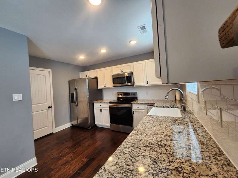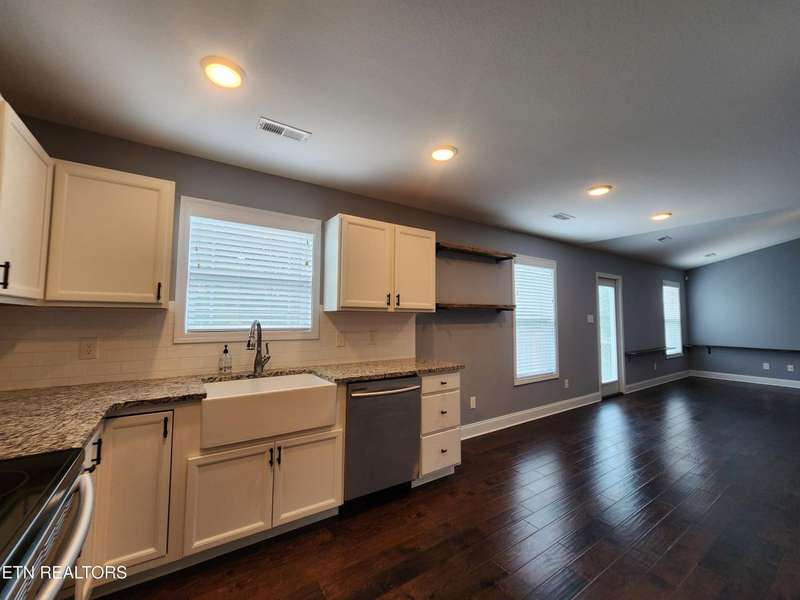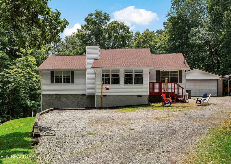 This stunning 4-bedroom, 3-bathroom basement rancher boasts 2,600 SF of finished living space, featuring an open floor plan perfect for both comfortable living & entertaining. Step inside to gorgeous hardwood floors & vaulted ceilings that create a warm, inviting atmosphere. The kitchen shines with elegant granite countertops, a farmhouse sink, & plenty of space, complete with a pantry for all your storage needs. The primary suite is a true retreat, offering a luxurious bathroom with a tub/shower, dual sinks, & a spacious walk-in closet with a personal safe for added security. The 2nd bedroom on the main level also features a large walk-in closet! The finished basement adds additional, versatile living space, ideal for a rec room, home office, or guest quarters. Both downstairs bedrooms have large closets. Additional storage options are plentiful, including a closet under the stairs & more space in the water heater area, along with custom shelves throughout both levels. Enjoy the convenience of a two-car garage & an extended driveway for extra off-street parking. Relax outdoors in your hot tub (still under warranty, purchased in 2024) on the massive lower patio, or take advantage of the spacious concrete backyard pad. Fenced-in yard-perfect for outdoor activities with minimal upkeep! Central heating & air for year-round comfort, this home is situated in a prime Powell location, offering easy access to Knoxville, Karns, Clinton & Oak Ridge. Close to shopping, dining, & schools. Don't miss out on this opportunity to own a spacious home with modern amenities in a desirable location. Schedule your showing today!