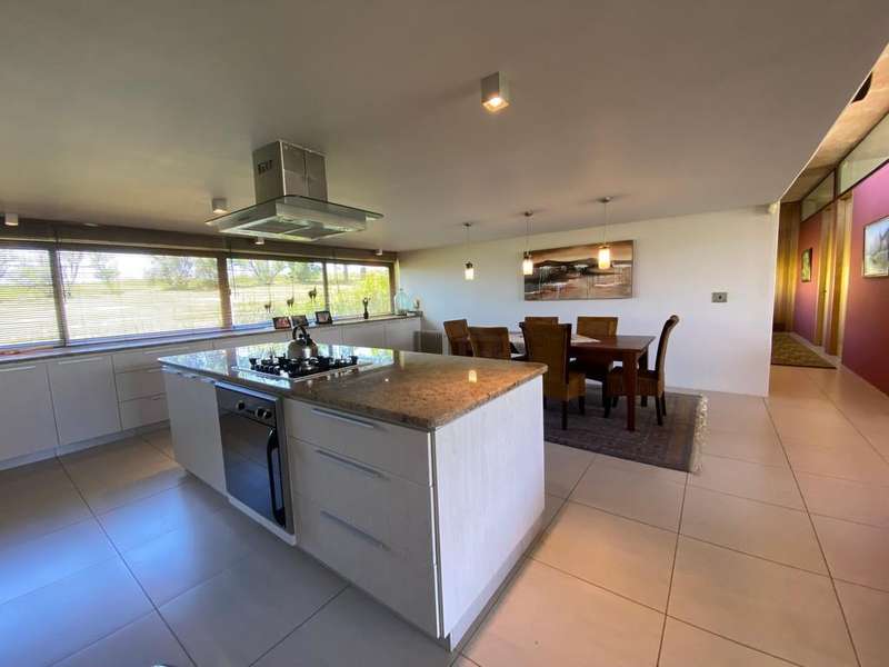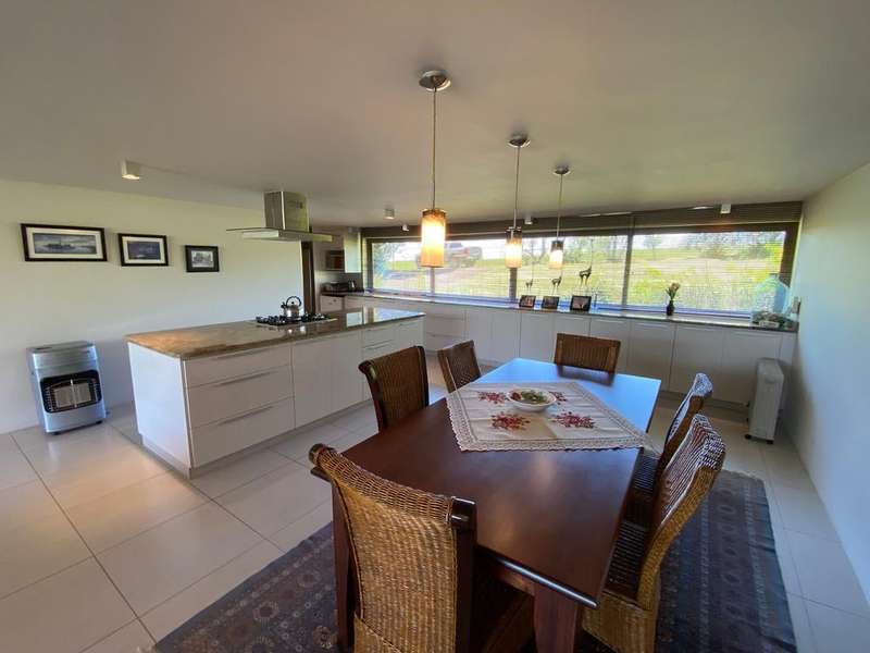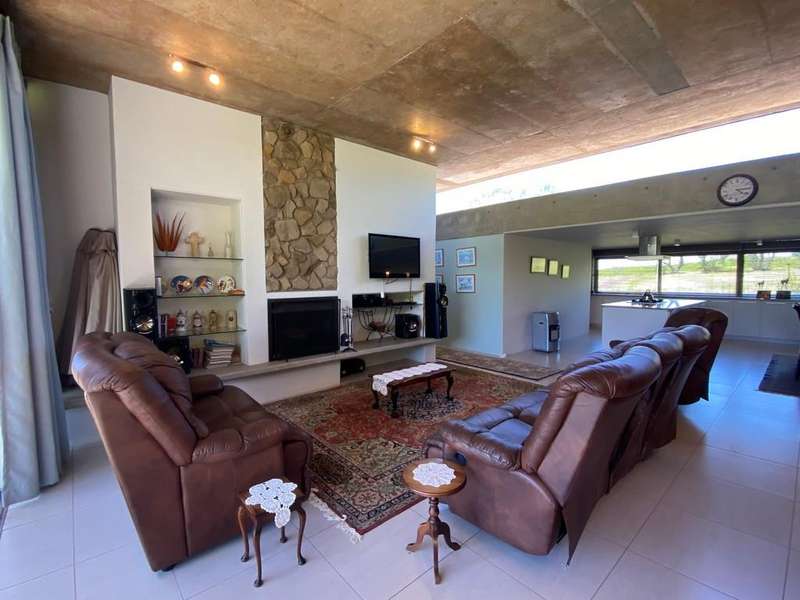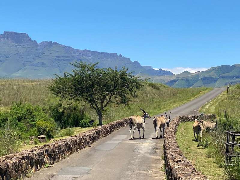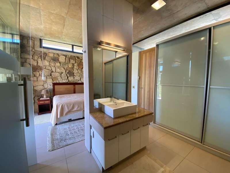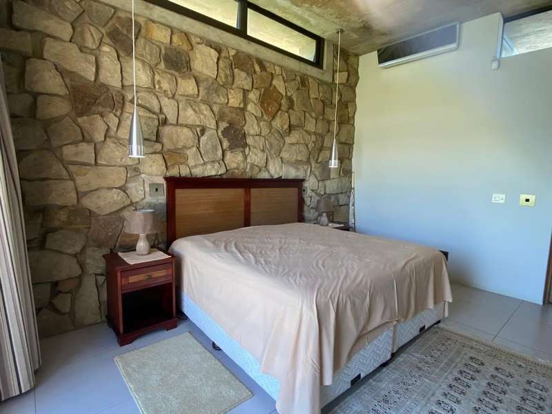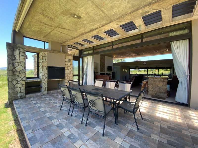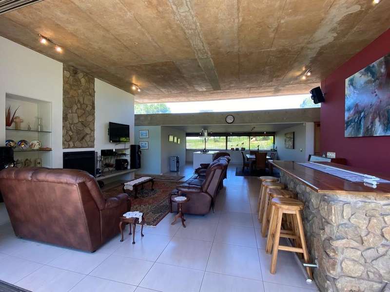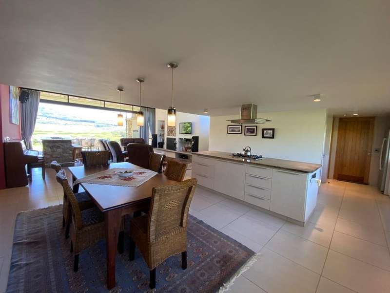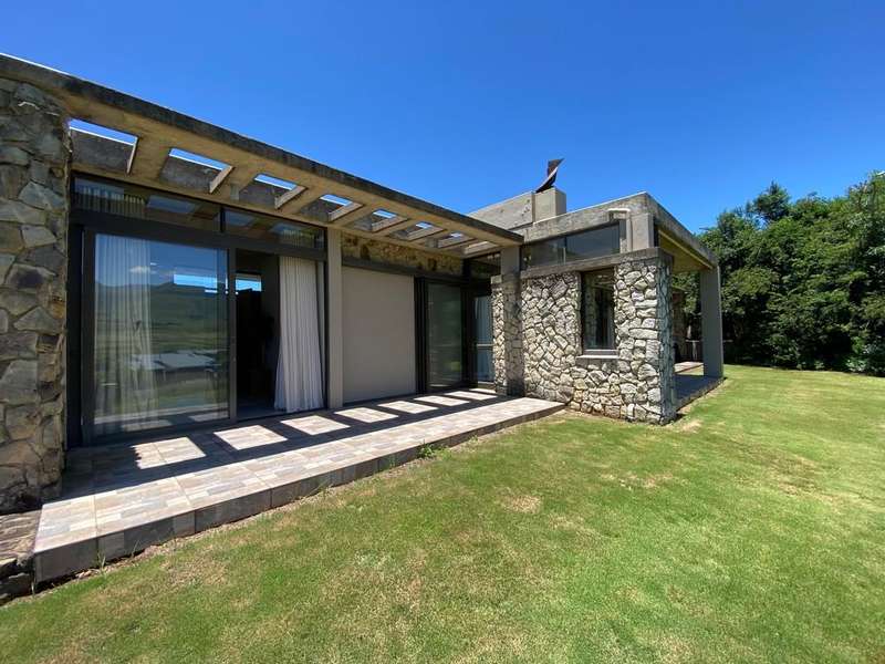 Architectural gem in the heart of the Drakensberg. This home has been designed to stand out above the rest, with the breath taking views of nature and the Drakensberg taken into consideration with its high ceilings and extra length windows and doors overlooking the mountains. As you step into this home, you are greeted by open, natural light filled spaces and the exposed concrete ceilings definitely make a bold statement. The open plan living/dining area has sliding glass doors that open all the way and flow to the covered patio and garden. The bar area and built in braai, makes for the perfect space to entertain your family and friends. Light up the fireplace in the lounge during the cold winter months. The kitchen has more than enough cupboard space, with beautiful granite counter tops, a gas hob and under counter oven. The scullery is tucked away with more cupboard space and also serves as the laundry room. All three bedrooms have stunning rock cladded feature walls and sliding glass doors leading out to the garden and views of the mountain. The main bedroom suite is air-conditioned and has a modern open bathroom design. with a large shower, bath and walk in cupboards. A family bathroom services the two guest bedrooms. The stand out feature of the property is the reinforced concrete roof that covers the entire house. Stairs lead up to a large sun-downers deck on top of the roof and promises the most breathtaking views. The double automated garage has direct access into the house. This house has been designed and built with both functionality and style in mind and no expense was spared to accomplish this masterpiece. Cathkin Estate is a secure eco estate that spans over 1000 hectares of grasslands, forests and streams, making it the largest game reserve in the Drakensberg. Development cover less than 5% of the estate. It is home to indigenous species of fauna and flora, most notably the endangered Oribi antelope. Enjoy nature by hiking or mountain biking or even casting a line in one of many trout filled dams. The estate is access controlled and the villages and the electric fence line that surrounds the entire estate is patrolled. No pets allowed. A once off non-refundable capital development fund levy is payable by the purchaser (12 months levy) Contact me to arrange a viewing appointment.