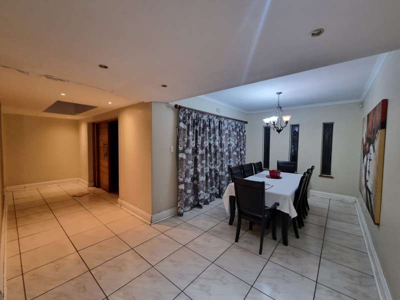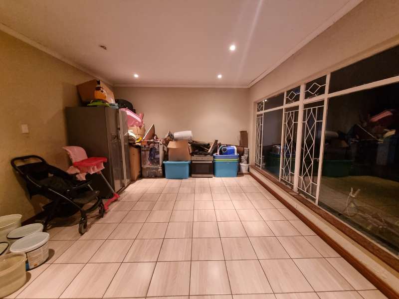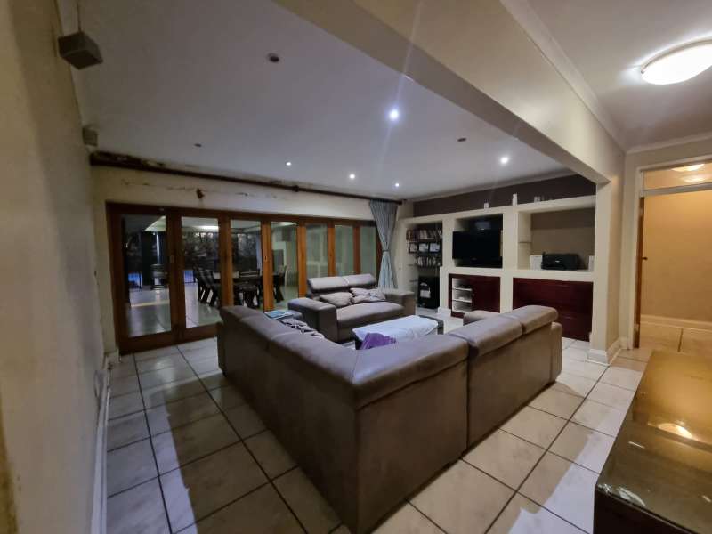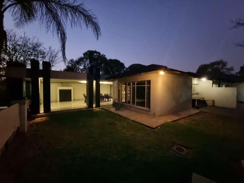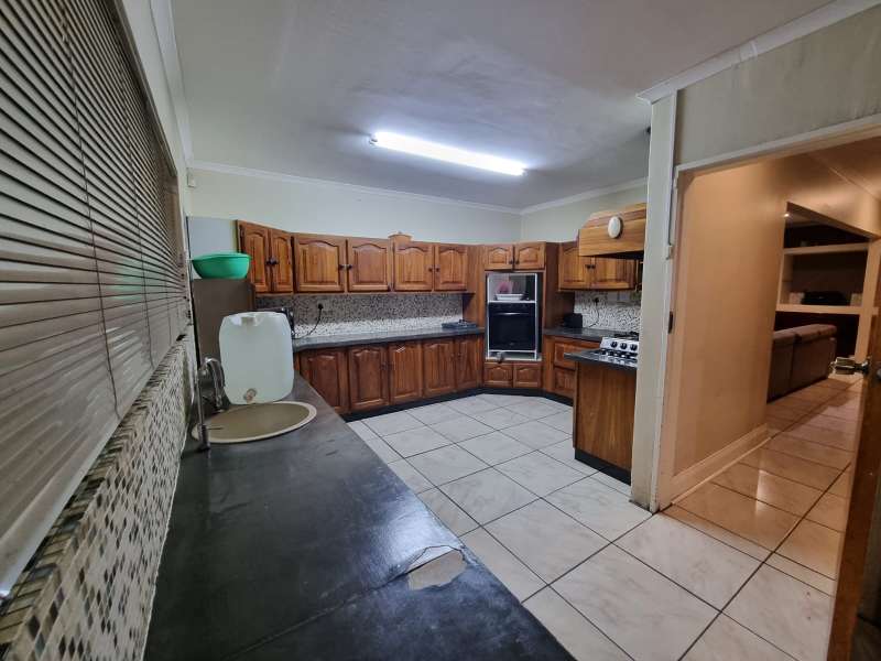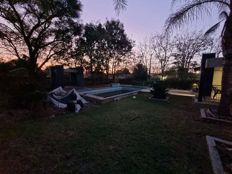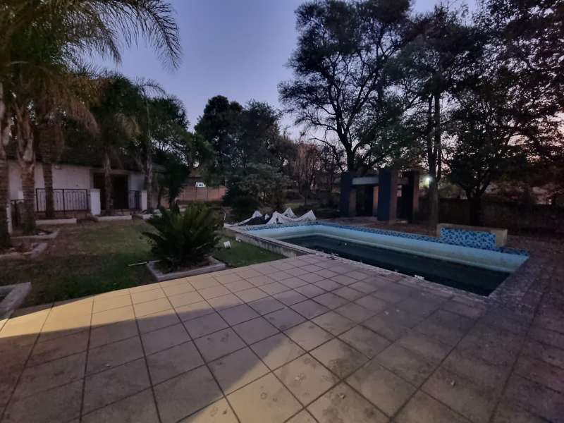 In need of some tender love and care. This spacious property offers 4 bedrooms all fitted with laminated flooring and build in cupboards, 2 full bathrooms with the main on suite, guest toilet, entrance hall, dining room, formal lounge, kitchen with breakfast nook and scullery, tv room that open onto the patio with build in braai overlooking the pool area, sun room / study, office / bedroom outside with bathroom, double garage and spacious garden. Jojo tank Fire place in formal lounge