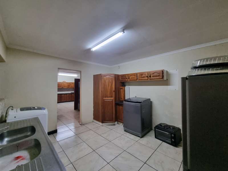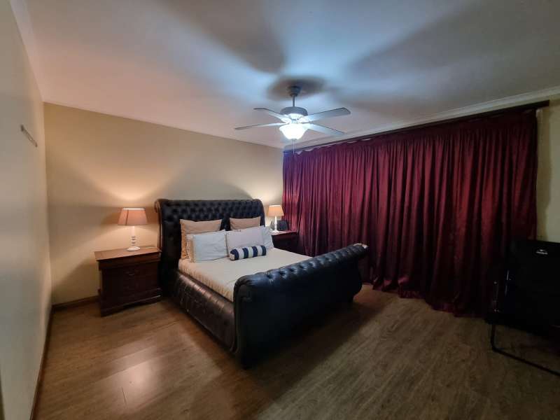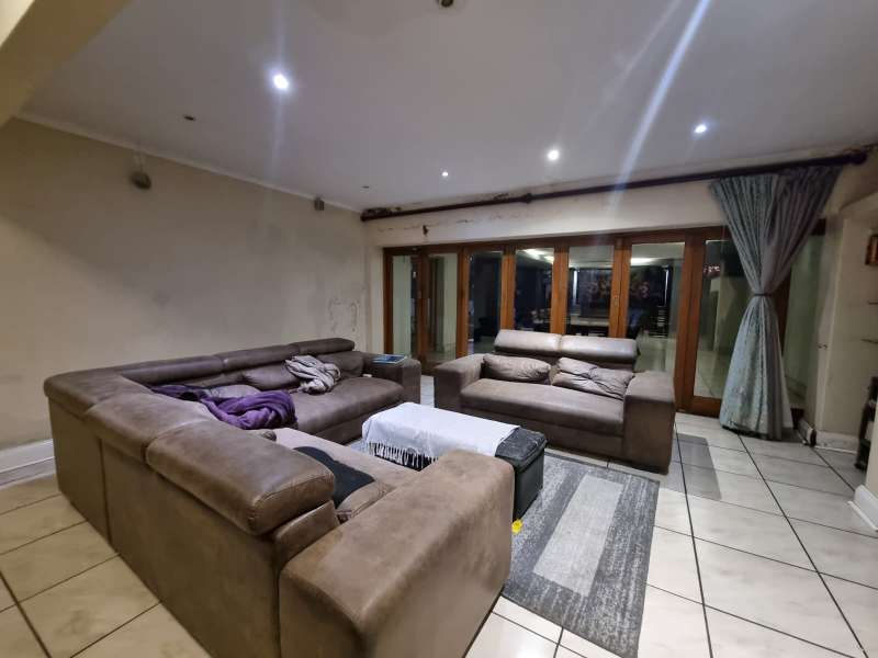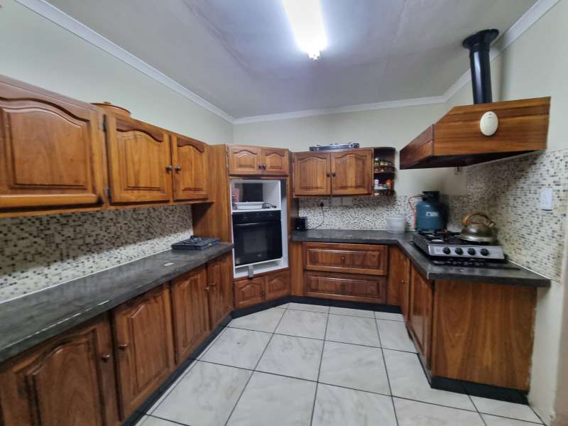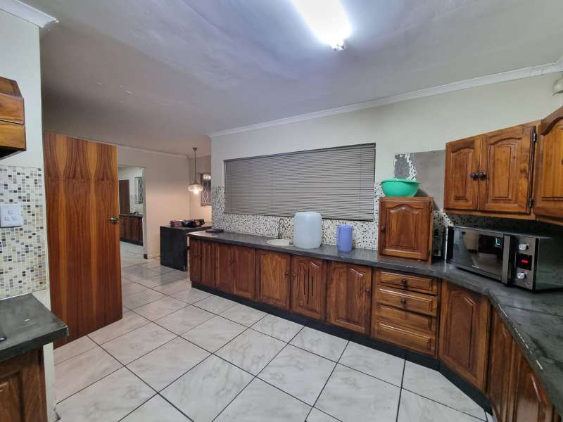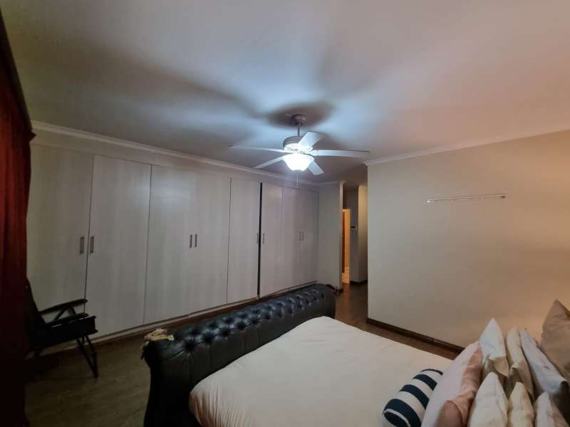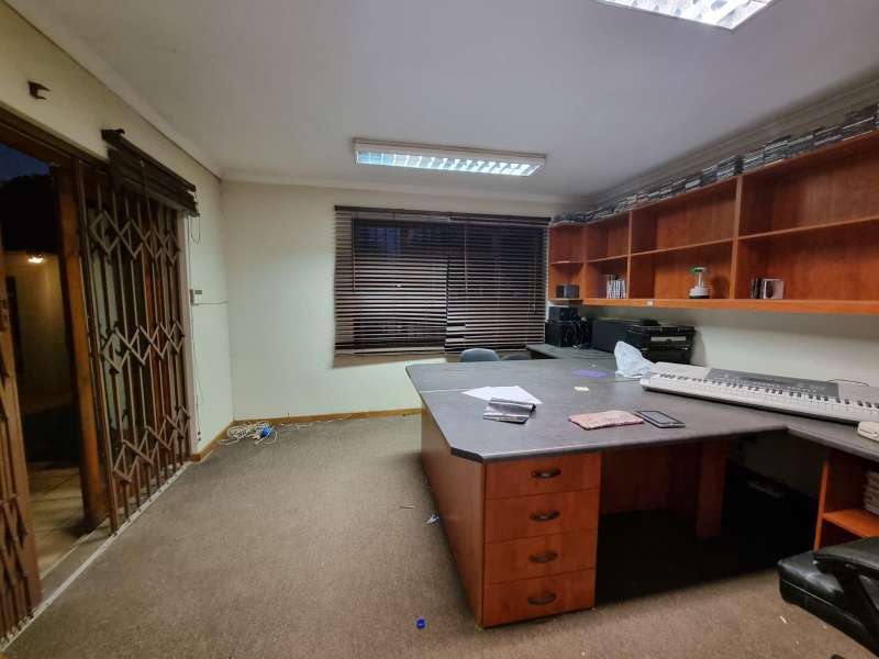 In need of some tender love and care. This spacious property offers 4 bedrooms all fitted with laminated flooring and build in cupboards, 2 full bathrooms with the main on suite, guest toilet, entrance hall, dining room, formal lounge, kitchen with breakfast nook and scullery, tv room that open onto the patio with build in braai overlooking the pool area, sun room / study, office / bedroom outside with bathroom, double garage and spacious garden. Jojo tank Fire place in formal lounge