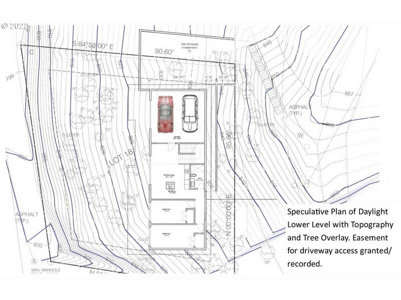 Greenhills lot w/territorial and sunset views poised in the desirable Council Crest neighborhood. Recent site plans from local architectural firm Giulietti Schouten Weber are available. Here's your opportunity to build a custom home, be it a main-level home with sunset views, a modular/container home, or a tiny home amongst the trees! Photos from Portlandmaps.com and from conceptual renderings done in anticipation for potential building. Photos 1-2 are conceptual when engineer's reports were done. Photos 3-4 are conceptual photos for modular/container homes. There is not home on the lot currently. Buyer to do due diligence regarding buildability & permitting. Geo/Soils reports available and surveys completed. Recorded easements for access and utilities also available. Lot in between addresses 4031 and 3921 SW Chesapeak. Lot has a wood fence across it. Okay to walk down the top 4 concrete steps, (please do not walk further) and walk inbetween the left side of fence, and the right side of the telephone pole to access the lot. NOTE: Lot is overgrown and sloped so enter at your own risk and please wear stable shoes.