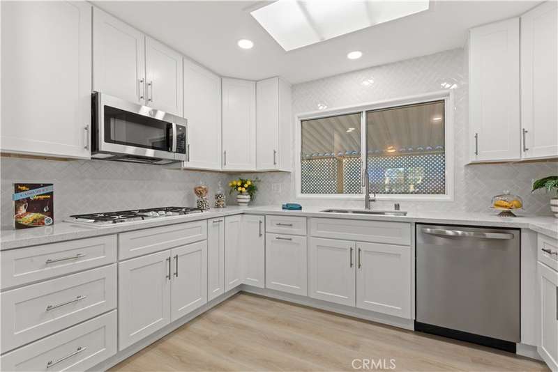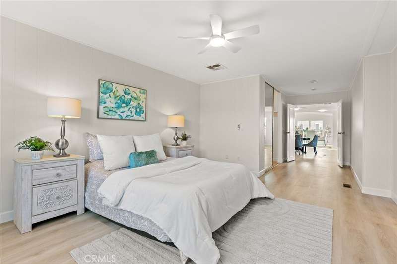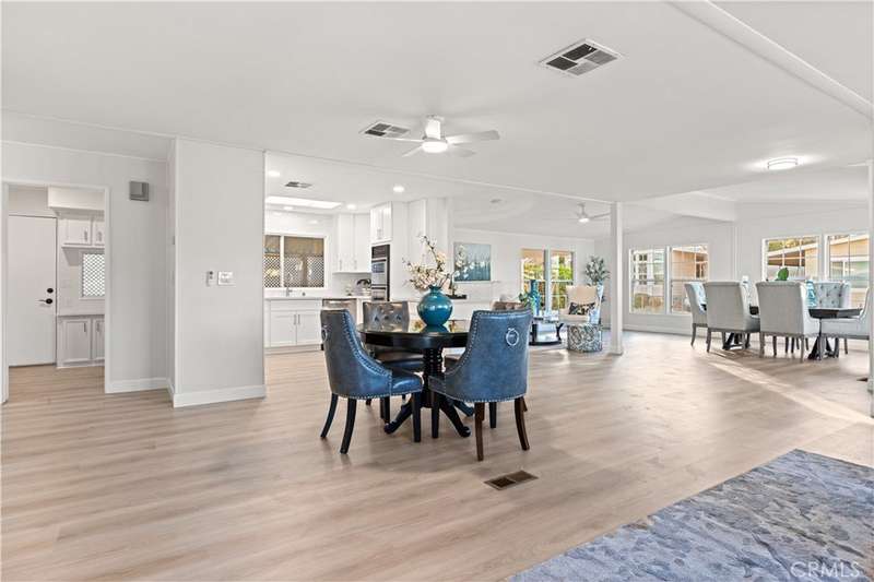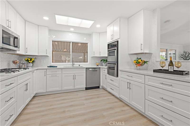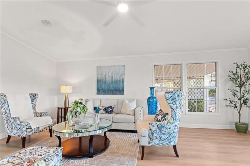 Welcome to The Groves, Irvine’s premier 55+ gated community where lifestyle meets luxury. There is NO space rent, just land ownership. This stunning 2-bedroom, 2-bathroom home with an office has been thoughtfully updated to blend modern finishes with timeless comfort. Step inside and be greeted by a bright, open floor plan with soaring raised ceilings in the living and dining rooms. Sunlight pours through the skylight and expansive windows, filling every corner with natural warmth. The gourmet kitchen is a chef’s dream, featuring crisp white shaker cabinets, double ovens, a gas cooktop, stainless steel microwave and dishwasher, and plenty of prep space for entertaining. Elegant LVP flooring runs throughout, complementing the home’s modern updates including recessed lighting, drywalled ceilings, and ceiling fans for year-round comfort. The bathrooms have been beautifully refreshed, and the additional family room and casual dining area provide plenty of flexible living space. Enjoy your morning coffee or evening glass of wine on the large stone front porch, where you can take in views of the lush lawn bowling greens and the inviting clubhouse just steps away. The Groves Lifestyle... Living here means more than just owning a home, it’s about joining a vibrant community. The Groves offers unbeatable value. Amenities include:Recently renovated year-round heated pool & spa, gym, and sauna, pickleball, tennis, basketball, lawn bowling, and putting green, expansive clubhouse with banquet facilities, lounges, and game rooms, creative spaces including a ceramics studio and woodshop, community garden, BBQ areas, and even an on-site hair salon! Some additional perks: RV parking, car wash area, and 24/7 gate with attendant. A full-time management team and activities coordinator ensure a robust social calendar with clubs, events, and outings that make every day feel special. Don’t miss this rare opportunity to own in the “Bubble within the Bubble”, a warm, welcoming oasis where neighbors become lifelong friends. Schedule your private showing of Space 210 today and experience the lifestyle you’ve been waiting for!