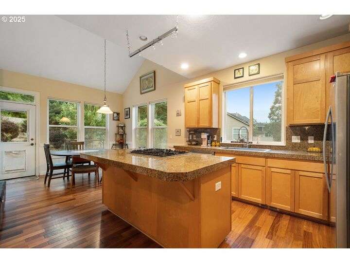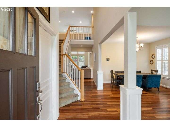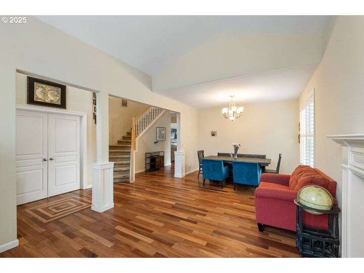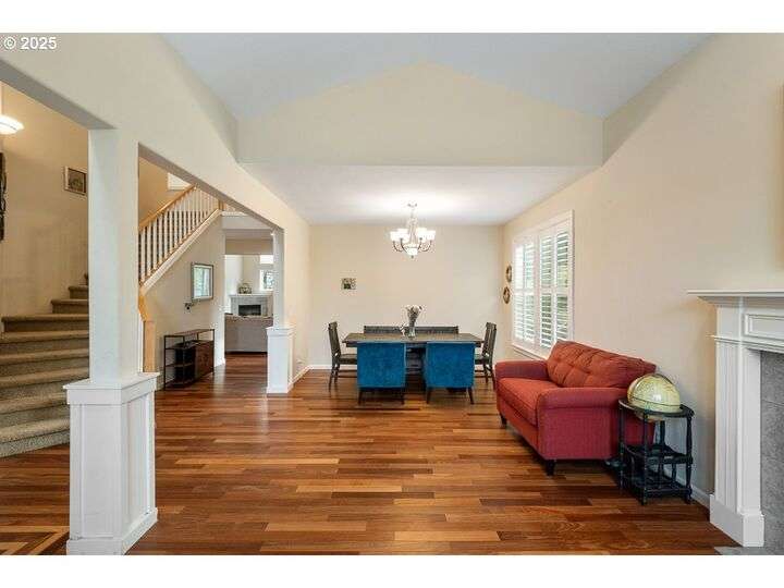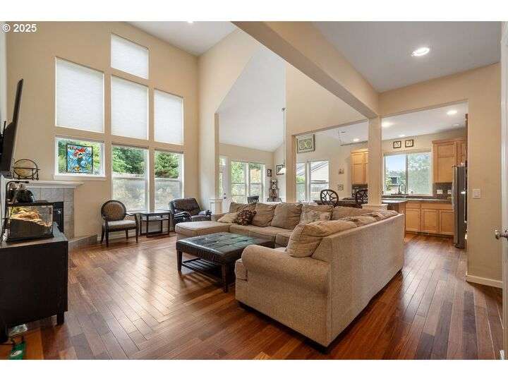 Welcome to this beautifully maintained Craftsman-style home in the highly sought-after Falls at Happy Valley community.With four spacious bedrooms including a primary bedroom and bathroom on the main floor, plus a dedicated office, this home is designed to meet the needs of modern living—whether for remote work, study, or guest space.The vaulted living room is filled with natural light and showcases rich Brazilian teakwood floors that carry through the open-concept main level. Two inviting gas fireplaces create a warm, welcoming ambiance in both the living and family rooms.Step outside to your own private backyard retreat—perfect for outdoor dining, entertaining, or simply relaxing in the peaceful setting. A generous 3-car garage provides abundant room for vehicles, storage, or hobbies.Located just minutes from Happy Valley Park, you’ll enjoy easy access to summer concerts, community events, schools, shopping, and dining. This home offers the perfect balance of style, comfort, and convenience in one of Happy Valley’s most desirable neighborhoods.