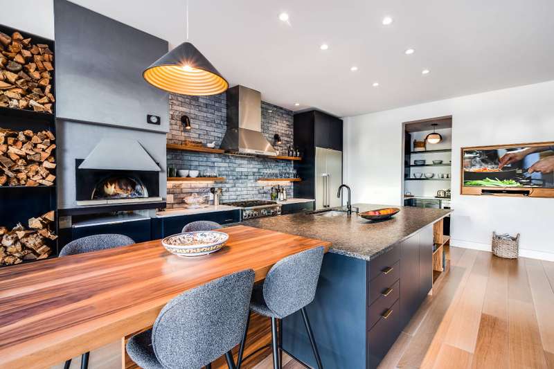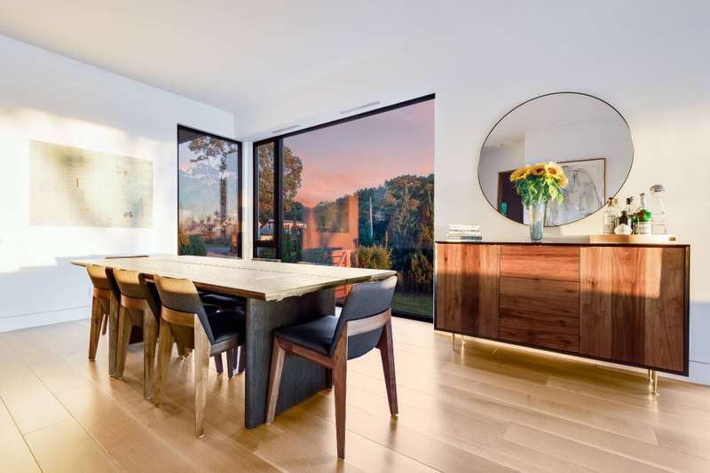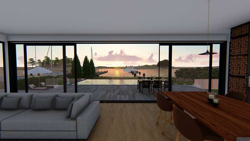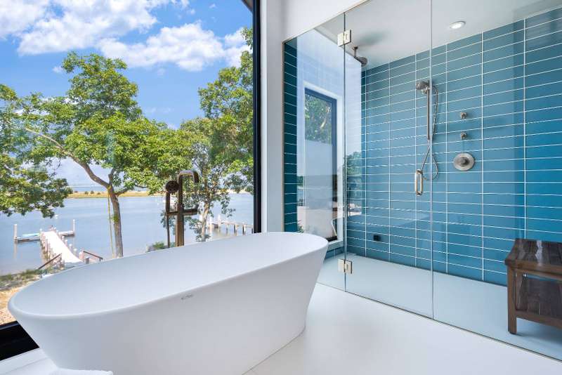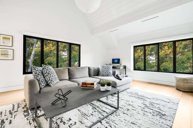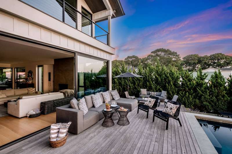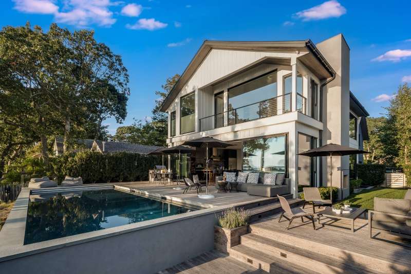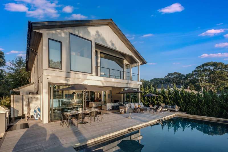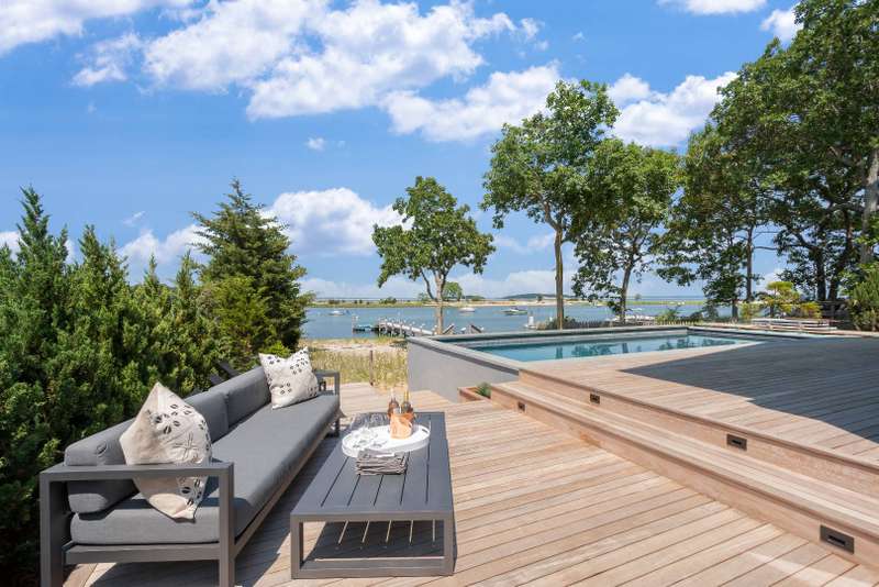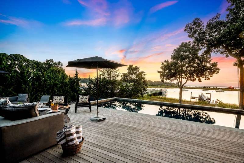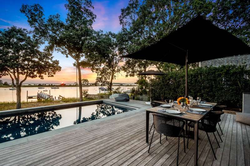 Beautiful Bucolic Waterfront -- Best Sunsets in the Hamptons. Overlooking Noyack Bay, this newly constructed, triple-mint, modern manor boasts breathtaking water views and stunning sunsets. The soaring floor to ceiling windows, expansive decking, heated gunite waterside pool, plush outdoor furniture, cozy fire pit, outdoor shower and Lynx professional grill, adorn the waterside veranda, creating a grand and sumptuous Hamptons experience. So, too, this property has a rare and coveted private deep water dock for backyard paddle boarding, kayaking or...bring your own boat. Ideal for entertaining, this home is appointed with an Il Forno pizza oven, sous vide technology, an outdoor herb garden and an enviable array of Japanese chef's knives, surely to fascinate the boldest of home chef's. With rich oak, warm walnut and modern steel finishes this property exudes serenity and grace and is sure to impress. Impeccably decorated and beautifully appointed, this modern retreat is mired among majestic marine sea grasses which, like a metronome, sway in time to the warm coastal breezes. Conveniently located in the up-and -coming beach community of Pine Neck. Minutes from ocean beaches, a stone's throw from historic downtown Sag Harbor and a short drive from Bridgehampton, this 5200 square foot, 5 bedroom, 6 bath jewel is not to be missed. List of Amenities · Private Deep Water Dock - 3.5 foot draft at low tide · Waterside Swimming pool with Automated Cover 15x31 · Professional Lynx Outdoor BBQ · Membership to Yacht Hampton Included for Reduced Rate Yacht Rental · Sun loungers & Outdoor Seating · Balcony on Primary bedroom · Alfresco dining area with seating for 8 · Seasonal Fresh herb garden · Driveway parking - 4 spaces · Two Stand Up Paddle Boards · Outdoor Fireplace · Outdoor Shower · Two Minute Stroll to Circle Beach · Il Forno Wood-burning pizza oven · Lawn Games including Bocce Ball and Bean Bag Toss · Beach Chairs Umbrellas and Cooler · Fully equipped professional kitchen with breakfast bar · Formal dining area with seating for 8-10 · Drip coffee machine + Nespresso Pod espresso machine · Geo Mesh Wi Fi · Wood-burning fireplace · Ping Pong and Pool Table · Smart TV's (6) with Streaming services · Media room · Office Area · Air conditioning · Security System · Radiant floors bathroom entry & lower level · Washer/Dryer (two each) · Home Gym including Peloton Bike · Wine Cellar + 50 Bottle Wine Cooler · Smart Home Technology including Somfy Auto Blinds Sonos + Lutron · Custom Closets · Linens & Towels · Pre-Stocked with basics coffee sodas mixers · Beach Access · New Construction · Oversized Windows · EV Car Charger + Tesla Charging Station · Bathrobes Provided