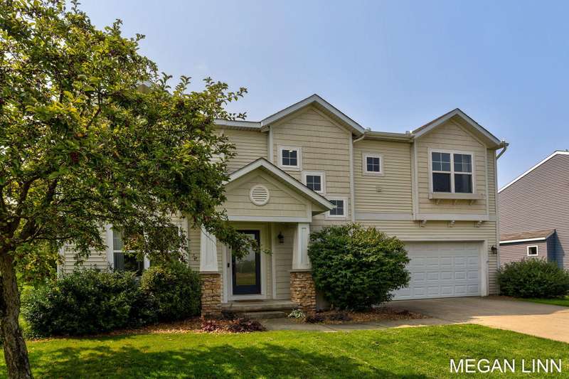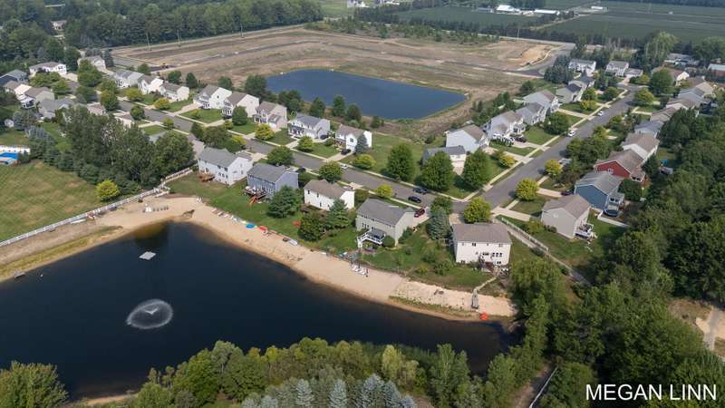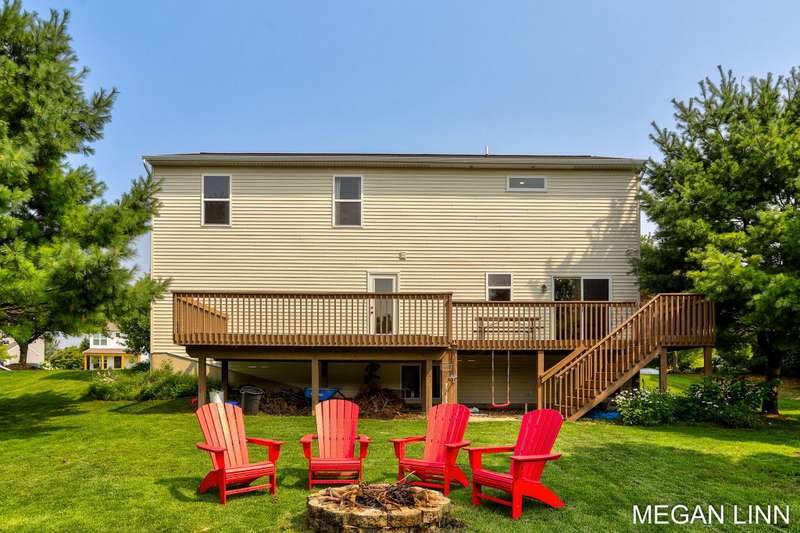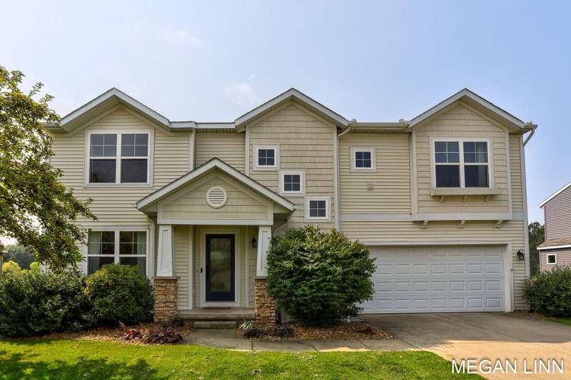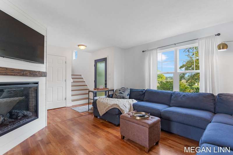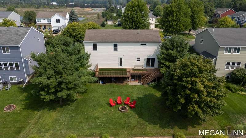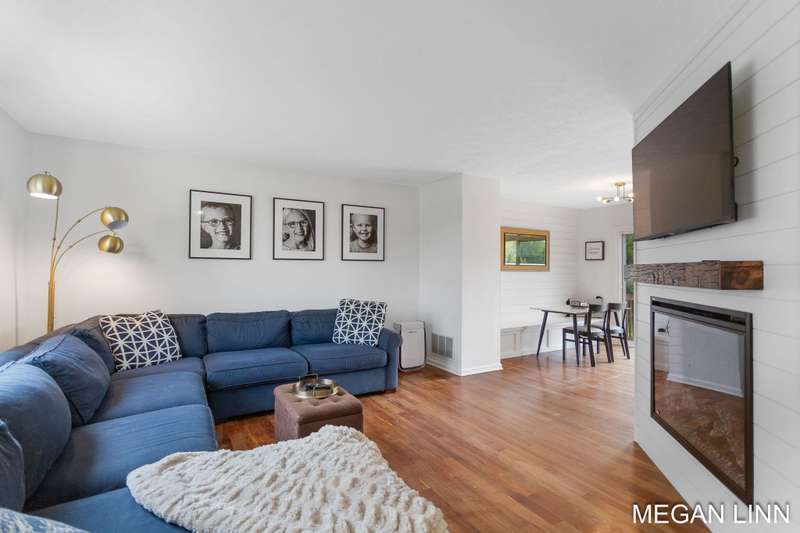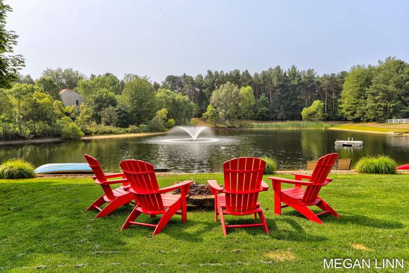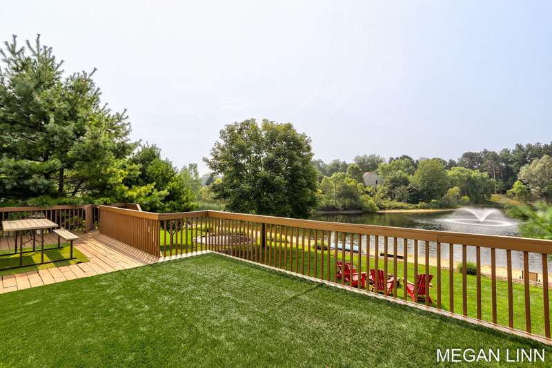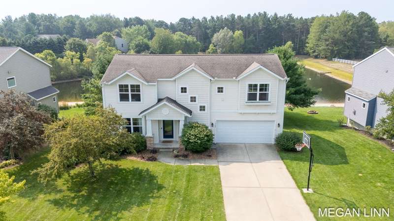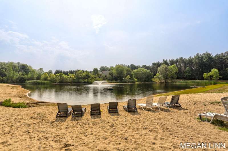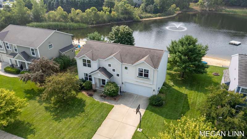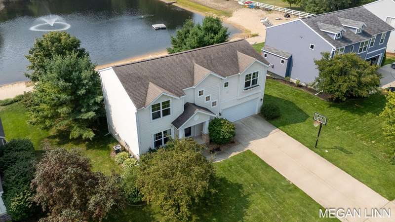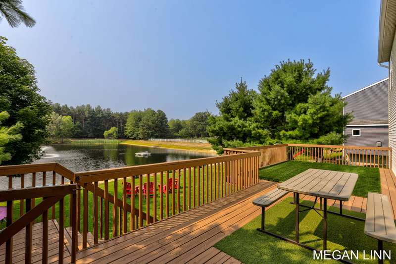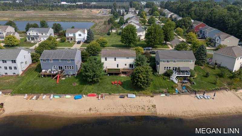 Enjoy modern comfort and natural beauty in this beautiful 4-bedroom, 2.5-bath home located in the Wildflower neighborhood near scenic trails, parks, beaches, and marinas. The spacious primary suite features a large walk-in closet and fully renovated bathroom. The open-concept main floor offers a warm and inviting living room with a gas fireplace and a dining area with a built-in bench, perfect for gathering. A slider leads to a large deck overlooking a serene pond and 80 ft of sandy beach frontage --ideal for relaxing or entertaining around the built in fireplace. Upstairs laundry room near bedrooms, a mudroom off the garage and an outdoor shower adds everyday convenience to this thoughtfully designed home. Schedule your showing today!