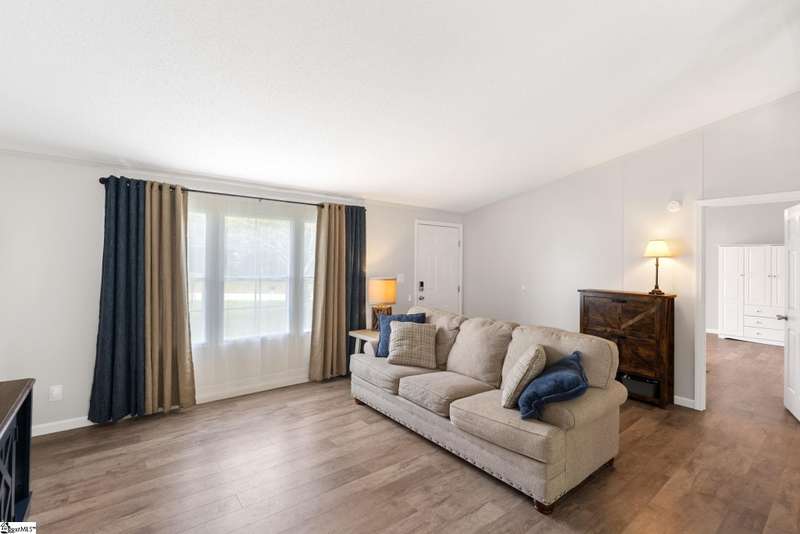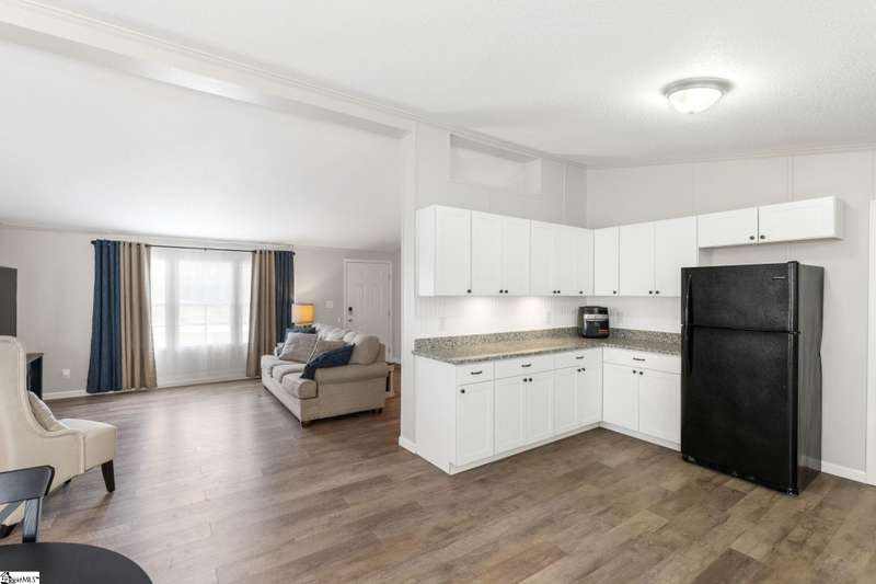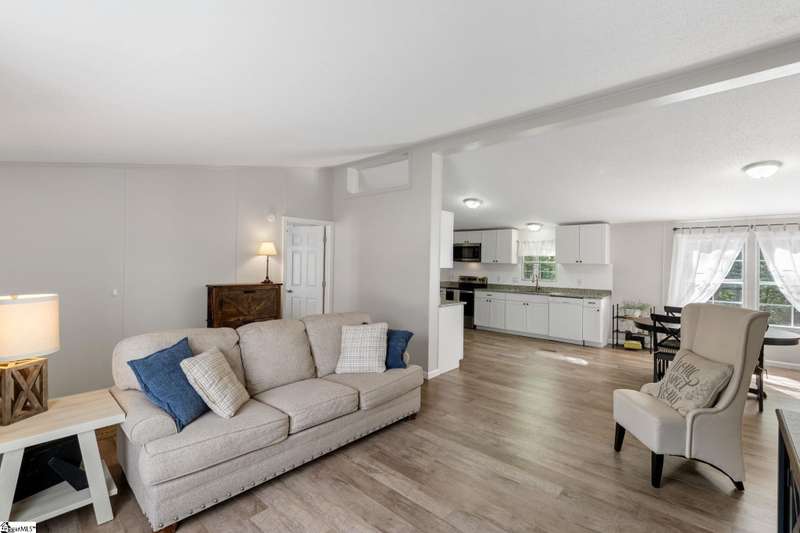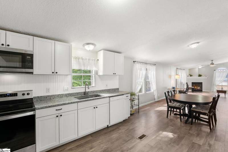 Fully remodeled, brand new metal roof, no HOA, plus 1.57 wooded acres with a creek located in Five Forks – you cannot miss the opportunity to make 130 Kentmont Lane your new home! Arrive via the circular driveway with extra gravel parking and step onto the inviting front porch of this 3-bedroom, 2-bathroom home. Inside, the great room features soaring cathedral ceilings, fresh neutral paint, and new LVP flooring that flows seamlessly throughout the home. The open floor plan connects the spacious living room, oversized dining area, and beautifully updated kitchen - perfect for gatherings. The kitchen features abundant cabinetry, granite countertops, a large single-basin stainless sink, plus all kitchen appliances are included. The dining area is generous in size and ideal for entertaining, while the adjacent den offers a cozy space with a wood-burning fireplace. The primary suite is a true retreat with two walk-in closets and a spa-like en suite bath complete with a dual-sink vanity and walk-in shower. Two additional bedrooms feature large closets and share a full bath with a double-sink vanity and tub/shower combo. Outside, you’ll find thoughtful extras including a 30-amp RV hookup, a detached shed for storage or lawn equipment, recently serviced septic, and ample gravel parking that can accommodate multiple vehicles. Best of all, the 1.57-acre wooded lot backs to a peaceful creek - ready for you to explore and enjoy, plus the home is detitled and ready for new owners. Zoned for award-winning Bell’s Crossing Elementary, Riverside Middle, and Mauldin High, this home truly has it all. Don’t miss your chance - schedule your private showing today! Contact Ashley Steigerwald with Wilson Associates at 864-907-0601 or ashley@wilsonassociates.net.