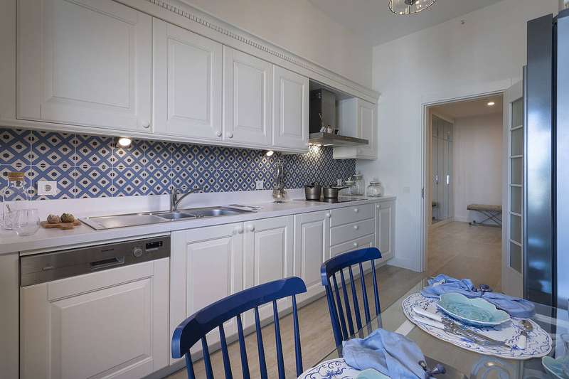 The mega project offers 1, 2, 3, and 4 bedroom type options. The apartments are distributed into open or closed-plan kitchens, en suite bathrooms, and balconies. The luxe apartments are equipped with built-in kitchens, a floor heating system with a heat meter, satellite TV, and private storage areas.