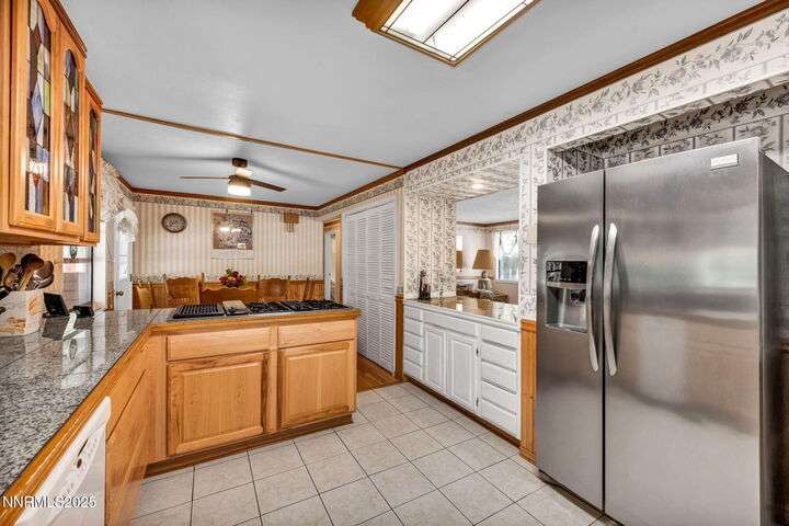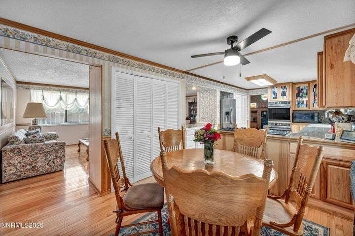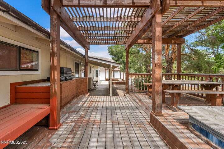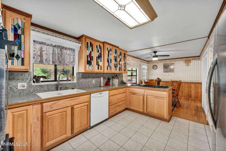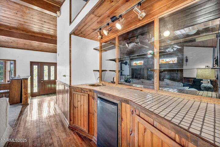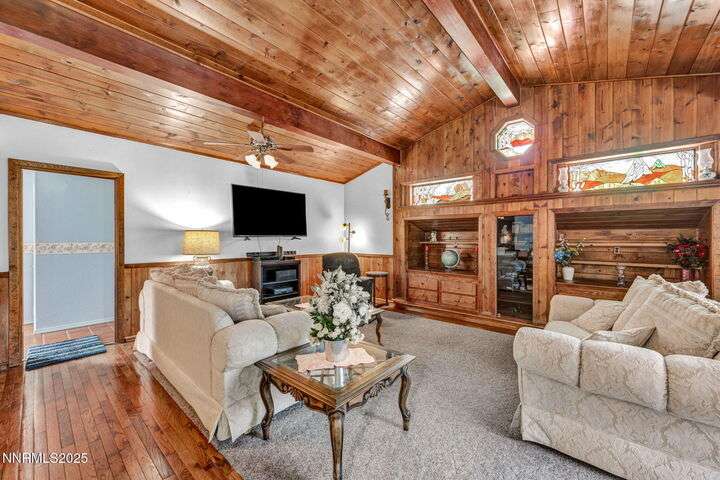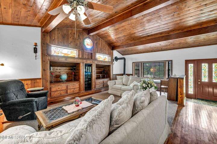 Welcome to this beautifully maintained 3-bedroom, 2.5-bath home nestled on a spacious 0.91-acre lot, offering the perfect blend of quiet country-style living within the city limits of Carson City. This property boasts both privacy and convenience, just minutes from schools, shopping, and dining. Step inside and feel instantly at home in the spacious great room, where rich natural woodwork creates a warm, welcoming atmosphere. Enjoy evenings by the cozy wood-burning stove or gather with friends around the built-in wet bar, perfect for entertaining in style. The kitchen opens to a comfortable dining area, and the spacious living room invites you to relax with family and friends. A separate laundry room with plenty of cabinets and shelving for added storage and detached garage add convenience and even more storage. Pole barn on property as well. Roof replaced in 2012 Exterior repainted in 2015 40-gallon water heater replaced in 12/2020 Dual furnaces: one replaced in 2014, the second in 2019 Community well with water test available Refrigerators, washer/ dryer and TV's with mount convey with the home
