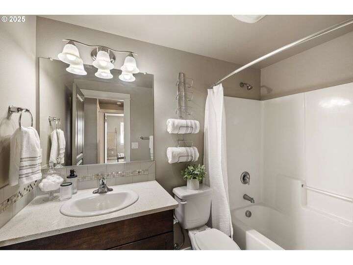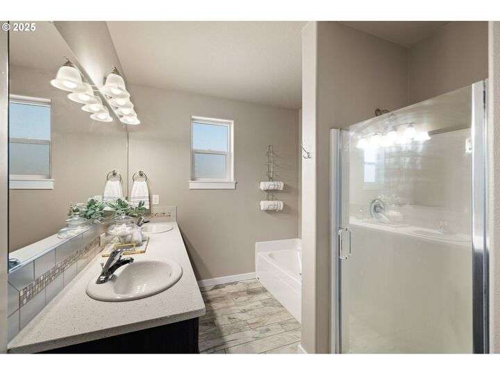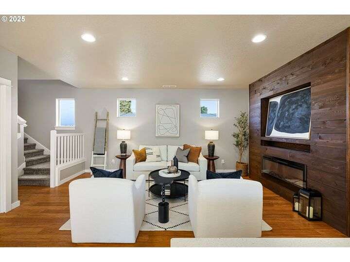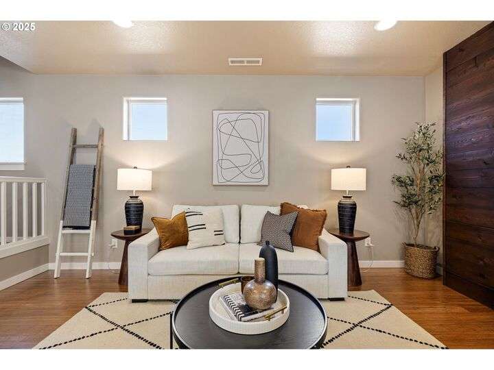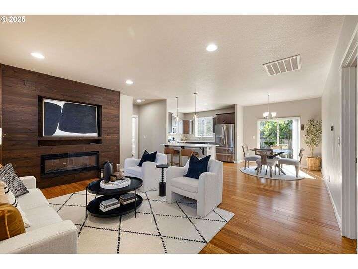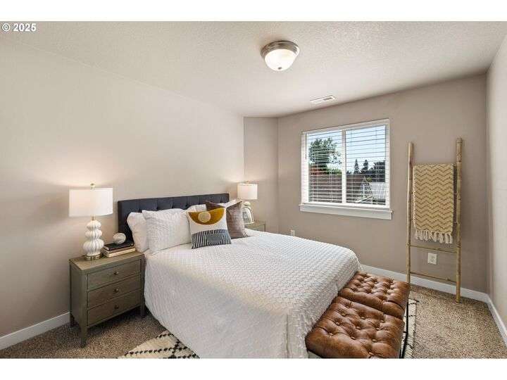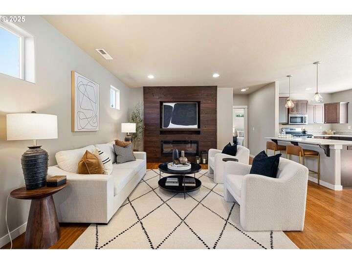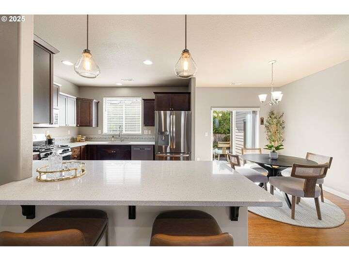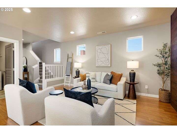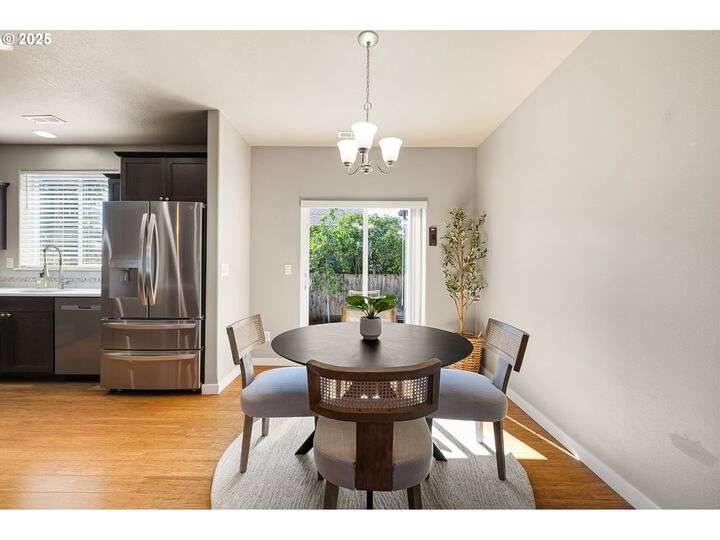 Welcome to 375 Honeysuckle Lane. This well-maintained contemporary home blends comfort and style with on-trend finishes in the desirable Ferry Street Bridge area. Inside, you’ll find bamboo floors, quartz countertops, dark hickory cabinetry, and Italian tile, all thoughtfully chosen to elevate the home’s design. The kitchen is equipped with stainless steel appliances, a gas range, and generous counter space—truly a chef’s dream. A large main-level primary suite offers a private retreat with a slider to the backyard patio, new carpet, a spacious ensuite bathroom featuring both tub and shower, and an oversized walk-in closet. Along with 3 bedrooms, the home also provides a spacious main level office/den as well as an upstairs landing with a built-in desk, creating flexible options for work or study. Outside you'll find a fully fenced backyard, perfect for relaxing or entertaining, complete with a serene water feature. An extra-large garage provides ample parking and storage. Ideally located, this home offers easy access to Autzen Stadium, top-rated schools, and nearby shopping—placing everything Eugene has to offer within reach. Honeysuckle Lane is your opportunity to enjoy comfort, convenience, and thoughtful design all in one home. Don’t miss your chance to make it yours!