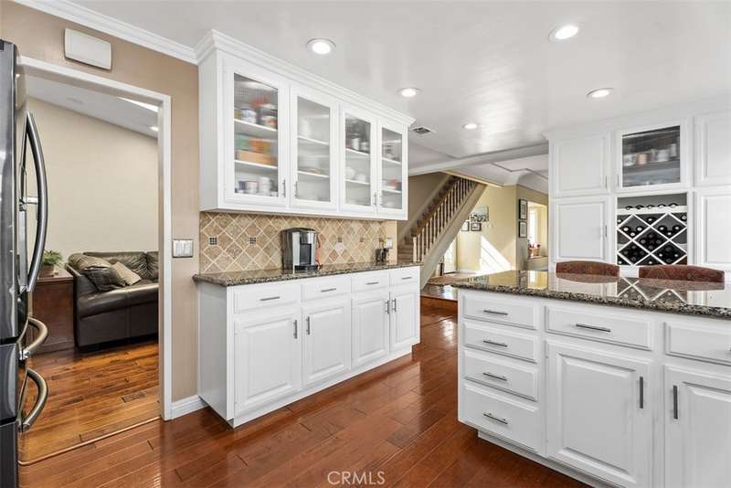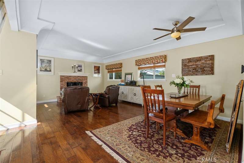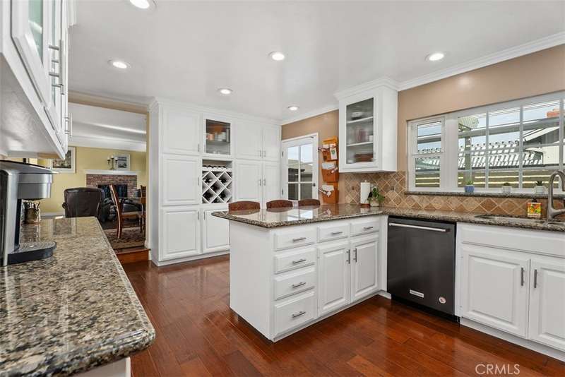 Welcome to Marilyn Drive, a home in the "Cal Classics" Community, offering the perfect blend of Coastal Charm and Multi-Gen function. Double-door entry onto the foyer opens up to Living area with soaring ceiling with skylight, gorgeous hardwood flooring and fireplace. Dining area off of kitchen flows onto Family Room, with another fireplace and door to the backyard. Large kitchen with granite countertops, white cabinetry complete with built-in wine storage, Five-Burner Range and so much space to cook, allowing for your inner culinary genius to shine. Kitchen Door to side yard allows for convenient al-fresco dining and year-round BBQ's.