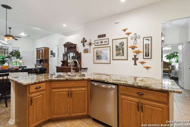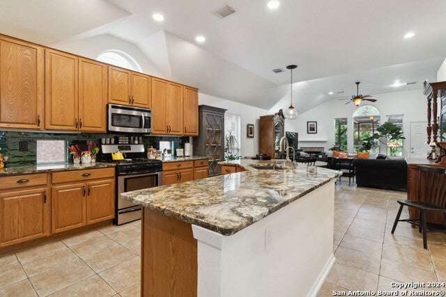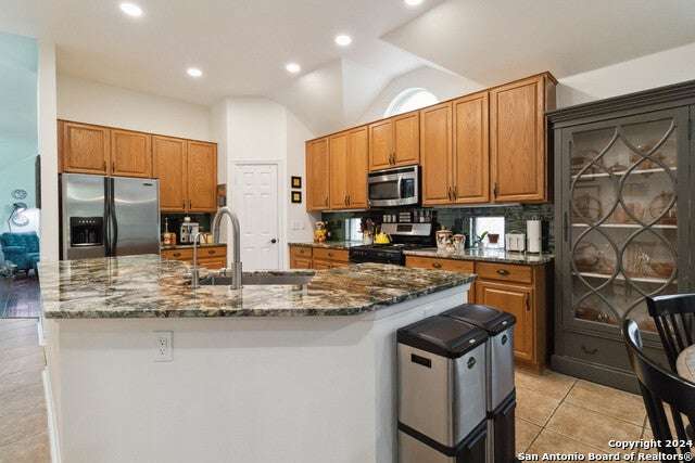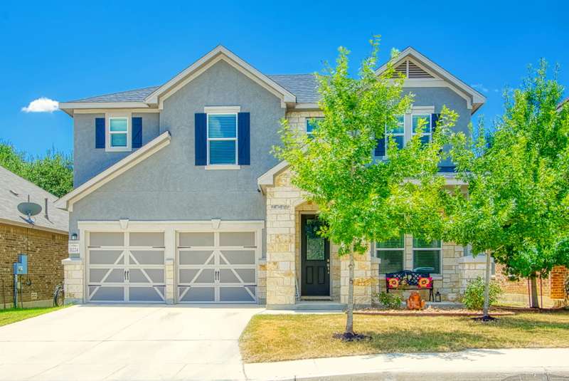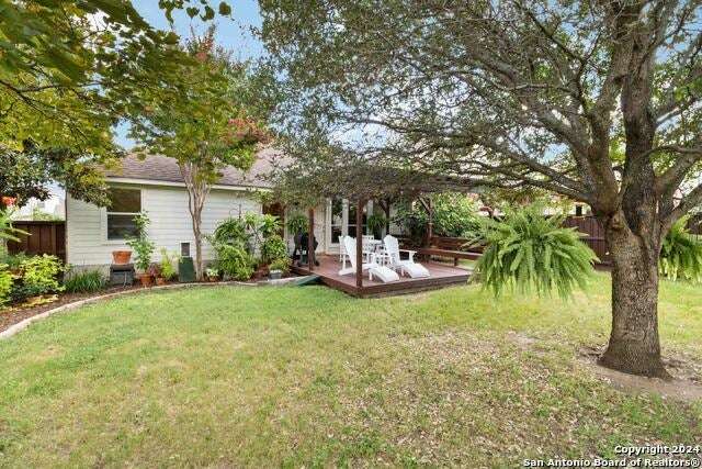 Welcome to this beautiful home nestled in the highly desirable community of Iron Horse Canyons at Stablewood. Included with this property are energy efficient solar panels and newly installed A/C and water heater. This home features an open concept design that seamlessly connects the kitchen to one of two living areas in the home that includes a fireplace. You will enjoy a beautifully updated kitchen with granite countertops and tiled backsplash. The kitchen island makes it easy for meal prep and entertaining. This home also features high ceilings and plenty of windows which offer plenty of natural light. Both the primary and guest baths have been exquisitely updated with modern finishes. The backyard is also beautifully done with a fresh stained fence and trellis-covered deck where you can sit and enjoy the lush garden and mature trees. The neighborhood amenity center offers a large pool, basketball court and playscape. Conveniently located near Helotes Fitness Park and Golf Disc Course, grocery stores, shops, restaurants and top-notch schools. Don't miss your opportunity to own this meticulously maintained home! Schedule your showing today!