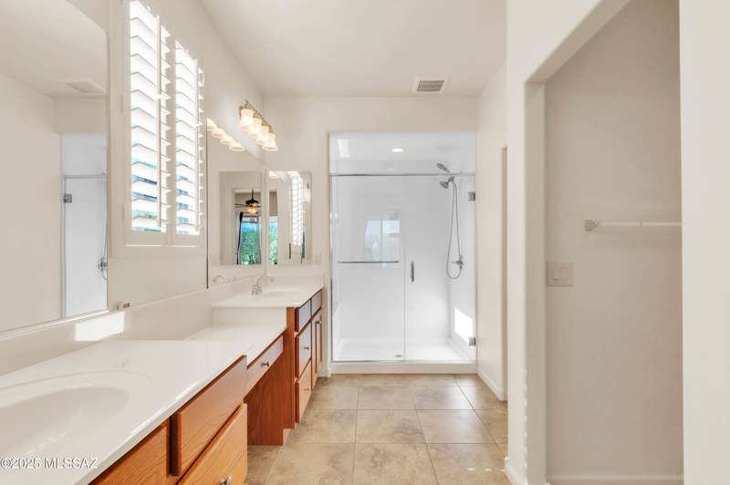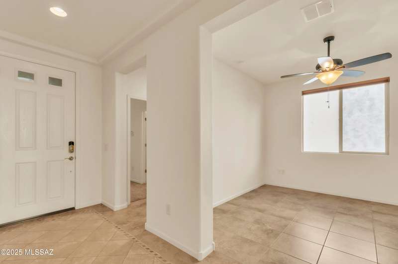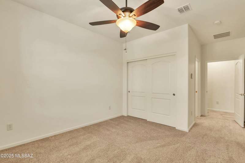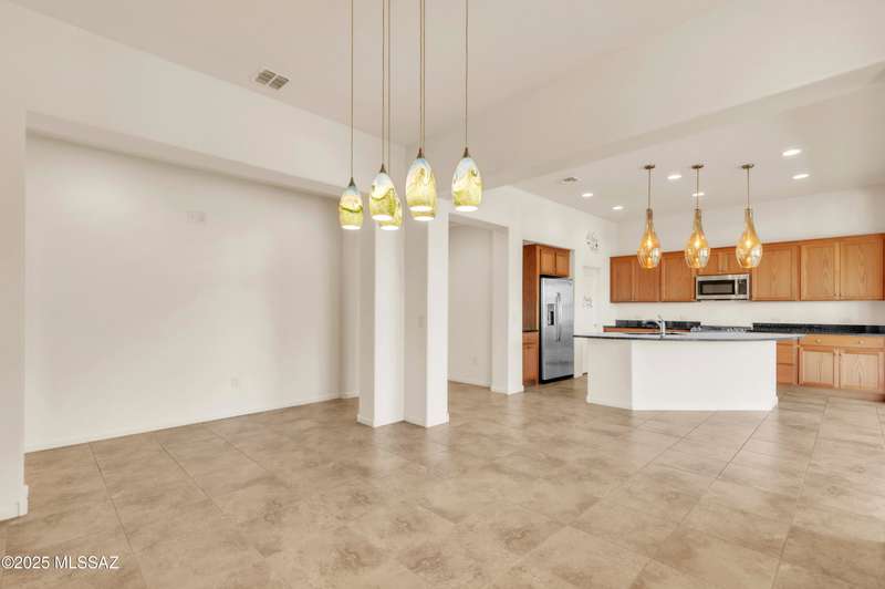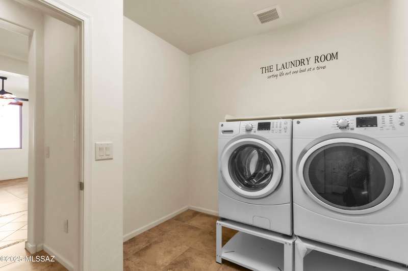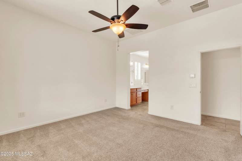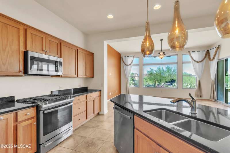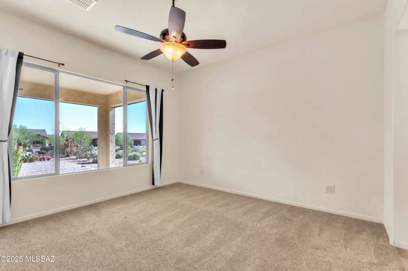Beautiful Fresco floor plan in SaddleBrooke Ranch, an active adult community with resort-style amenities! This 2 bed, 2 bath + den home offers 2019 SF of comfortable living with neutral tile throughout main areas and carpet in the bedrooms. Enjoy a highly desirable south-facing backyard with eastern mountain views and open space backing a wash. The great room features a retractable exterior solar screen and views of the Catalinas. Kitchen includes a walk-in pantry, granite counters, gas range, stainless appliances, and island with breakfast bar. The primary suite offers a spacious shower, double vanity, and walk-in closet. Split floorplan. Extended 2.5-car garage fits two cars + golf cart, storage space, includes utility sink and water treatment system. Native landscaping. Move-in Ready!
