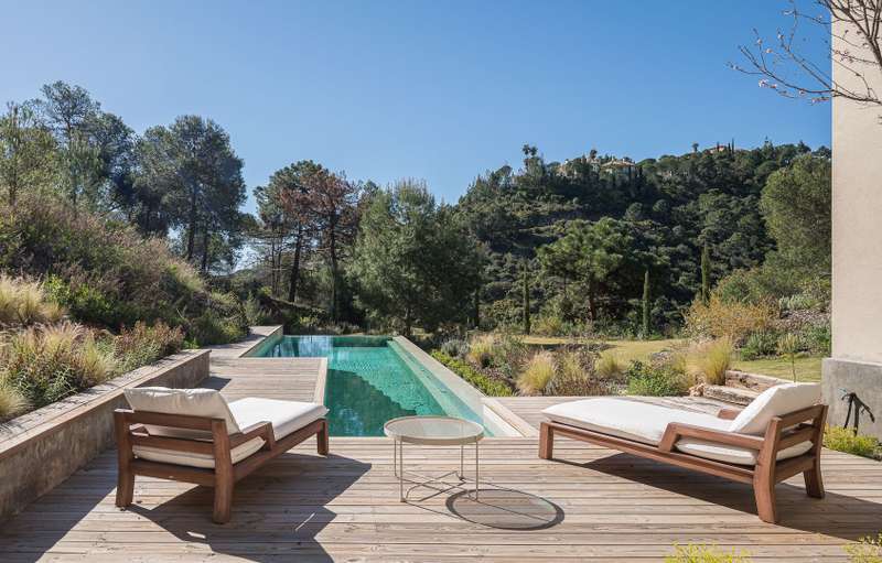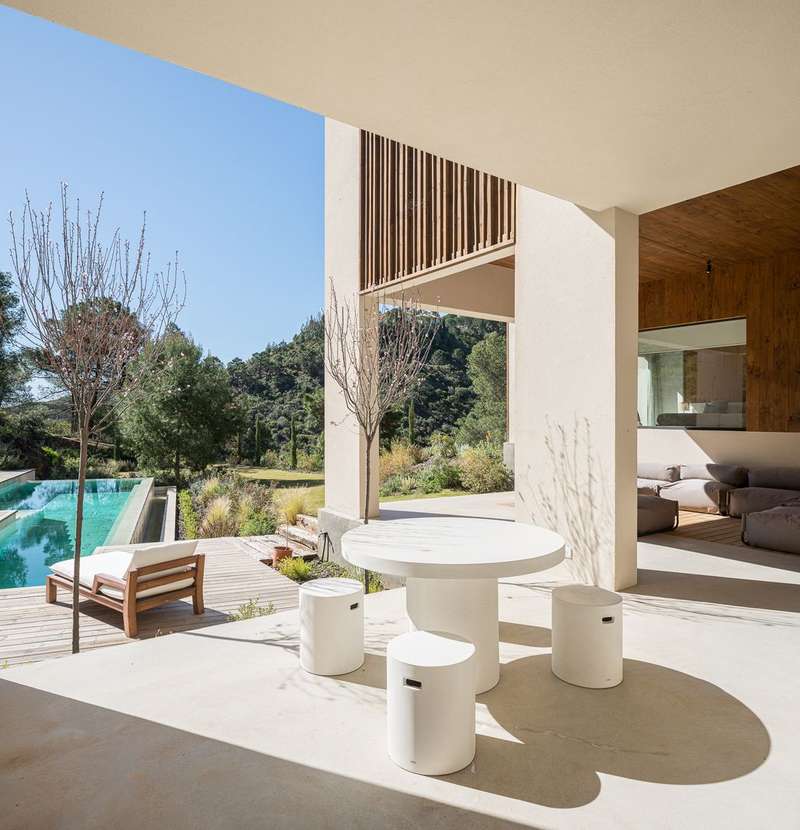Perched in the serene hills of Benahavís, within the exclusive gated community of El Madroñal, this elegant villa redefines modern living through sustainability and refined design. Built with natural materials and passive house principles, it offers exceptional energy efficiency and year-round comfort with minimal environmental impact. Clean lines, warm wood, and locally sourced stone blend seamlessly with the lush surroundings. Large windows flood the interiors with natural light and frame stunning views, while the open-plan layout creates a harmonious flow between living, dining, and kitchen areas. Soft neutral tones and organic textures create a soothing, sophisticated ambiance throughout the home. Each bedroom is a peaceful retreat, and the bathrooms exude quiet luxury with sleek, contemporary finishes. Outdoors, beautifully landscaped gardens, a sun-drenched terrace, and a private pool offer the perfect setting to enjoy the Costa del Sol lifestyle in complete privacy. Located j